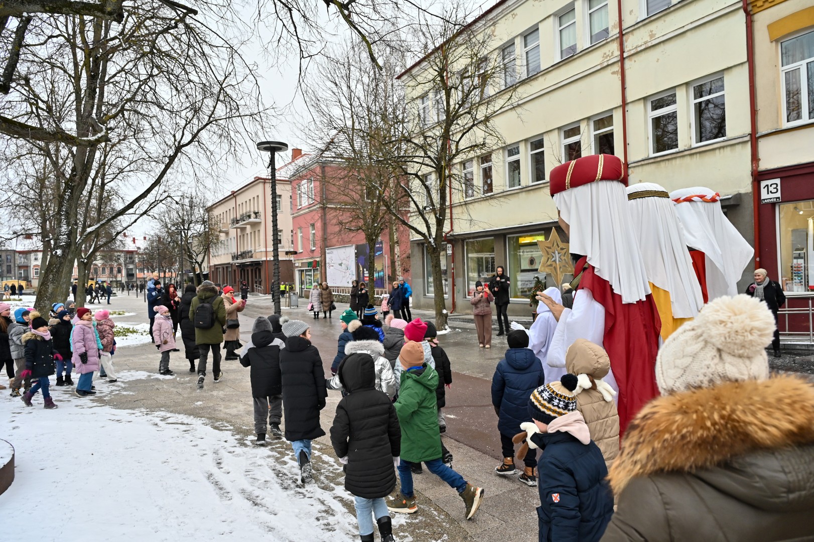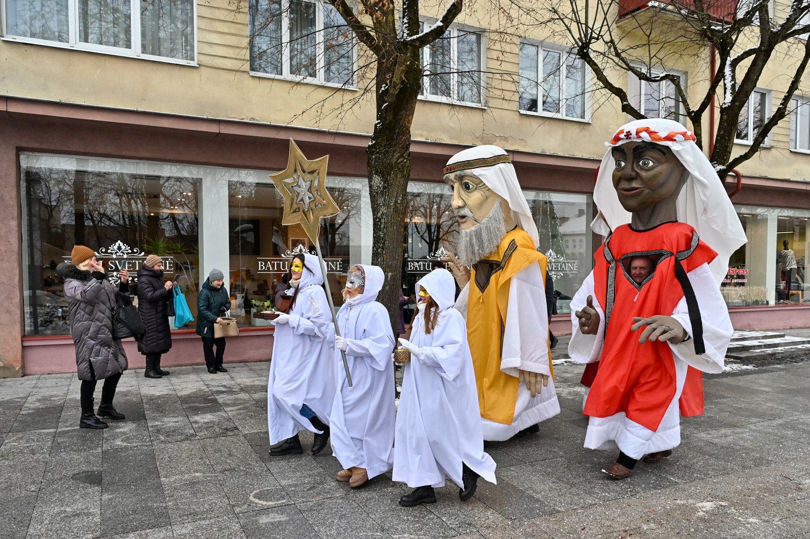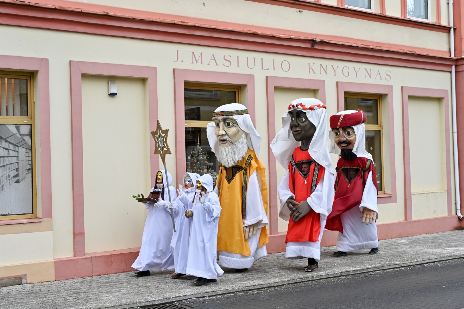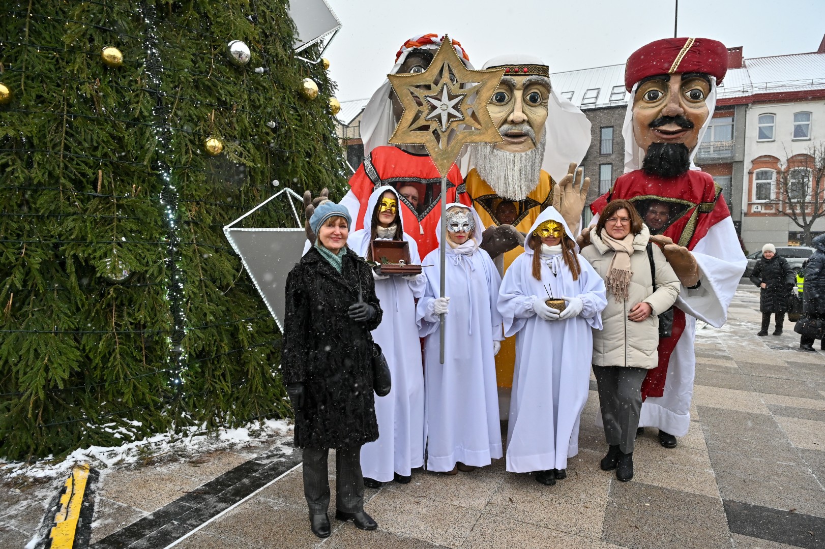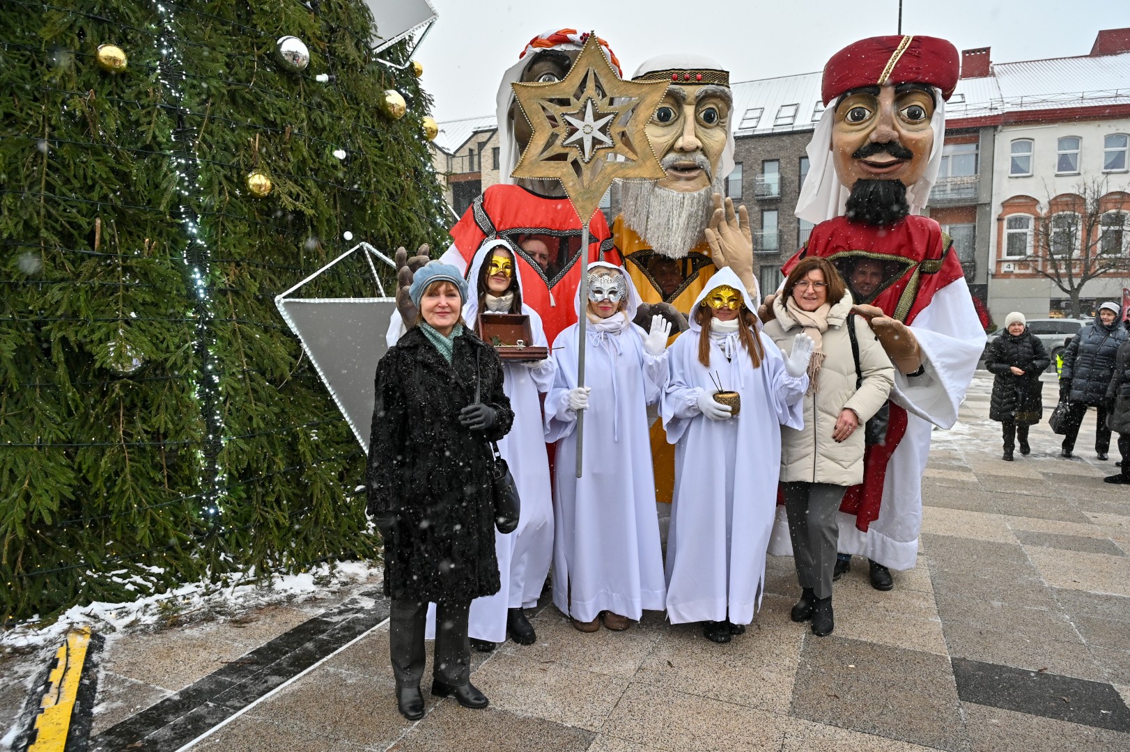 Puspenkto metro ūgio Trys Karaliai – Kasparas, Merkelis (Melchioras) ir Baltazaras – žingsniavo P. Puzino, Respublikos, Vasario 16-osios, Elektros gatvėmis sveikindami praeivius.