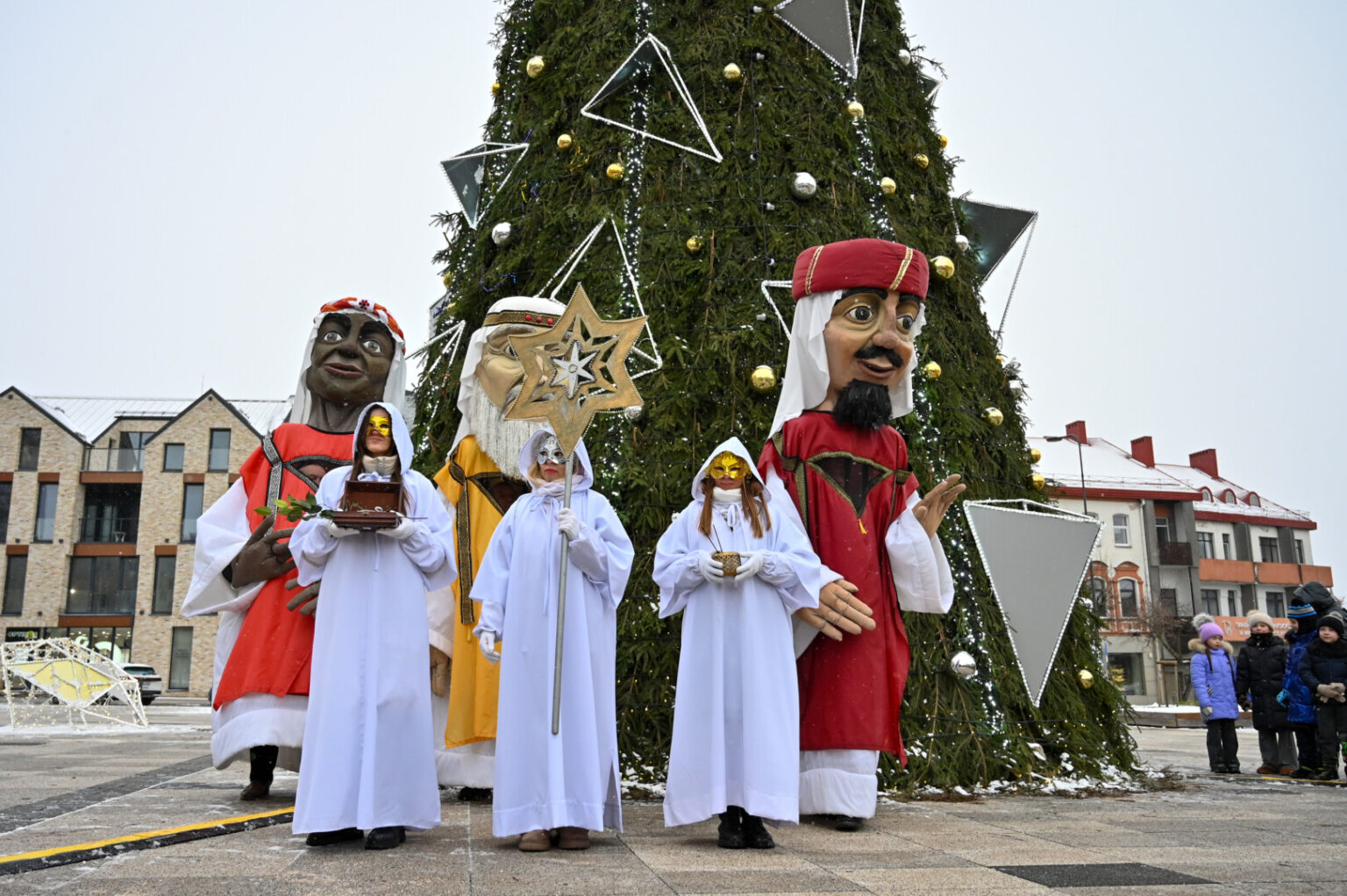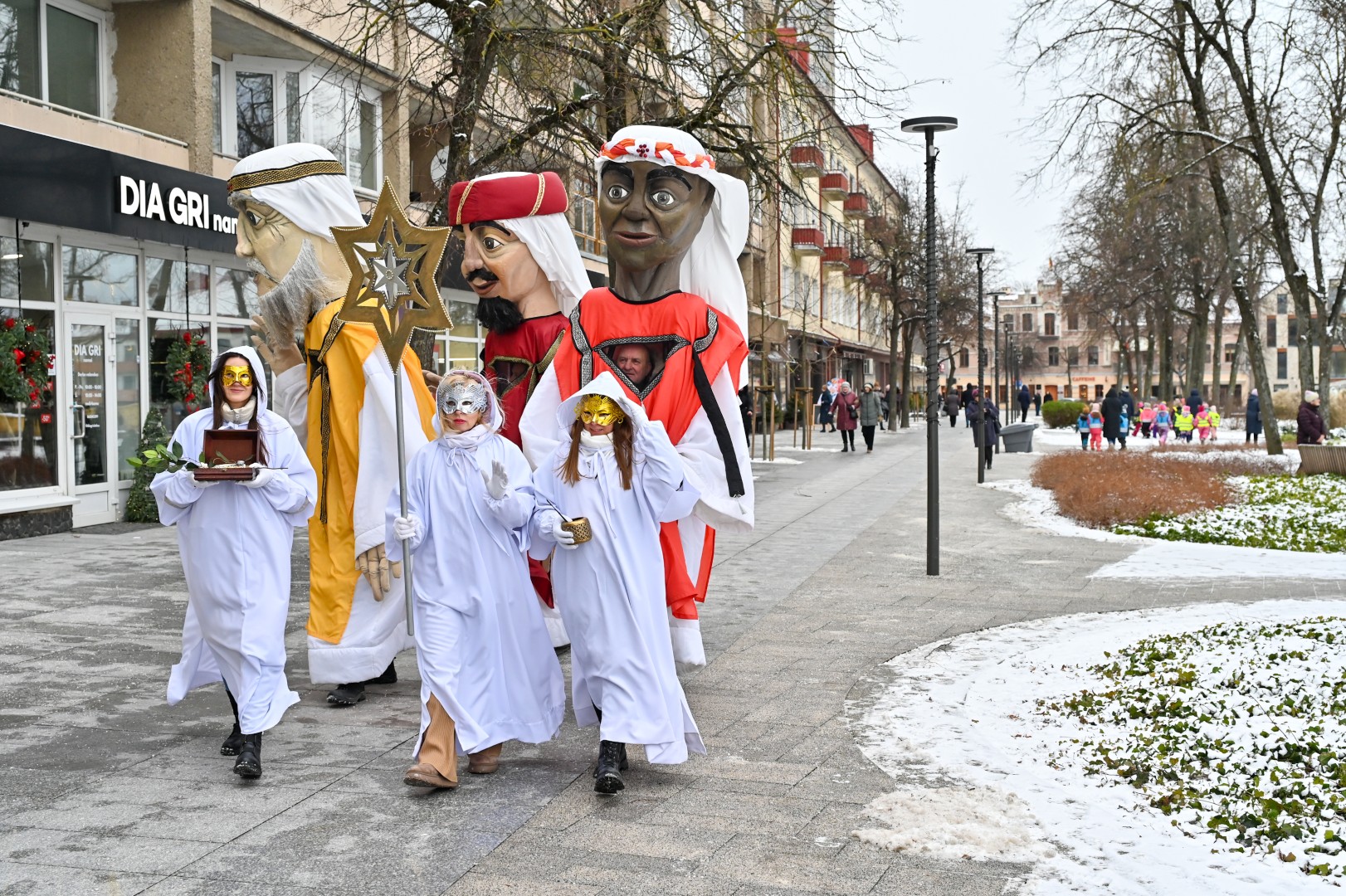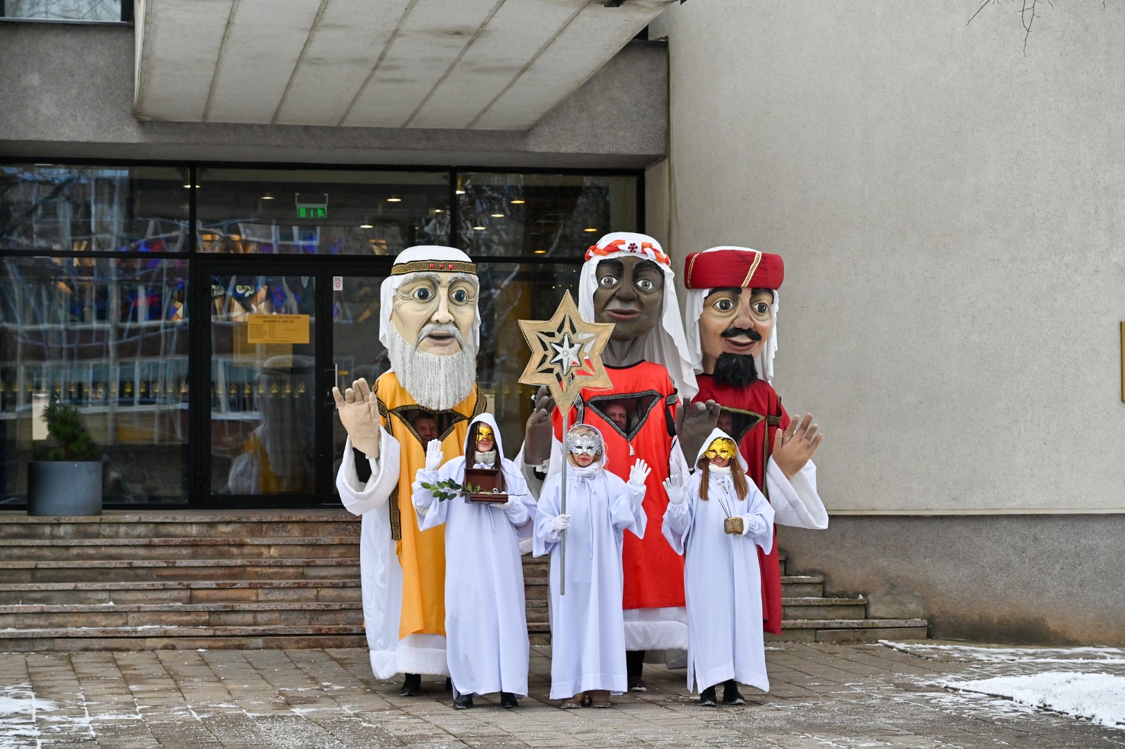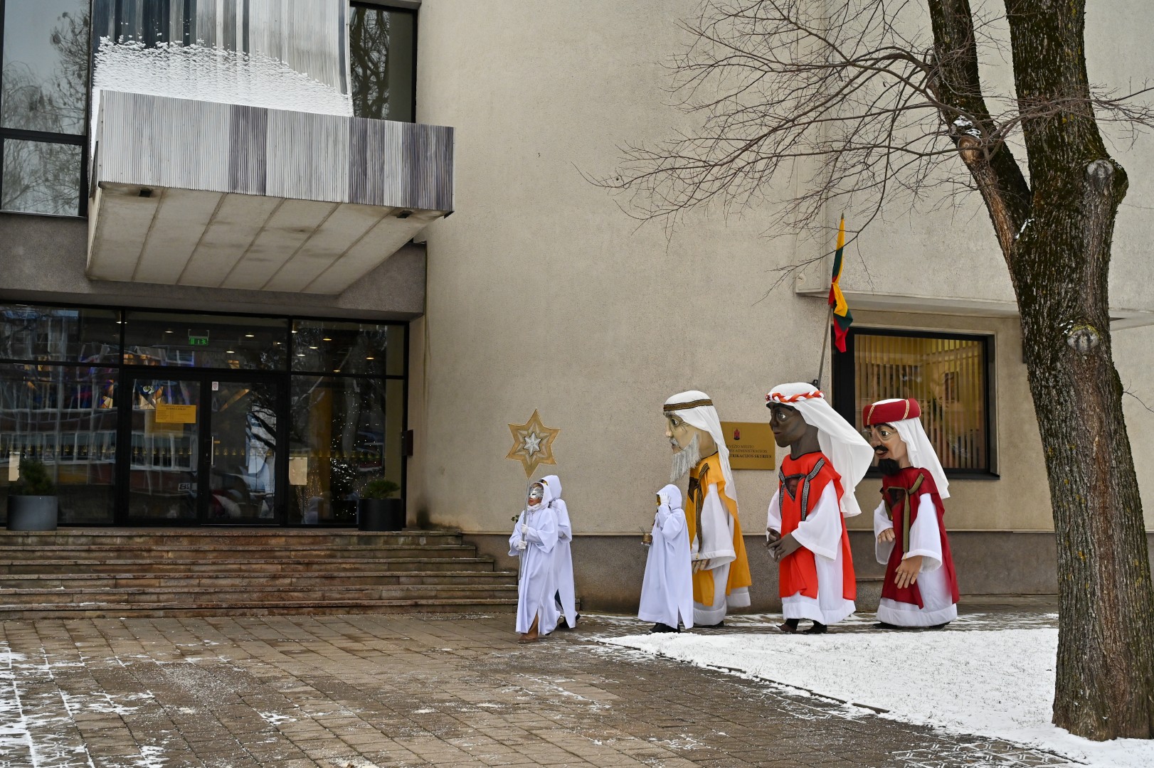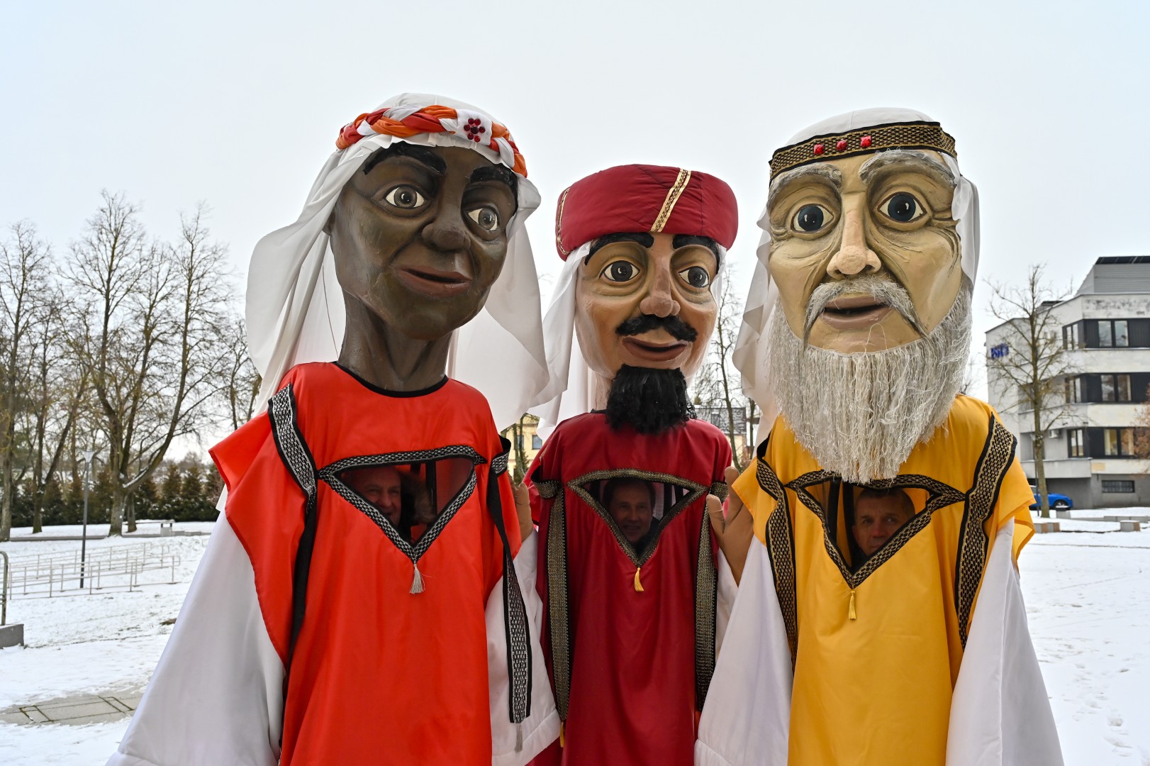 Puspenkto metro ūgio Trys Karaliai – Kasparas, Merkelis (Melchioras) ir Baltazaras – žingsniavo P. Puzino, Respublikos, Vasario 16-osios, Elektros gatvėmis sveikindami praeivius.