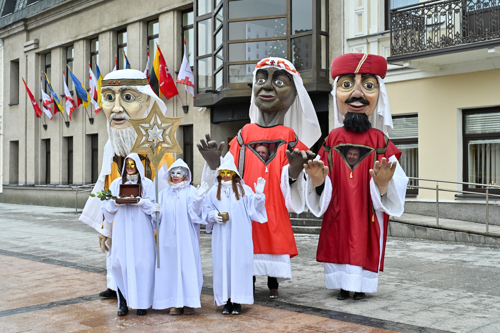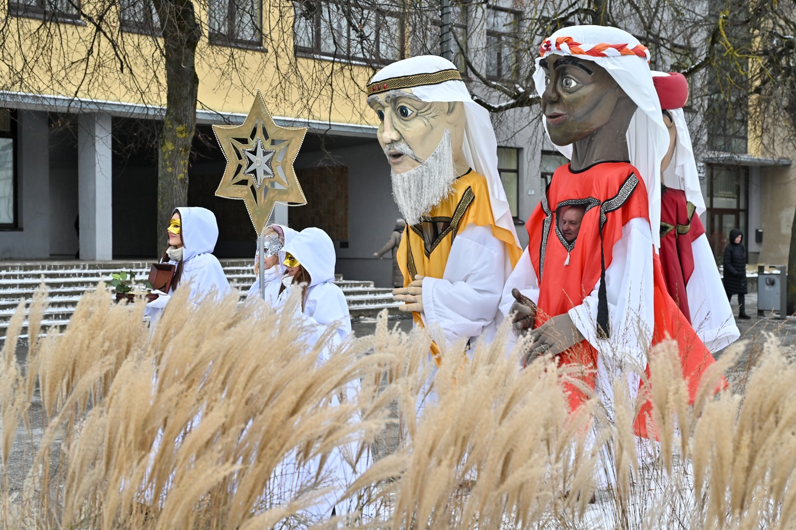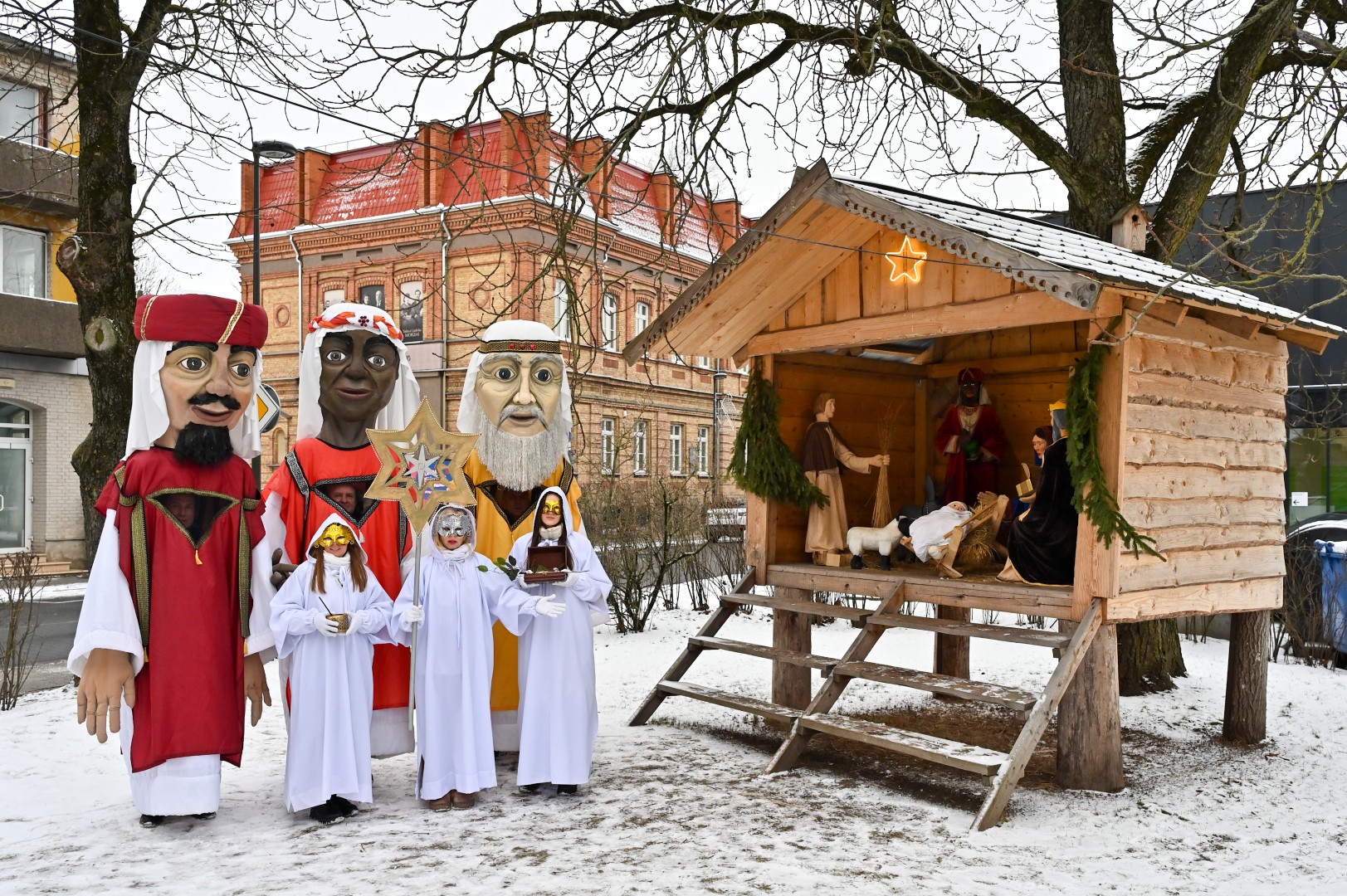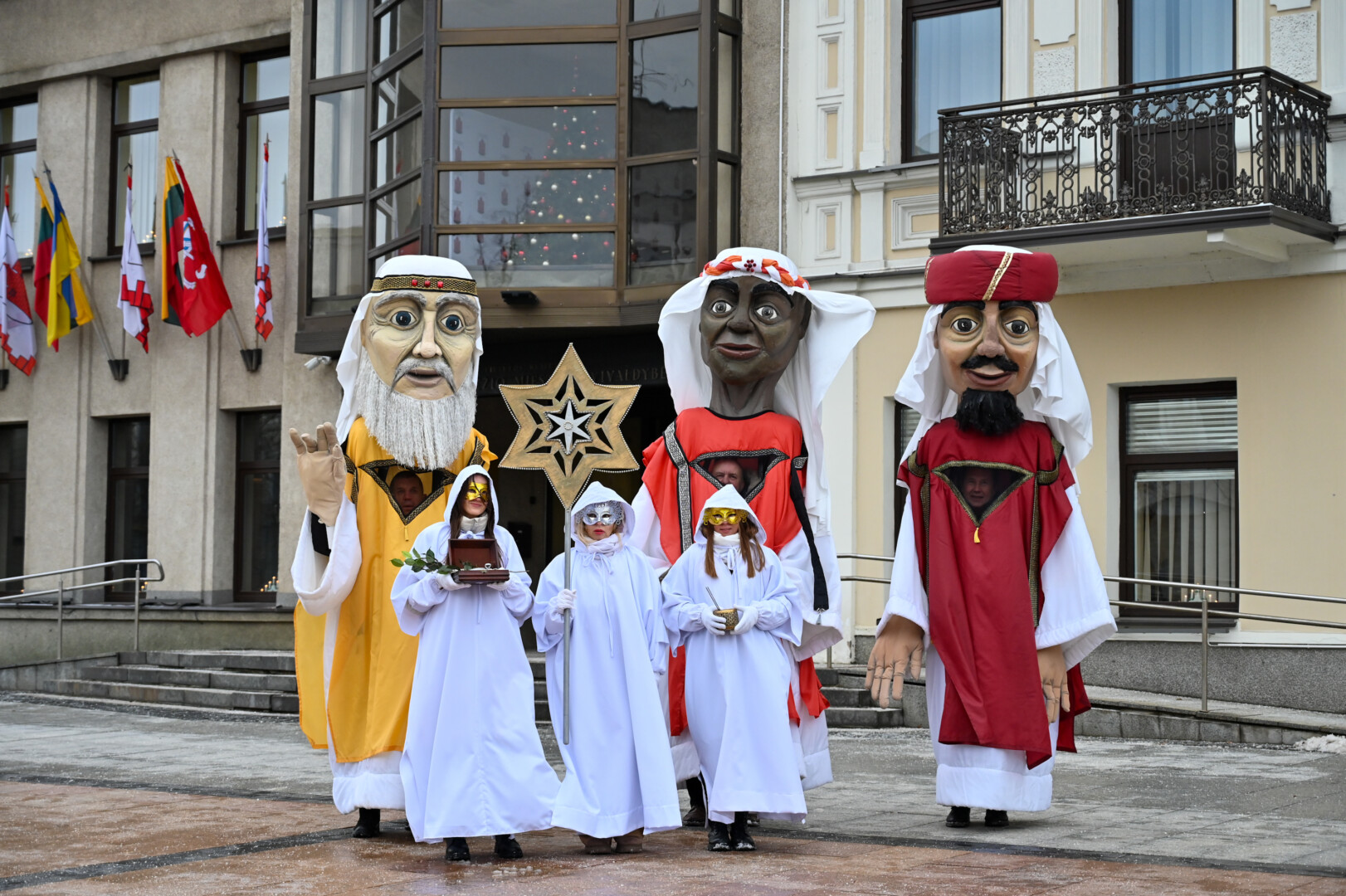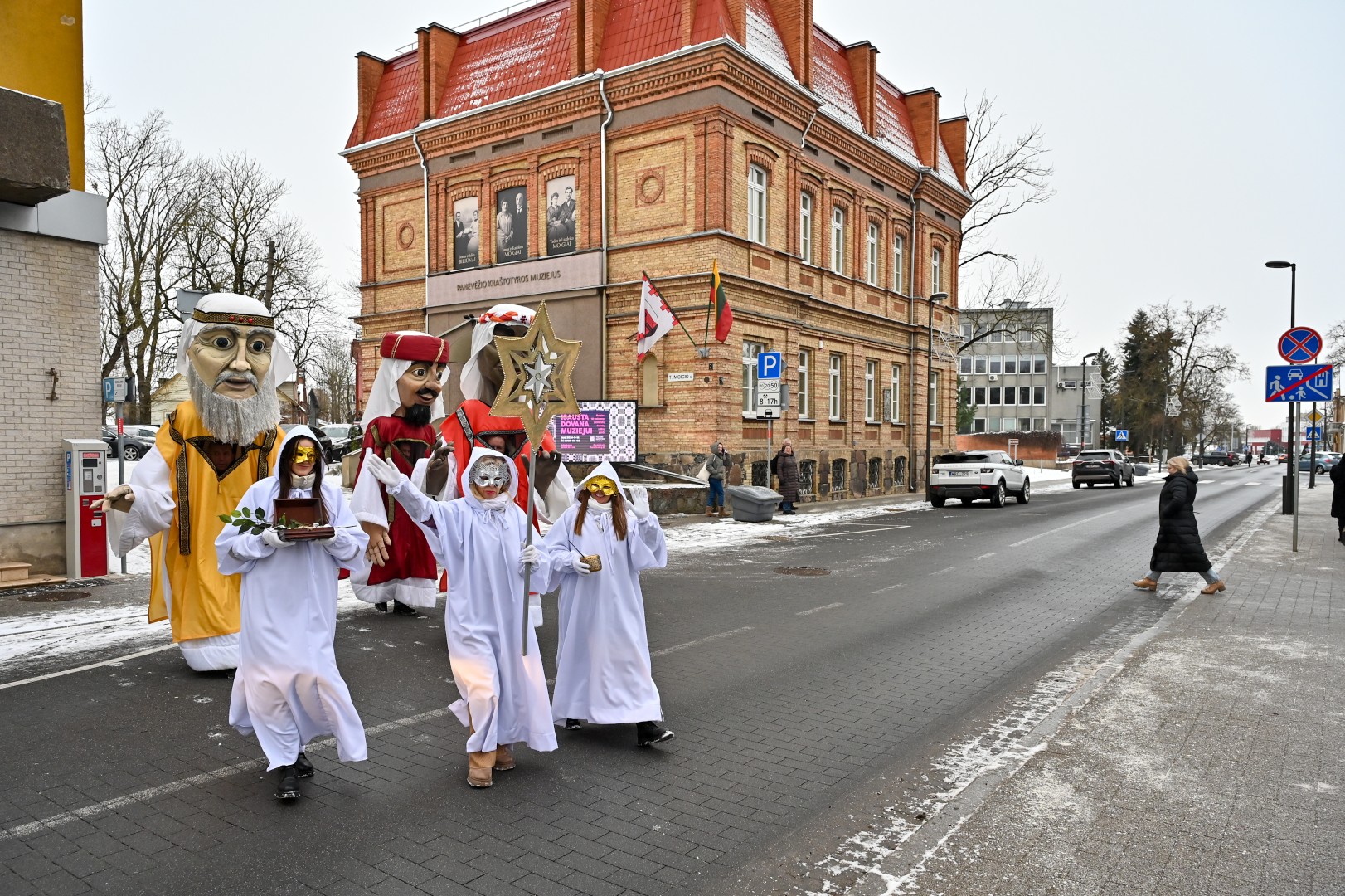 Puspenkto metro ūgio Trys Karaliai – Kasparas, Merkelis (Melchioras) ir Baltazaras – žingsniavo P. Puzino, Respublikos, Vasario 16-osios, Elektros gatvėmis sveikindami praeivius.