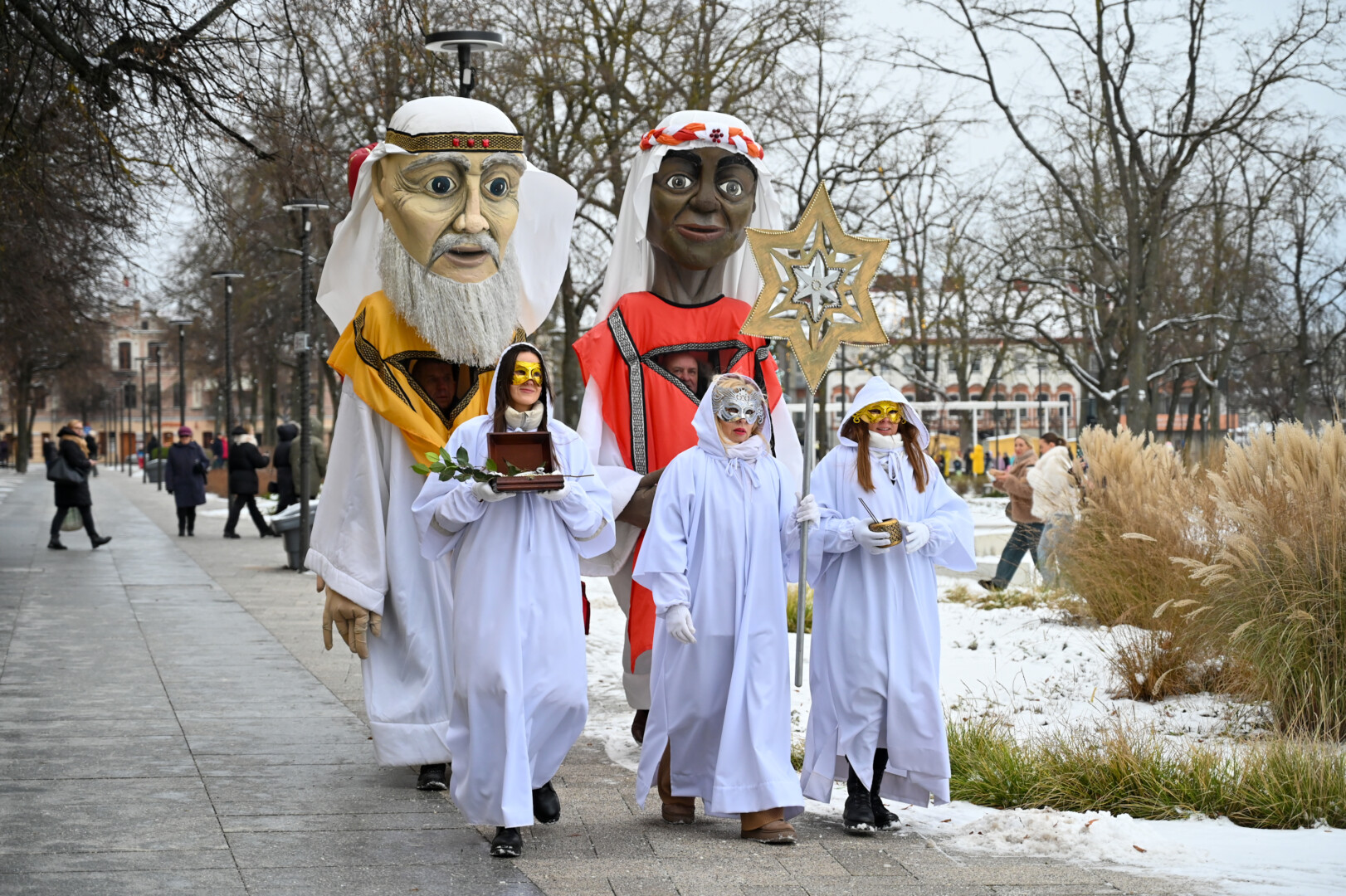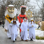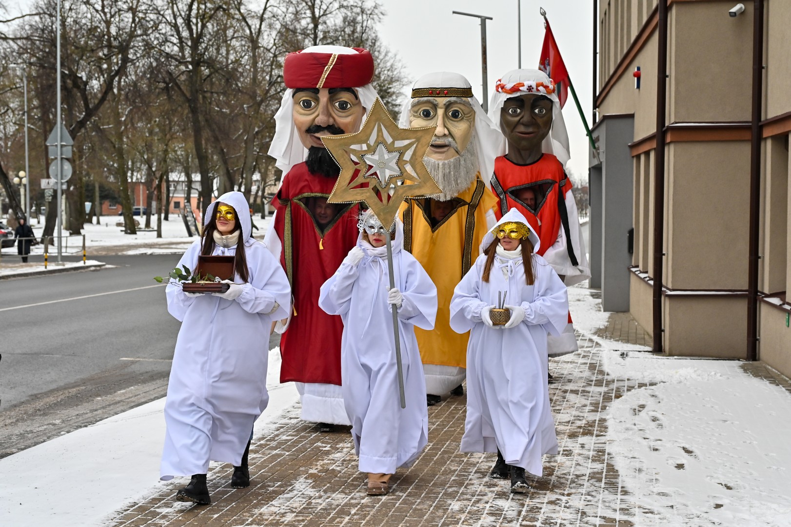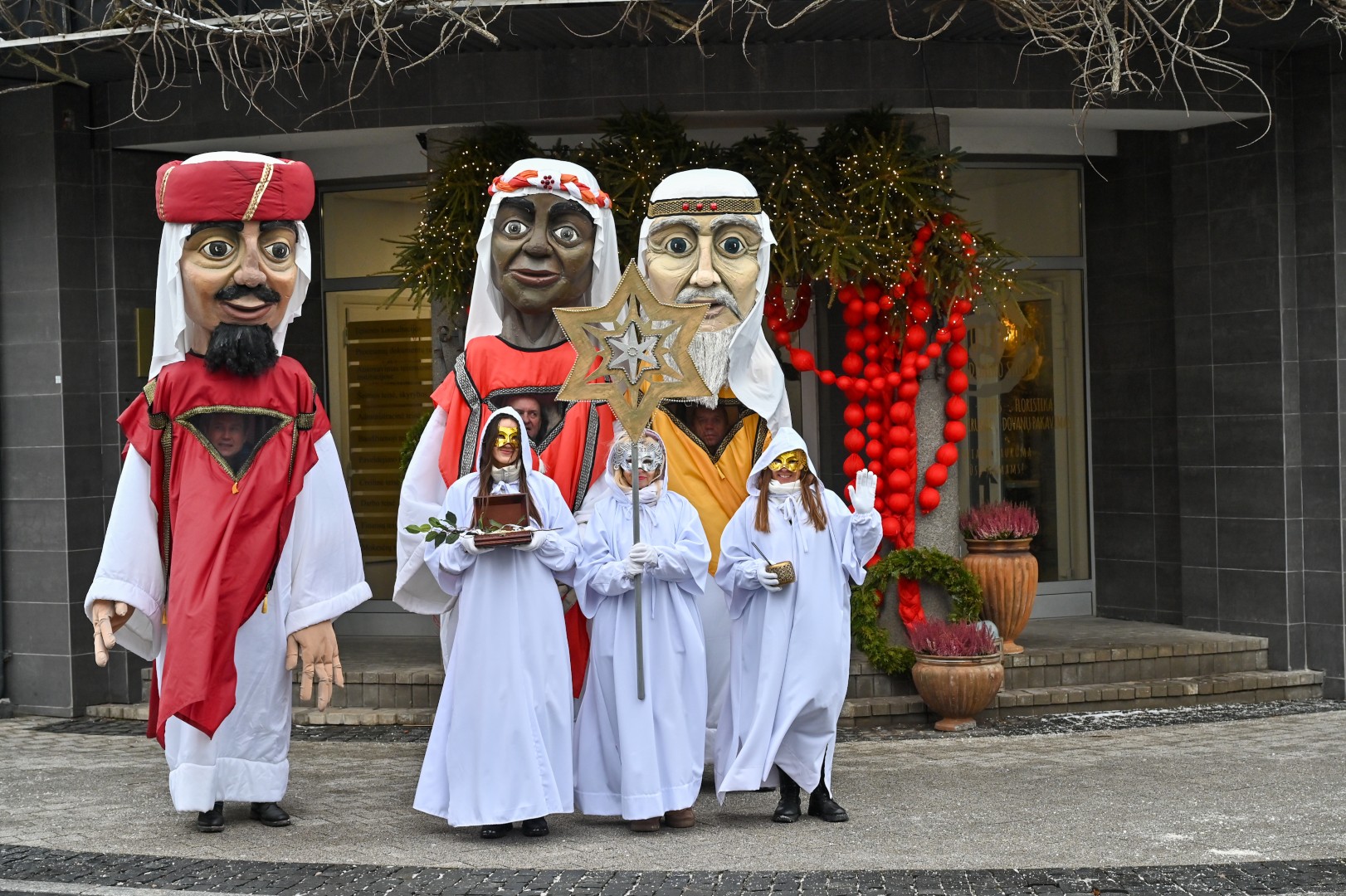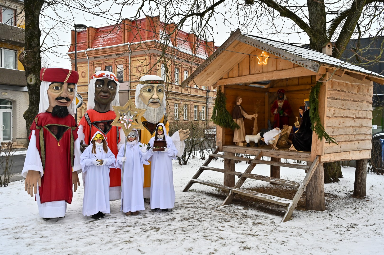 Puspenkto metro ūgio Trys Karaliai – Kasparas, Merkelis (Melchioras) ir Baltazaras – žingsniavo P. Puzino, Respublikos, Vasario 16-osios, Elektros gatvėmis sveikindami praeivius.