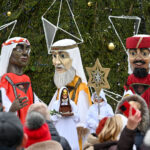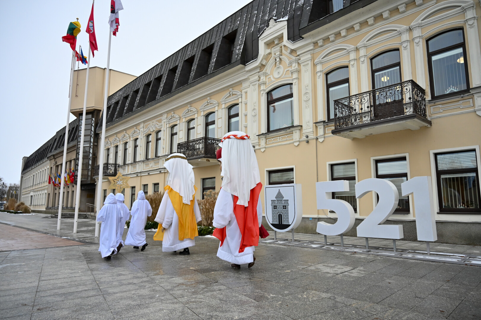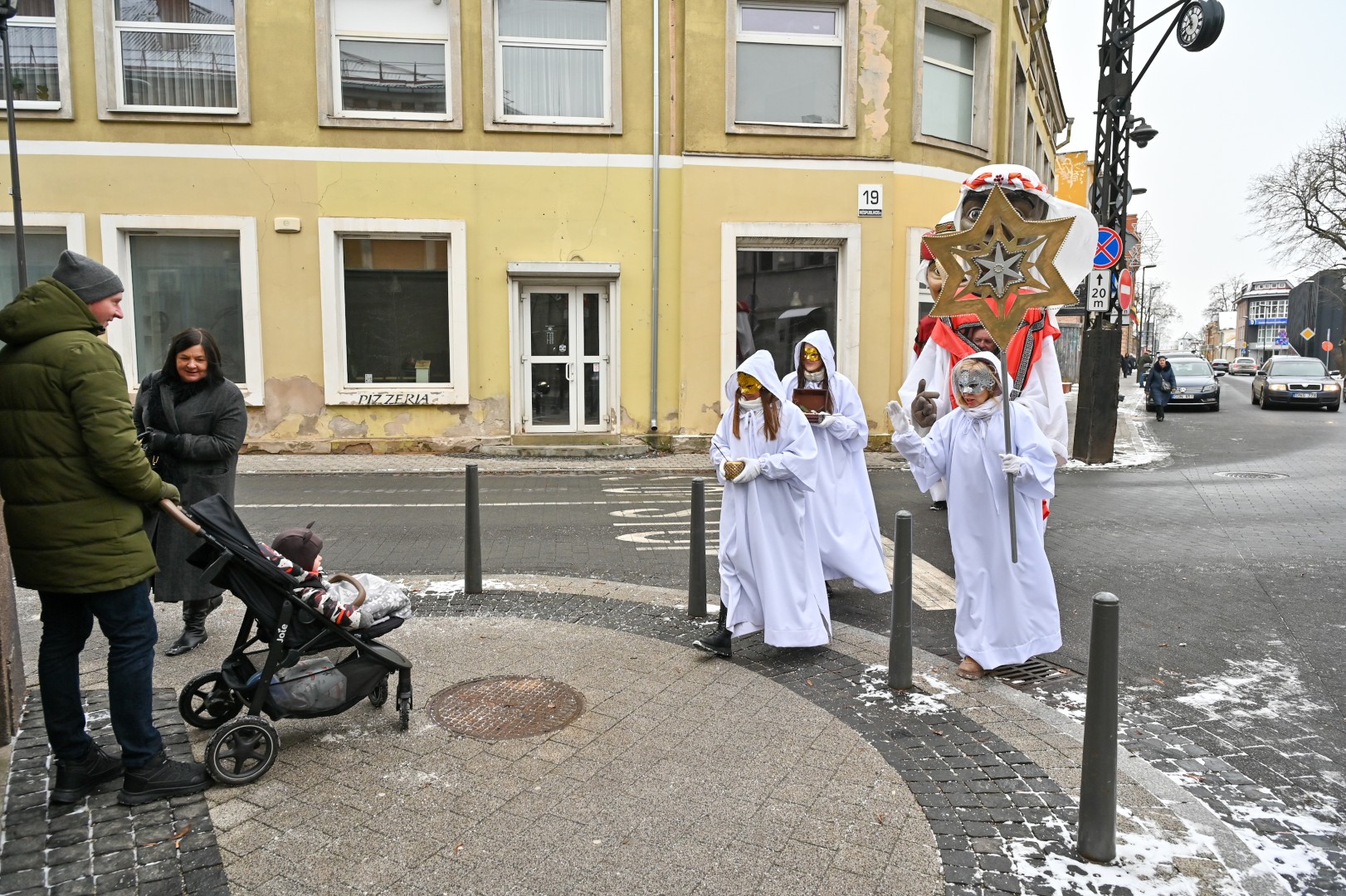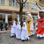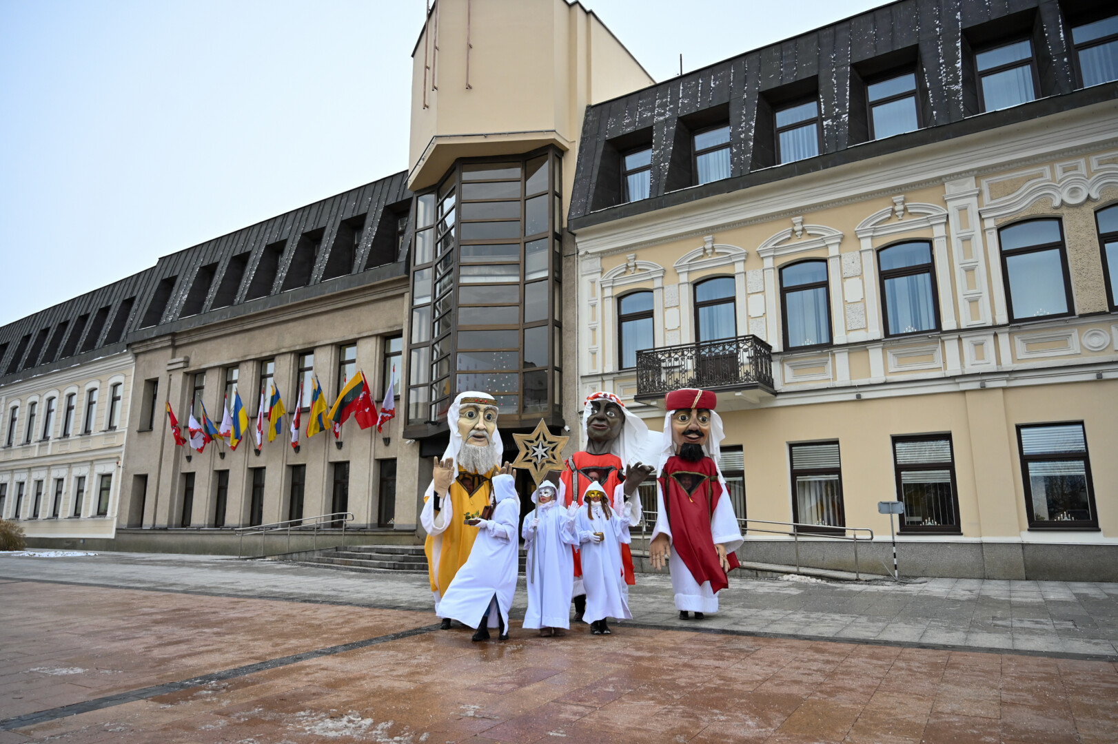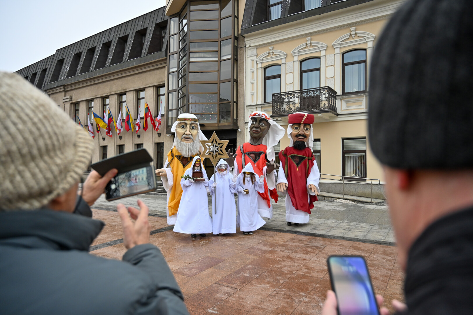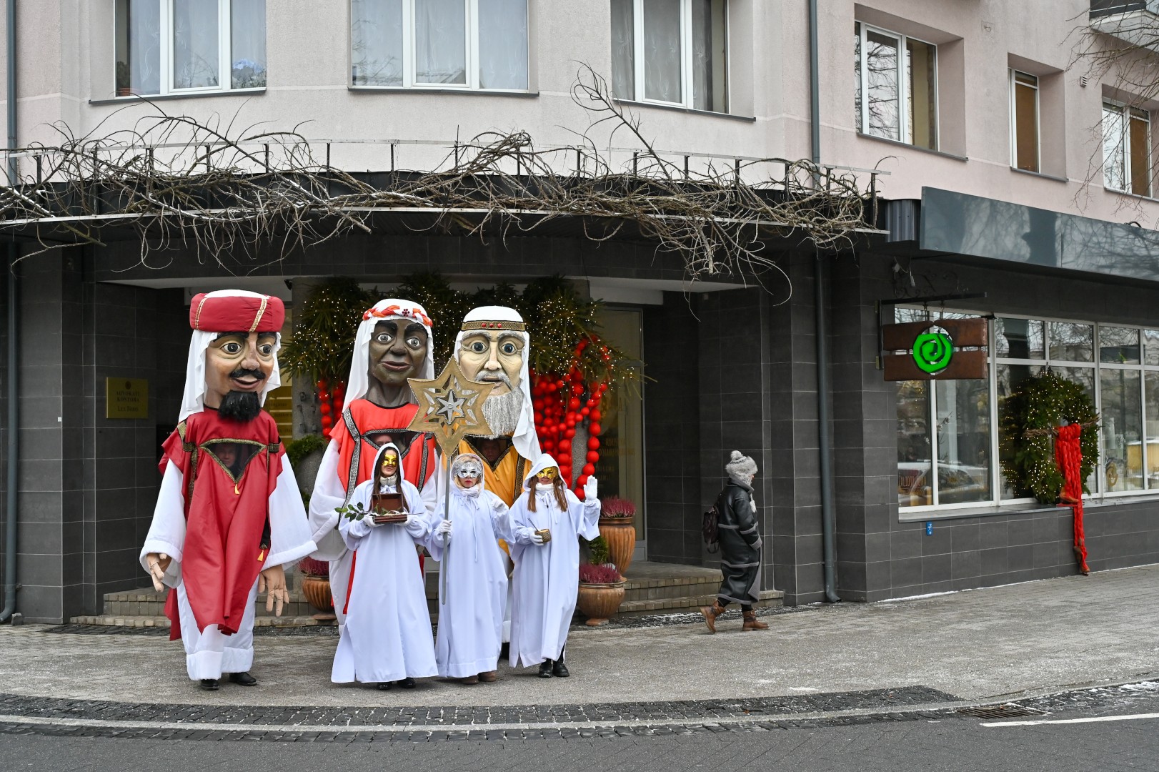 Puspenkto metro ūgio Trys Karaliai – Kasparas, Merkelis (Melchioras) ir Baltazaras – žingsniavo P. Puzino, Respublikos, Vasario 16-osios, Elektros gatvėmis sveikindami praeivius.