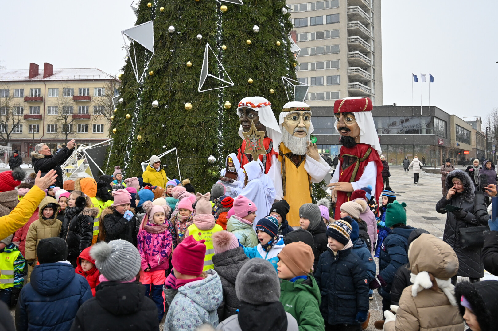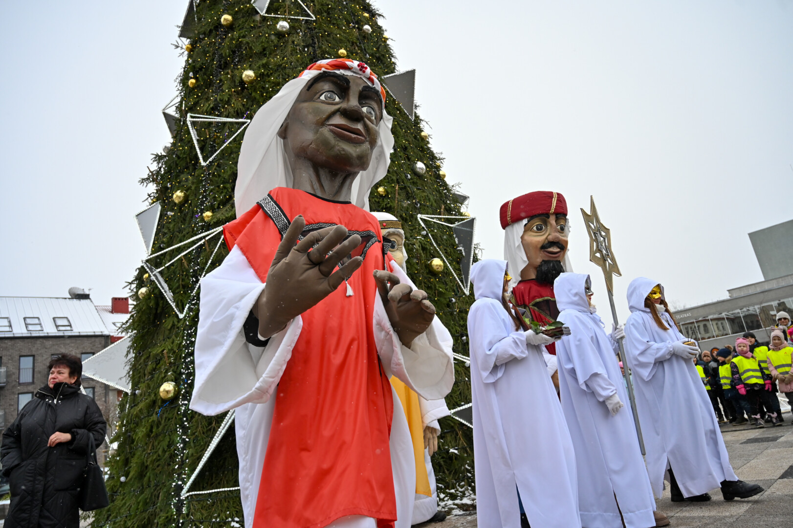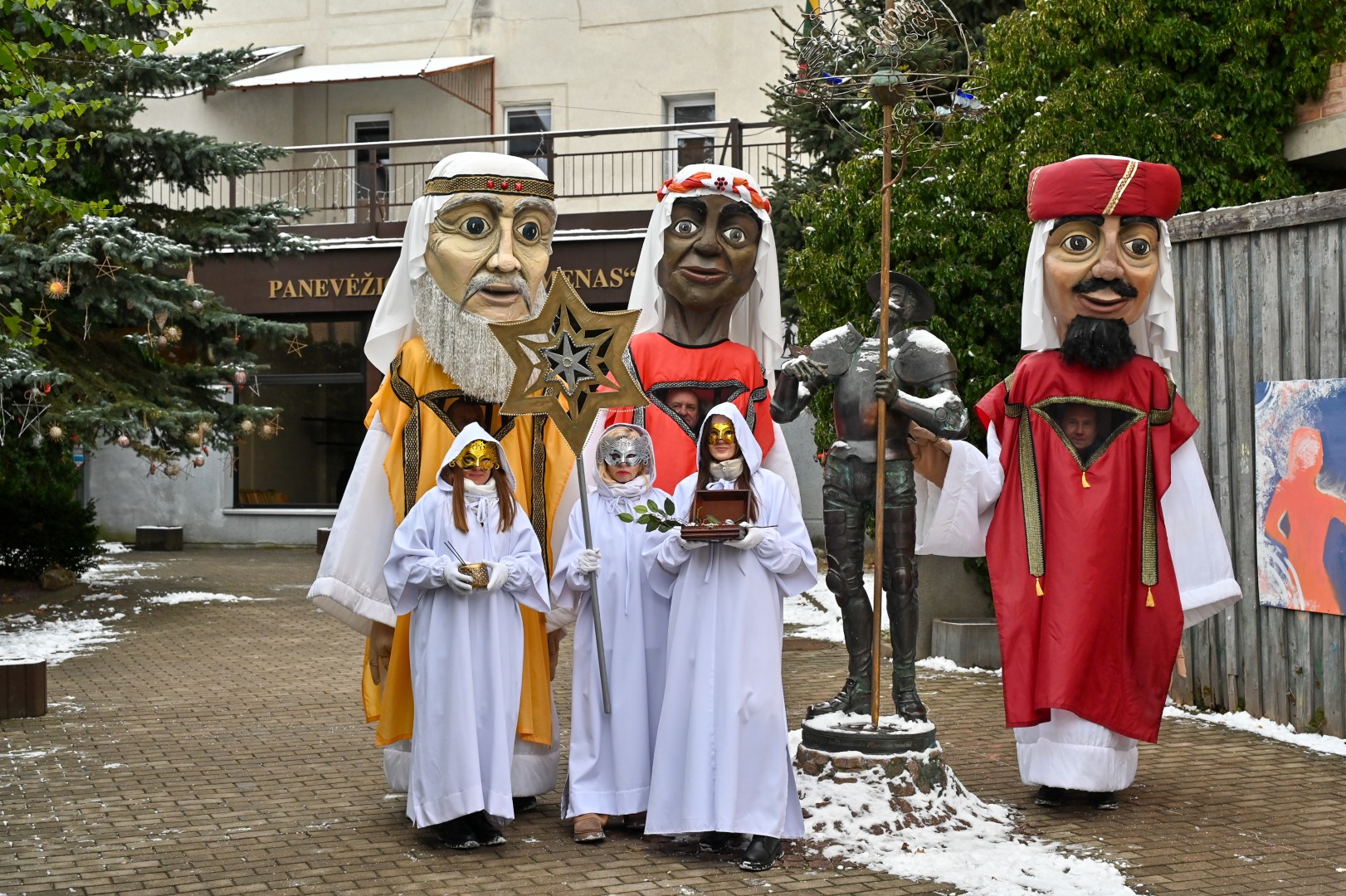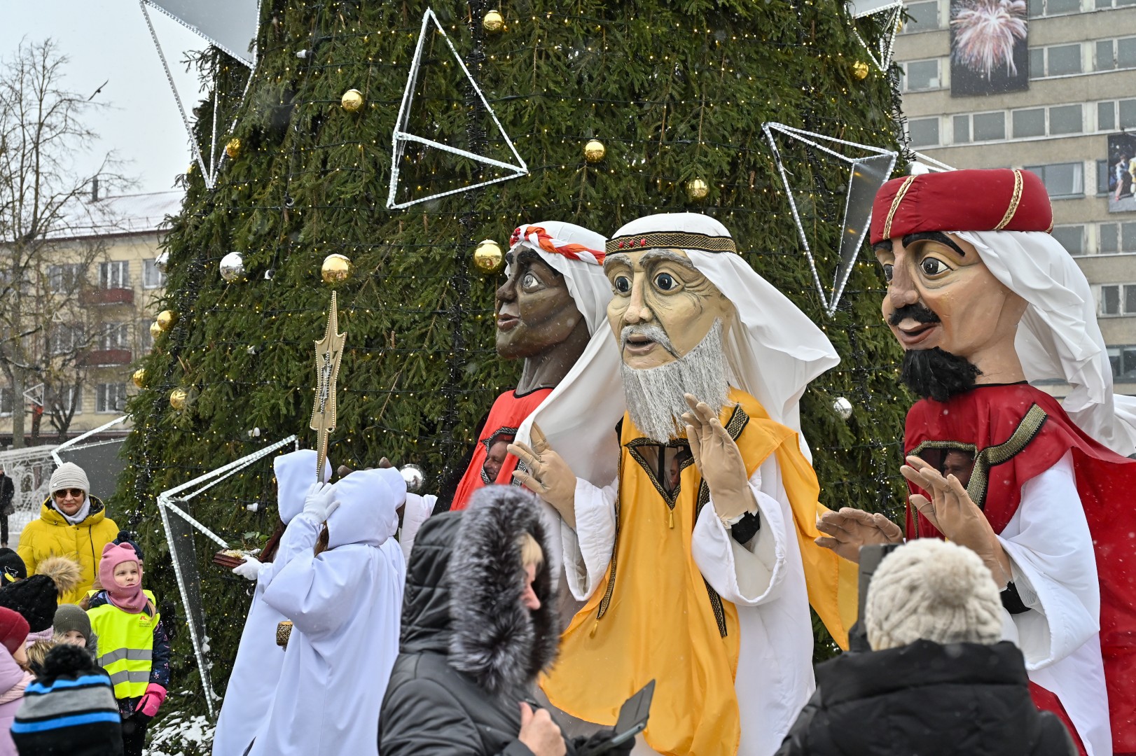 Įspūdingo ūgio karaliams pasiekus Kalėdų eglę, šalčio nepabūgę ir Laisvės aikštėje susirinkę panevėžiečiai išgirdo teatralizuotą sveikinimą.
