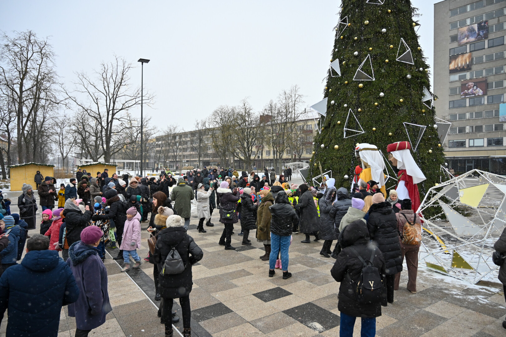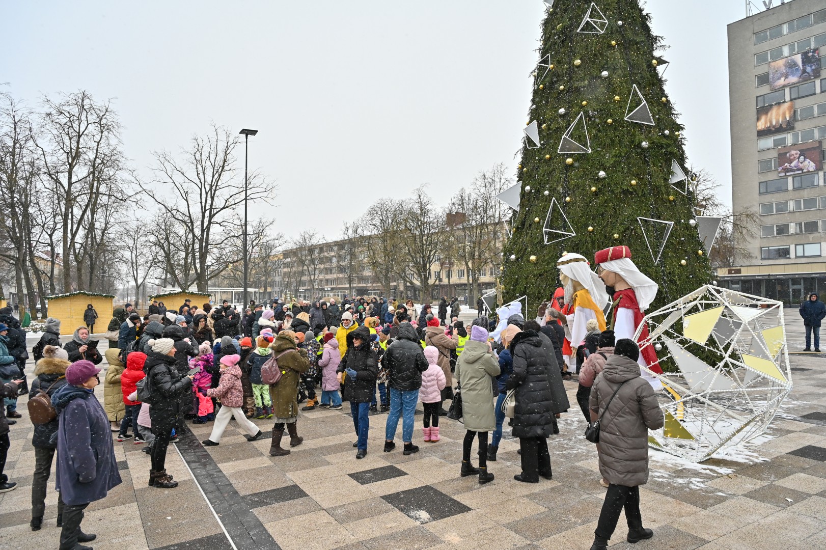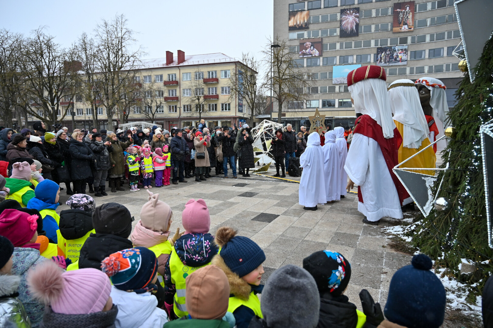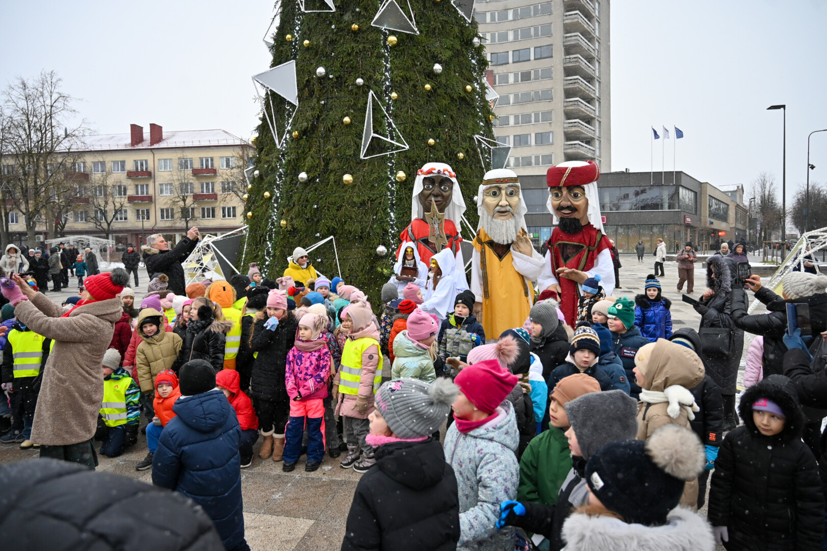 Įspūdingo ūgio karaliams pasiekus Kalėdų eglę, šalčio nepabūgę ir Laisvės aikštėje susirinkę panevėžiečiai išgirdo teatralizuotą sveikinimą.