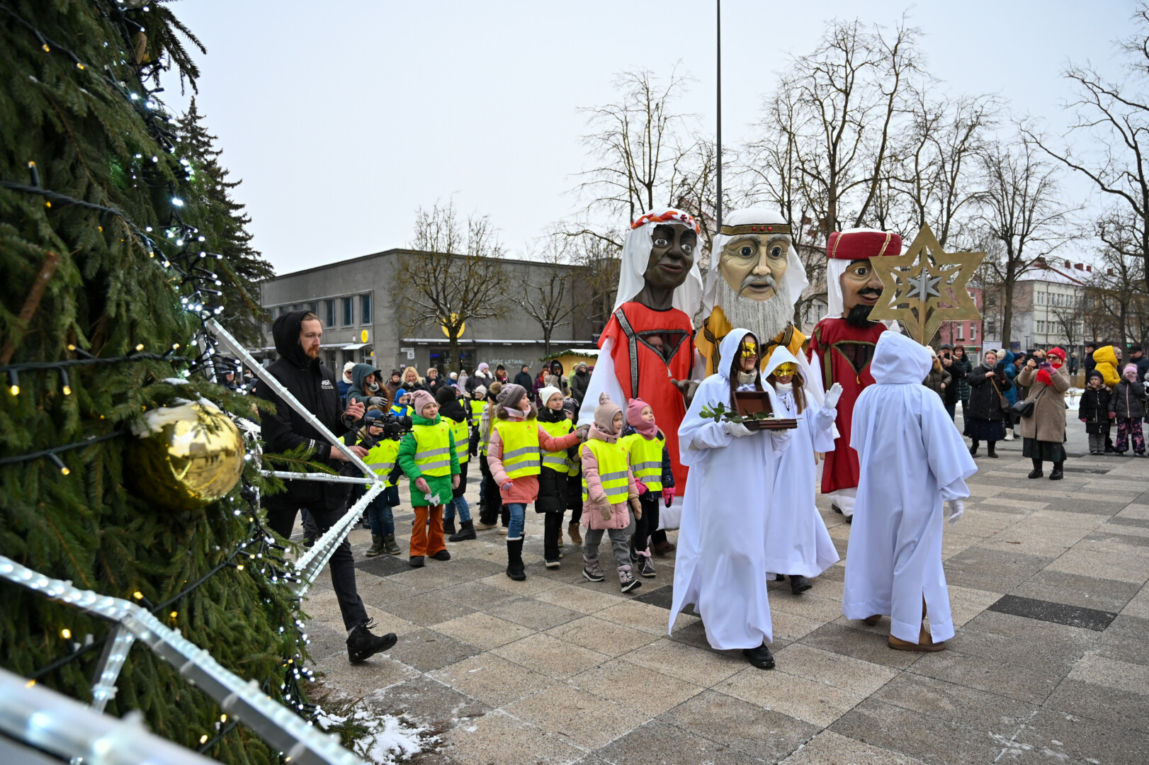 Puspenkto metro ūgio Trijų Karalių eisena per Panevėžį užbaigė žiemos švenčių maratoną, tačiau kalėdinė eglė Laisvės aikštę puoš dar visą savaitę.