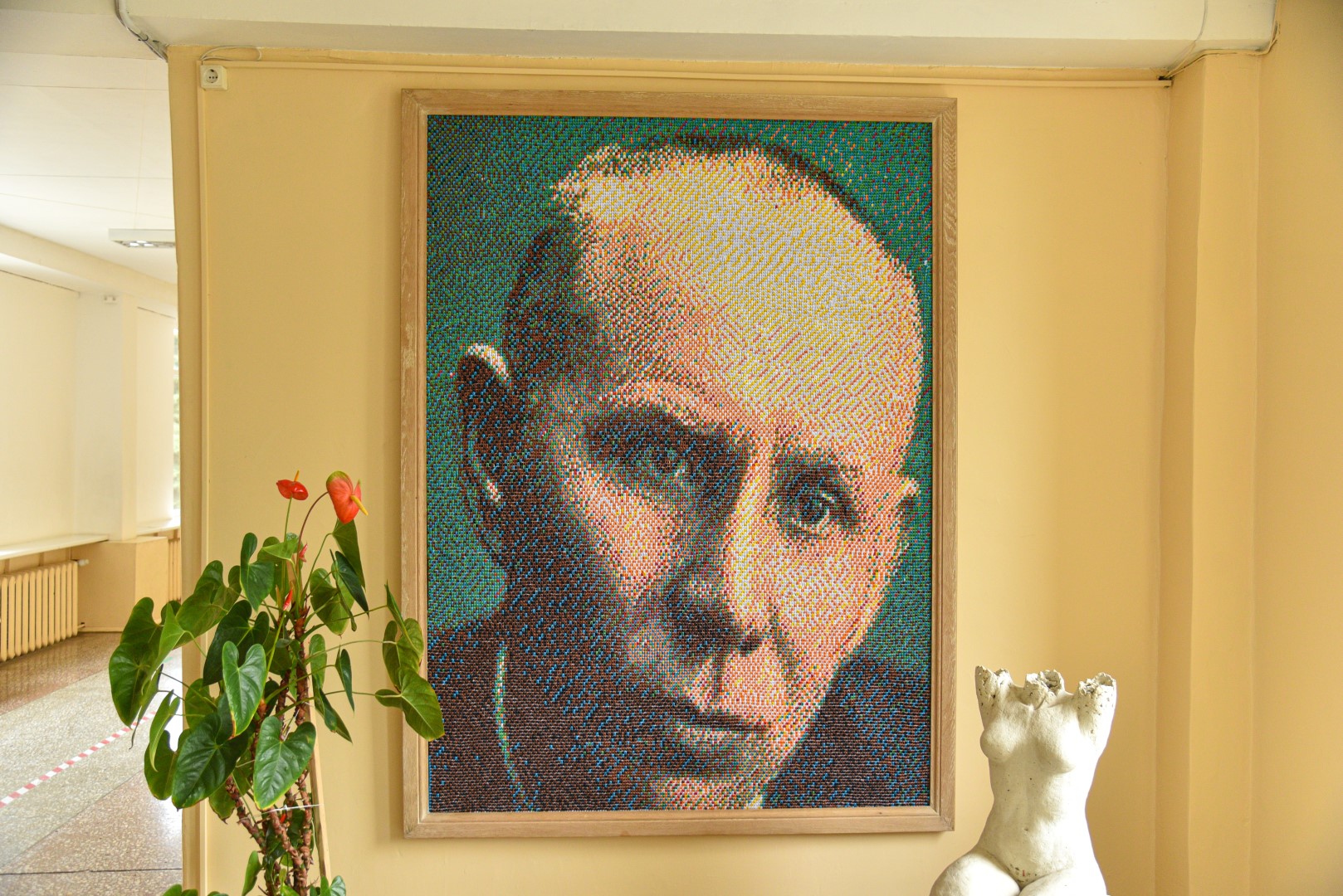 Paįstrio Juozo Zikaro gimnazijos sieną jau kurį laiką puošia išskirtinis, įspūdingo dydžio, aikčioti iš nuostabos verčiantis paveikslas. Iš pradžių gali pasirodyti, jog tai – įprastas gimnazijai vardą dovanojusio garsiojo skulptoriaus Juozo Zikaro portretas. Tačiau priėjus arčiau matyti, kad genialus kūrinys, galbūt net pateksiantis į rekordų knygą, toli gražu ne paprastas.