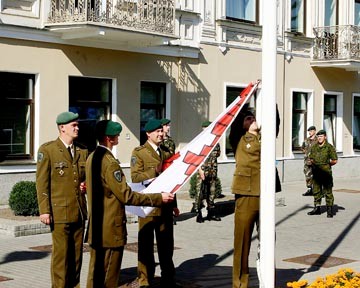 S.Kašino nuotr. Vakar prie miesto Savivaldybės vyko iškilminga vėliavos pakėlimo ceremonija.