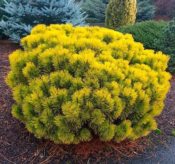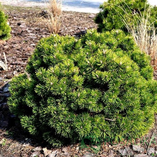 Sode užaugęs krūmas būna, kaip sakoma, koks paritus, toks pastačius – 1,5 m į visas puses. Bet tenka palaukti, nes per pirmuosius dešimt metų ši pušis pasiekia tik 0,5 m skersmenį. Spygliai tamsūs, žalsvai gelsvi. Pušis ne tik labai lėtai auga, bet ir tankiai šakojasi, nereikalauja ypatingos priežiūros.