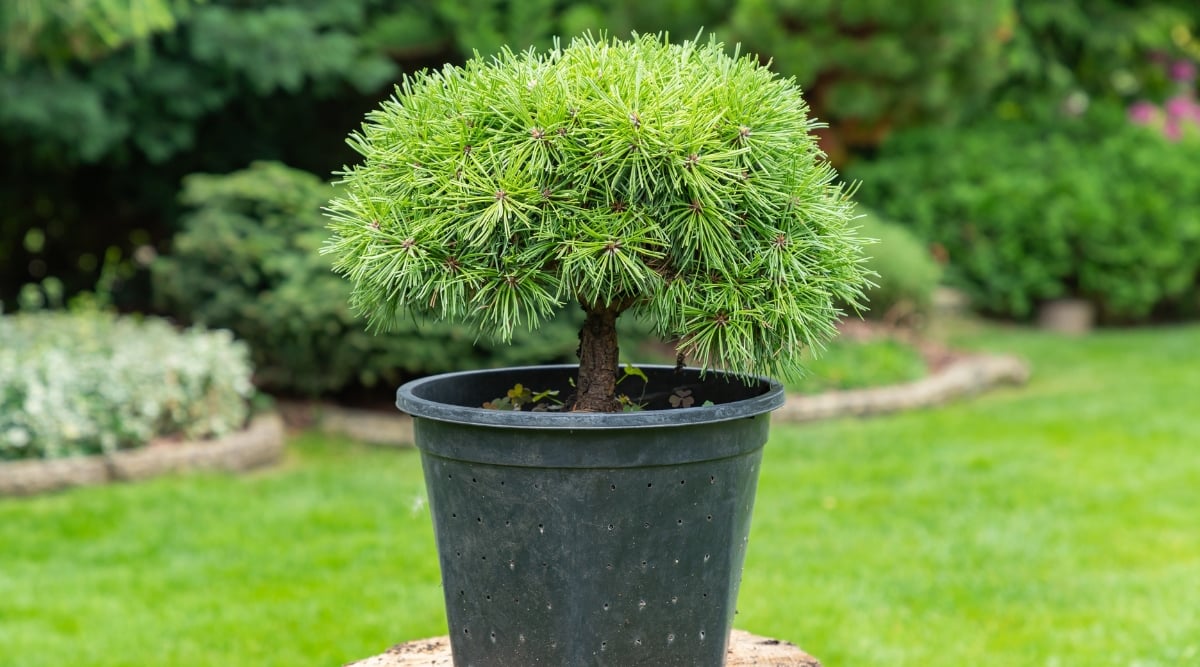 Visada įsitikinkite, kad vazono skersmuo atitinka spygliuočio dydį.