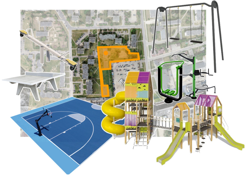 Projekte numatyta, kad senas, dar sovietmečiu įrengtas sporto aikštynas virs modernia laisvalaikio vieta. Čia bus įrengta krepšinio aikštelė, treniruokliai, vaikų žaidimo aikštelė, sūpuoklės, atsiras suoliukų.