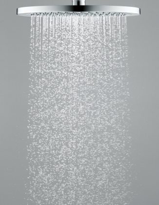 „RainSelect“ vizualiai estetiškai dera prie „Rainmaker Select“ ir kitų viršutinių dušo galvų.