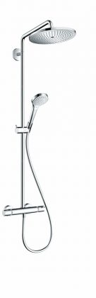 Vartotojų apklausos parodė, kad didelio skersmens viršutinės dušo galvos vis dar labai mėgstamos. „Croma“ – populiariausia ir itin įvairiapusė „Hansgrohe“ dušo produktų kolekcija. Naujausia jos dalis – „Croma 280“ serija pirmiausia įspūdį padaro savo matmenimis: dušo galva, kaip ir sako pavadinimas, yra net 280 mm skersmens. Įdėmiau įvertinus, įspūdis neblėsta – pagaminta iš metalo, užtikrinančio ilgaamžiškumą, „Croma 280“ stebina formų tikslumu ir švariomis linijomis.