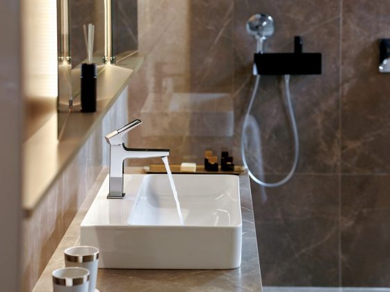 Minimalistinis „Raindance E“ elementų dizainas puikiai dera su kitomis „Hansgrohe“ maišytuvų kolekcijomis ir dušo produktais.