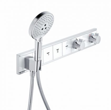 Didėjančių dušo erdvių ir skirtingo stiliaus vandens sroves pasirinkti leidžiančių dušo galvų tendencija tęsiasi. „Hansgrohe“ kompanijos „RainSelect“ technologija siūlo supaprastintą ir intuityvų vandens srovės pasirinkimą vienu mygtuko paspaudimu – visai kaip elektros jungikliai leidžia sukurti įvairius apšvietimo scenarijus patalpoje. Horizontalus komponavimas ir taurios medžiagos – metalas arba (baltas arba juodas) stiklas – pabrėžia minimalistinį prietaiso dizainą. Šalia mygtukų išdėstyti elegantiški vandens srovės stiprumo ir temperatūros reguliatoriai. „RainSelect“ technologija yra grynai mechaninė ir veikia be elektros. Tame pačiame korpuse įrengta ir rankinio dušo jungtis bei laikiklis, o tai leidžia išvengti papildomo sienos gręžimo.