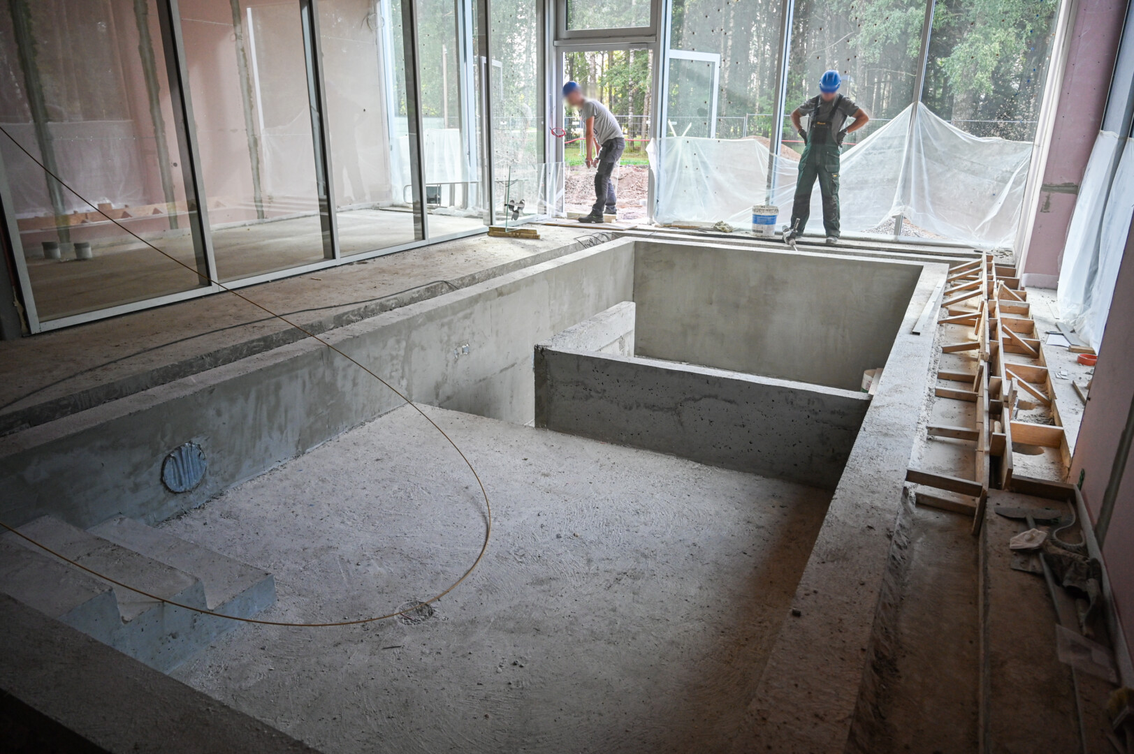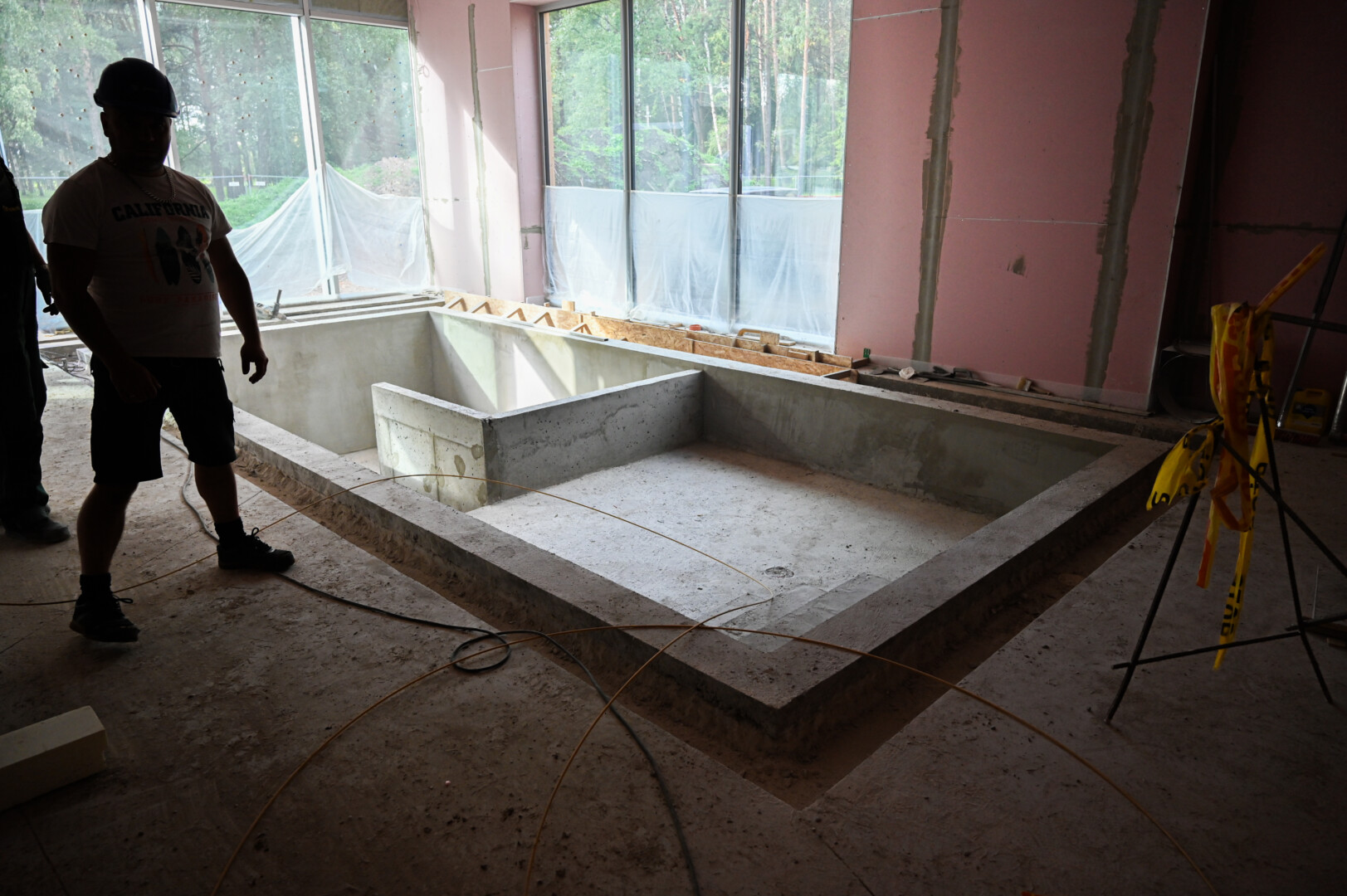 Šiuo metu statybininkai įrengia jo vidų ir lieja pamatus metalo strypų tvorai.