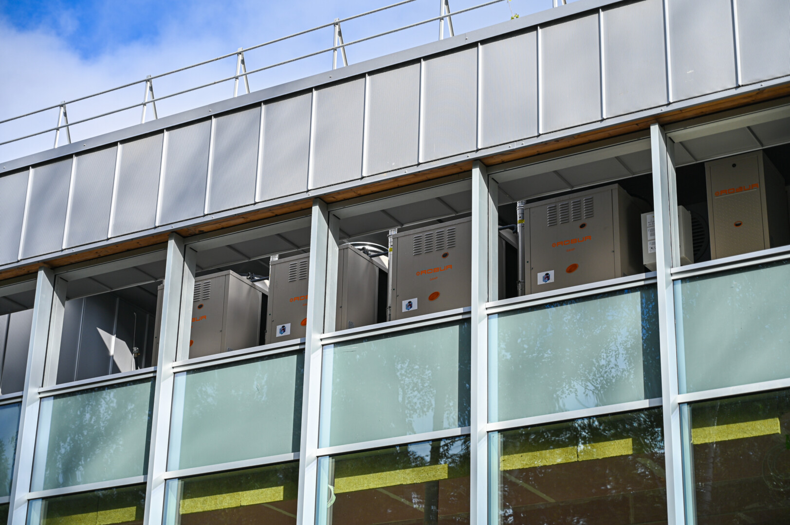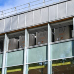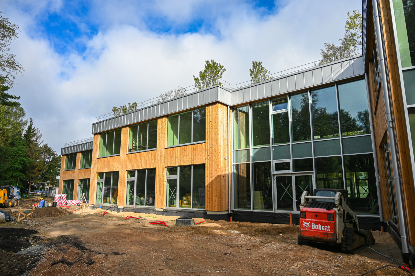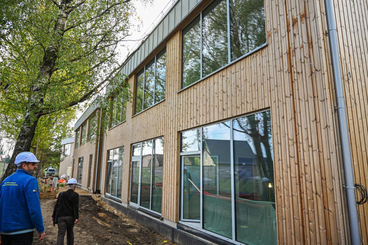 „Harmonijos miesto“ pastatas dar aptvertas statybinėmis tvoromis, bet jau traukia akį išskirtinumu. Pro vitrininius langus matyti vėjų linguojamos pušys, fasadas apkaltas medinėmis lentelėmis.