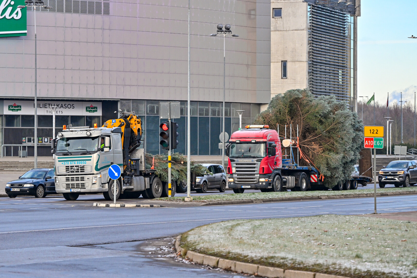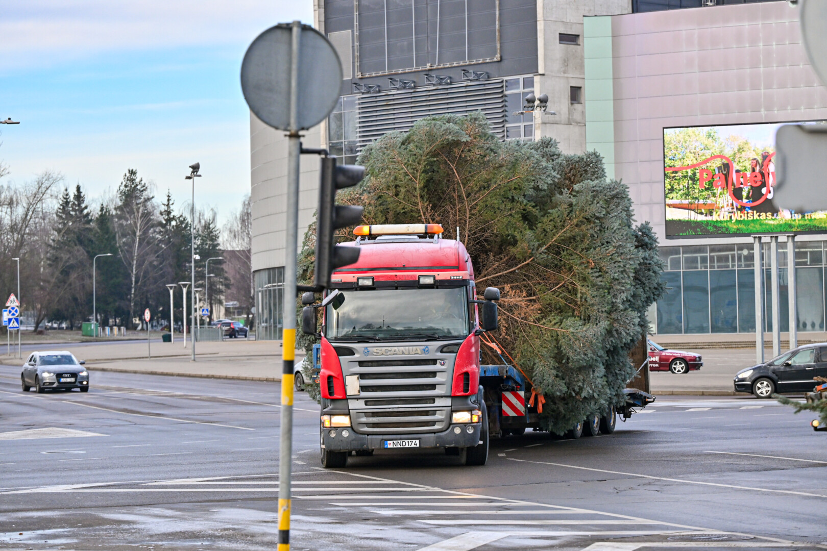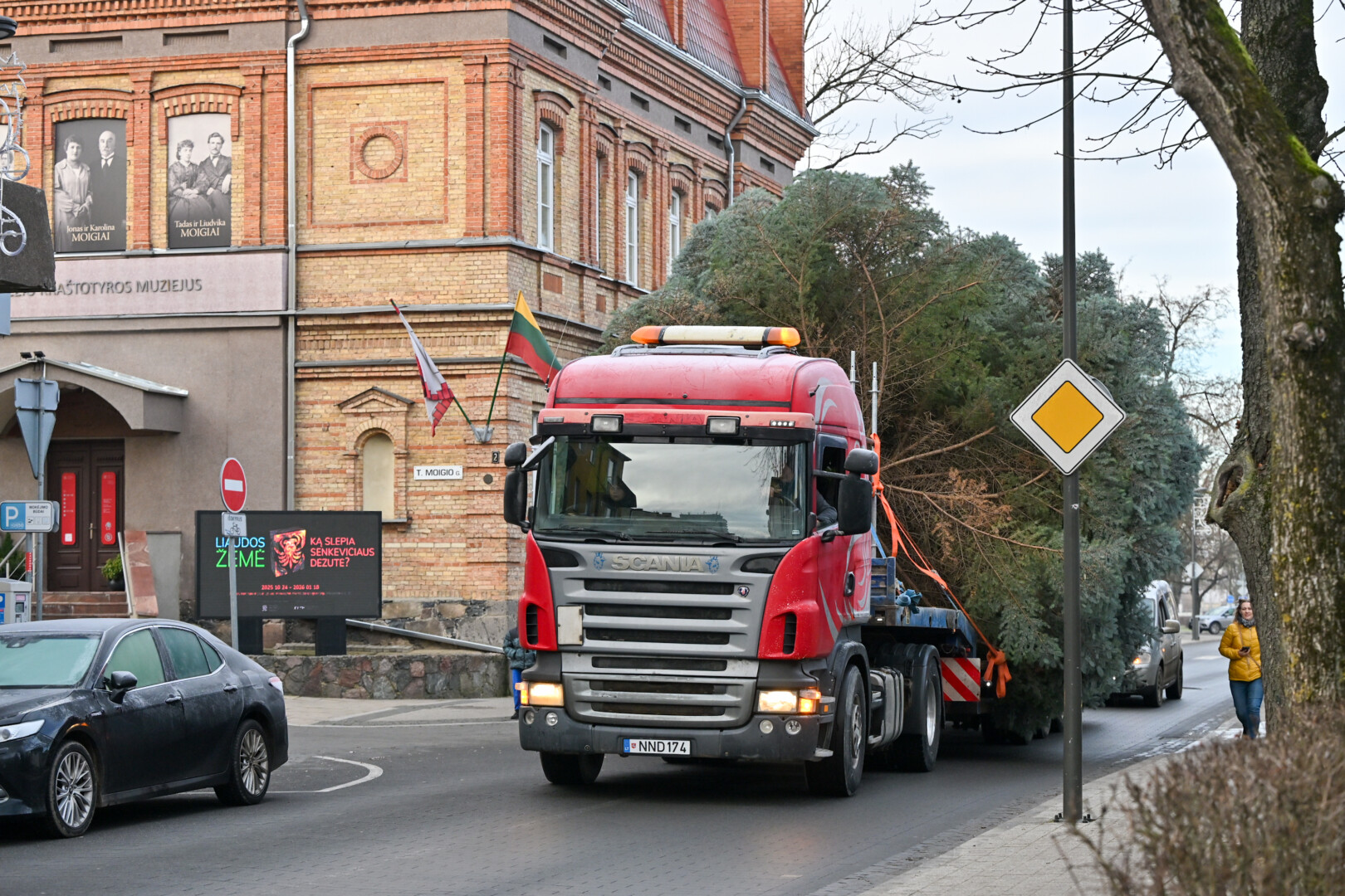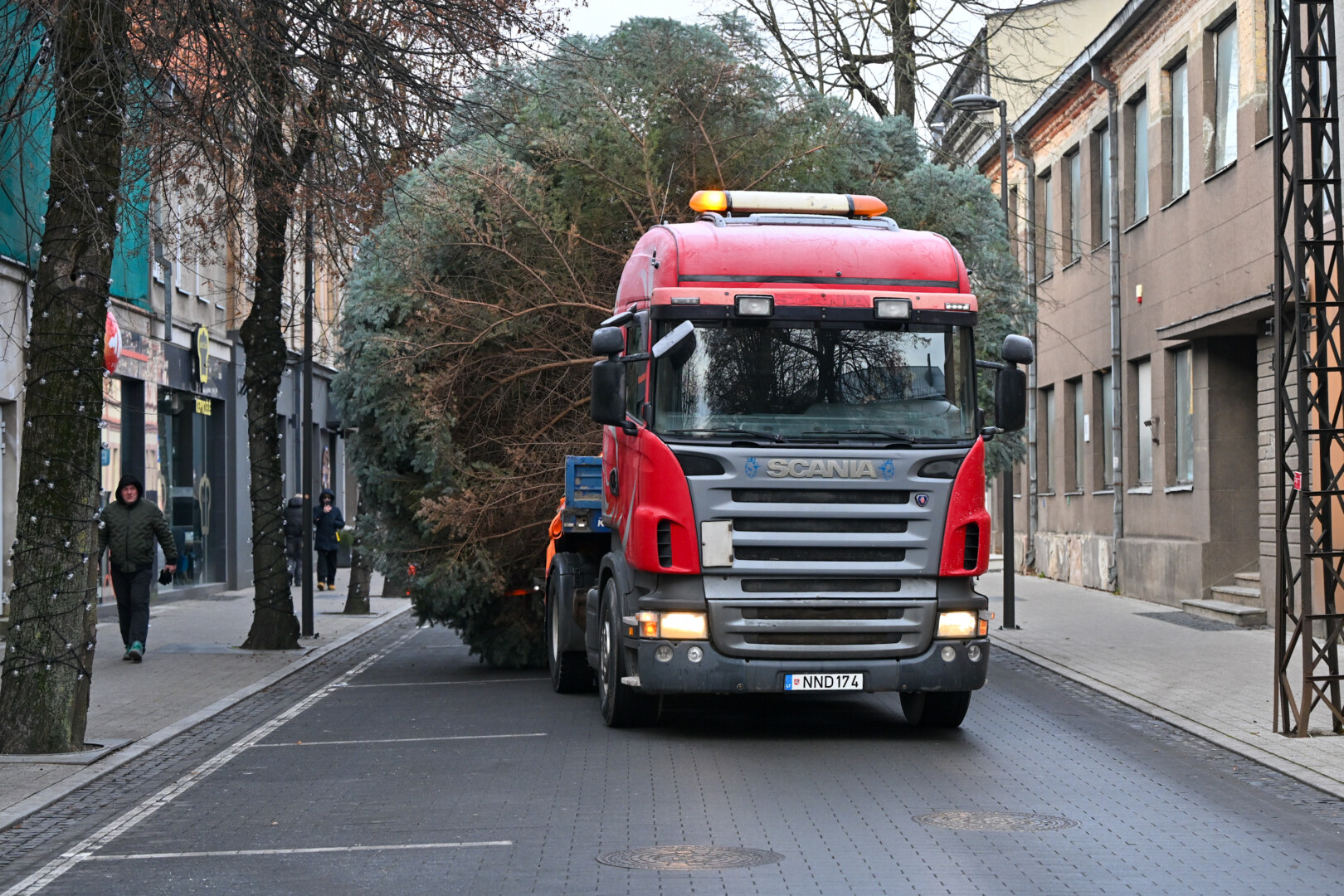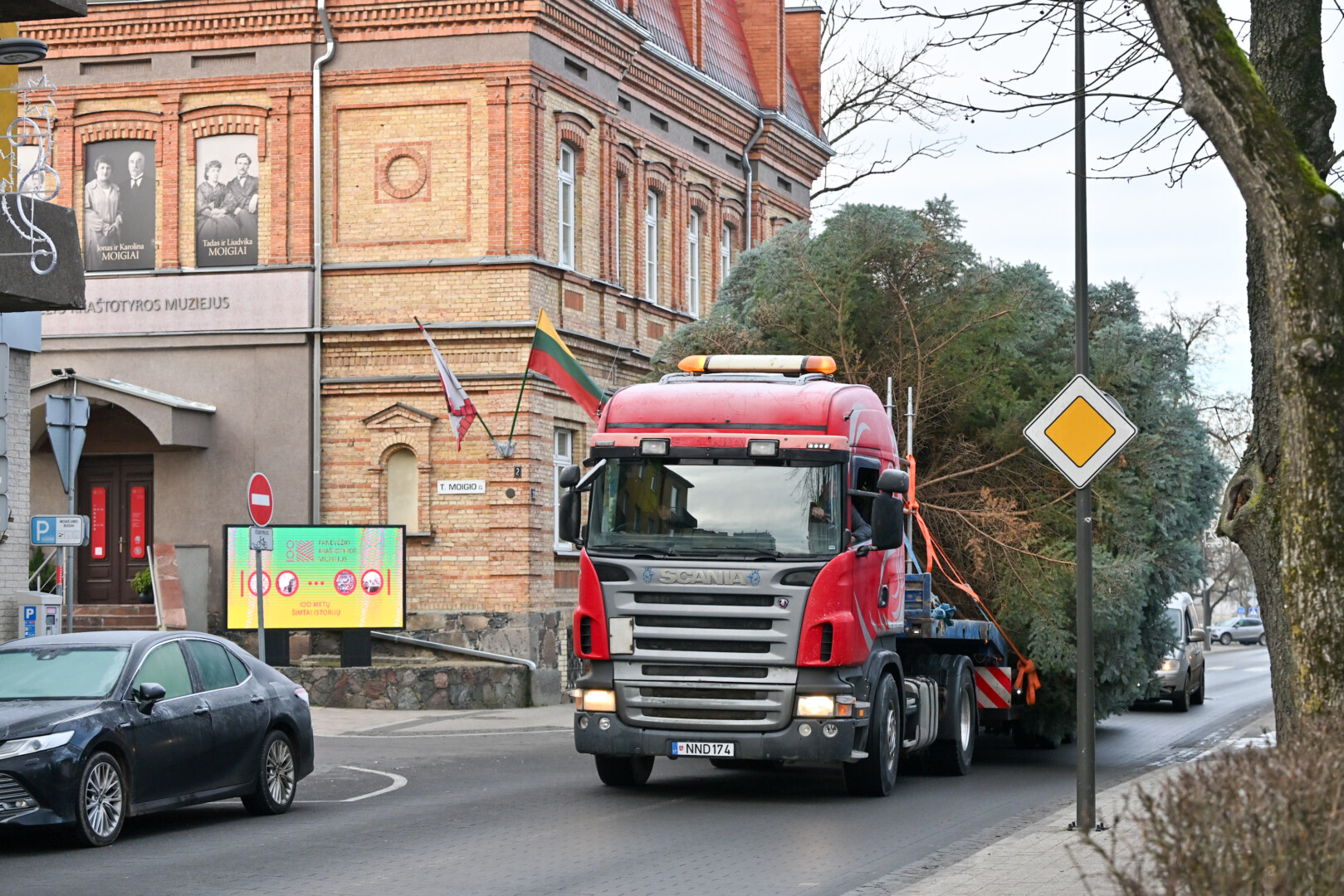 Pasak „GES projektai“ direktorės Erinijos Svarinskienės, nupjauti ne vieną toną sveriantį maždaug 15 metrų aukščio medį ir atgabenti į miesto centrą – sudėtinga užduotis.