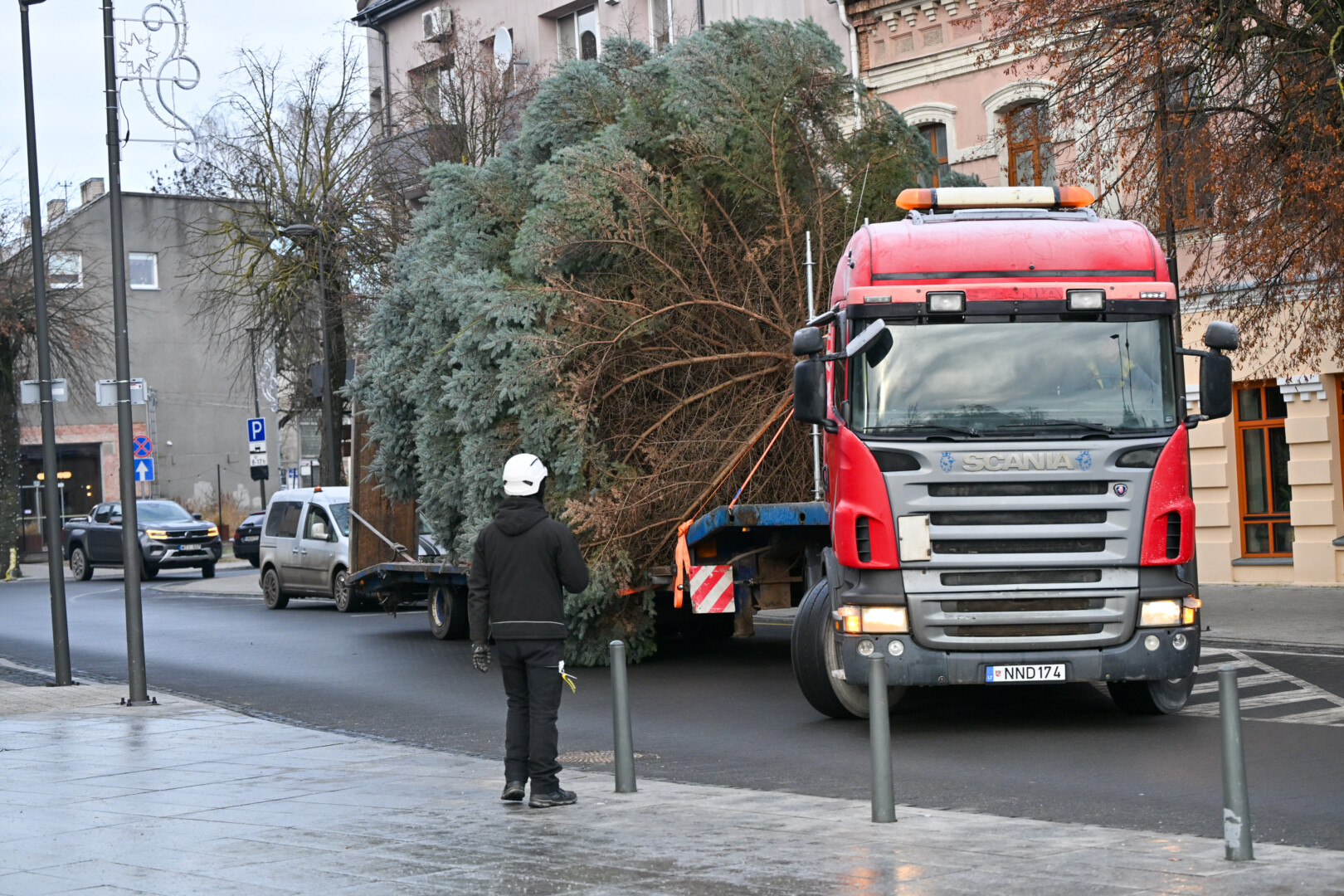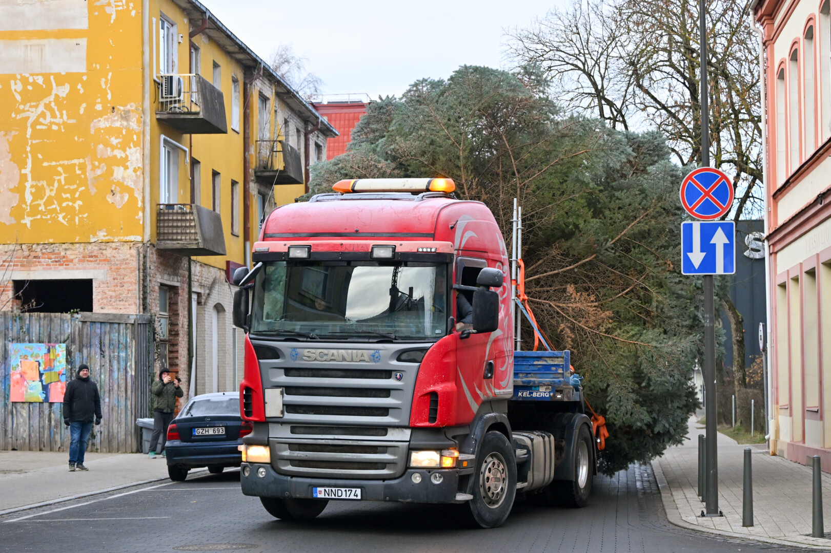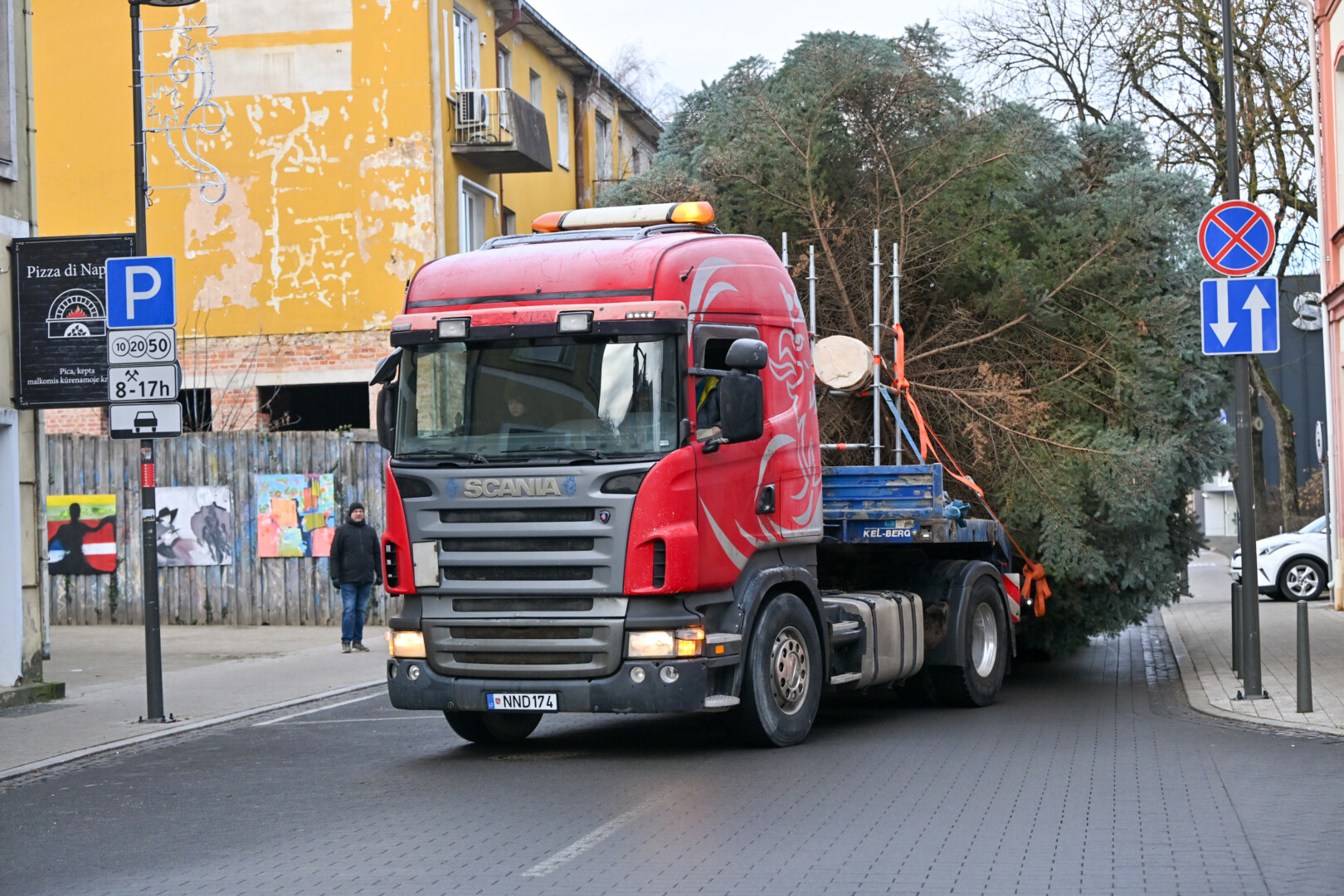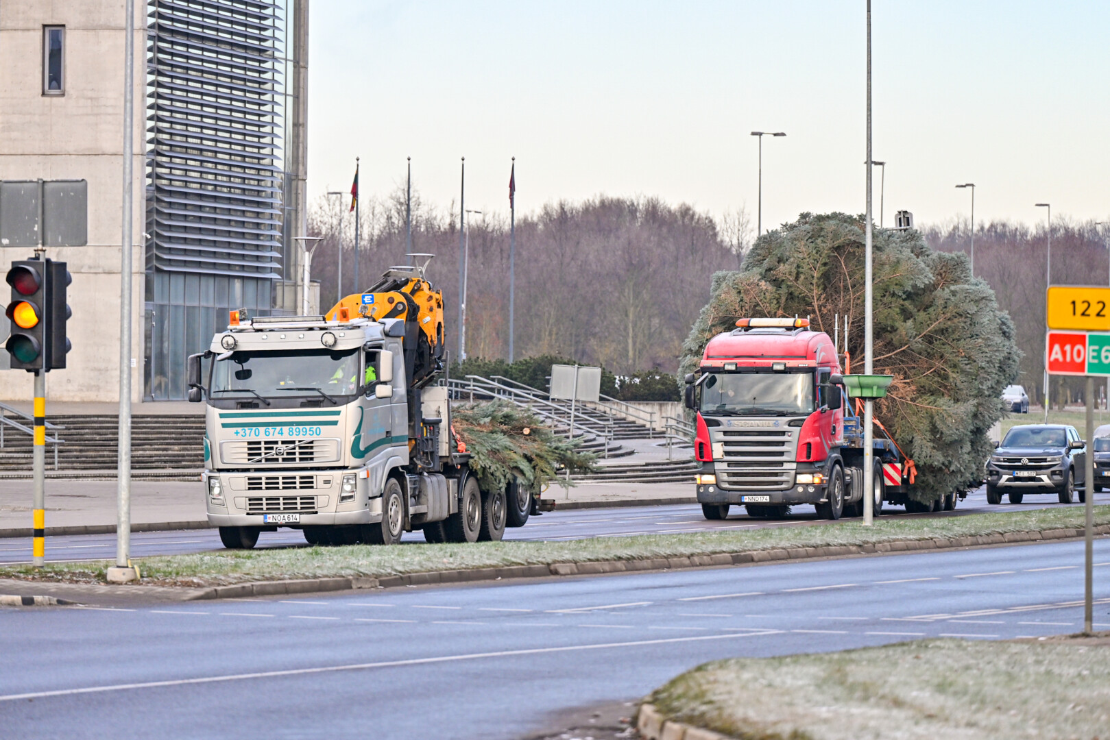 Pasak „GES projektai“ direktorės Erinijos Svarinskienės, nupjauti ne vieną toną sveriantį maždaug 15 metrų aukščio medį ir atgabenti į miesto centrą – sudėtinga užduotis.