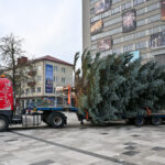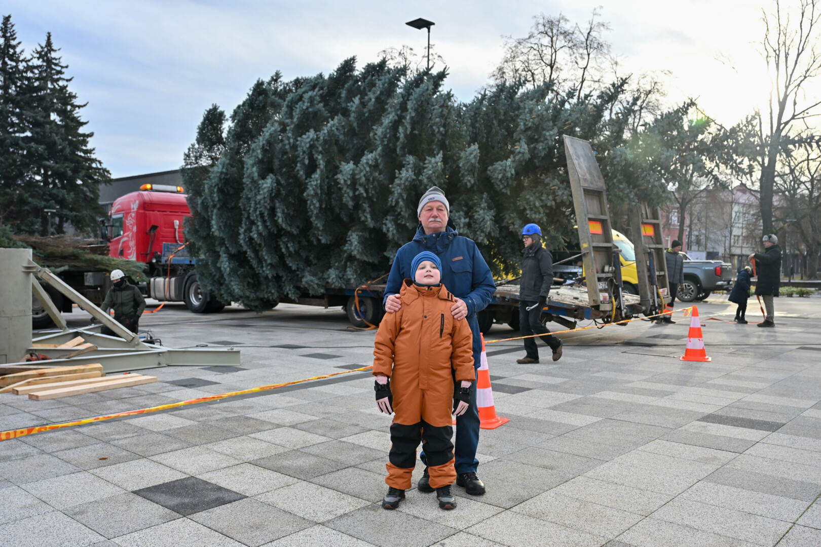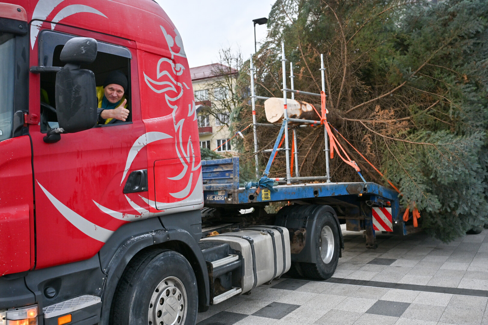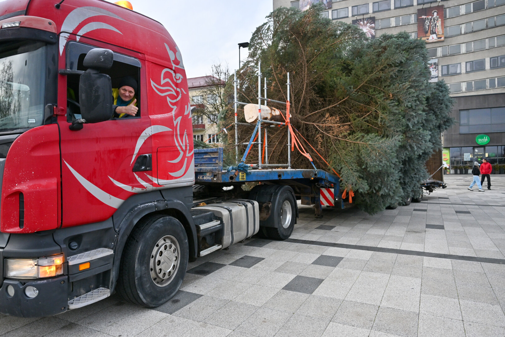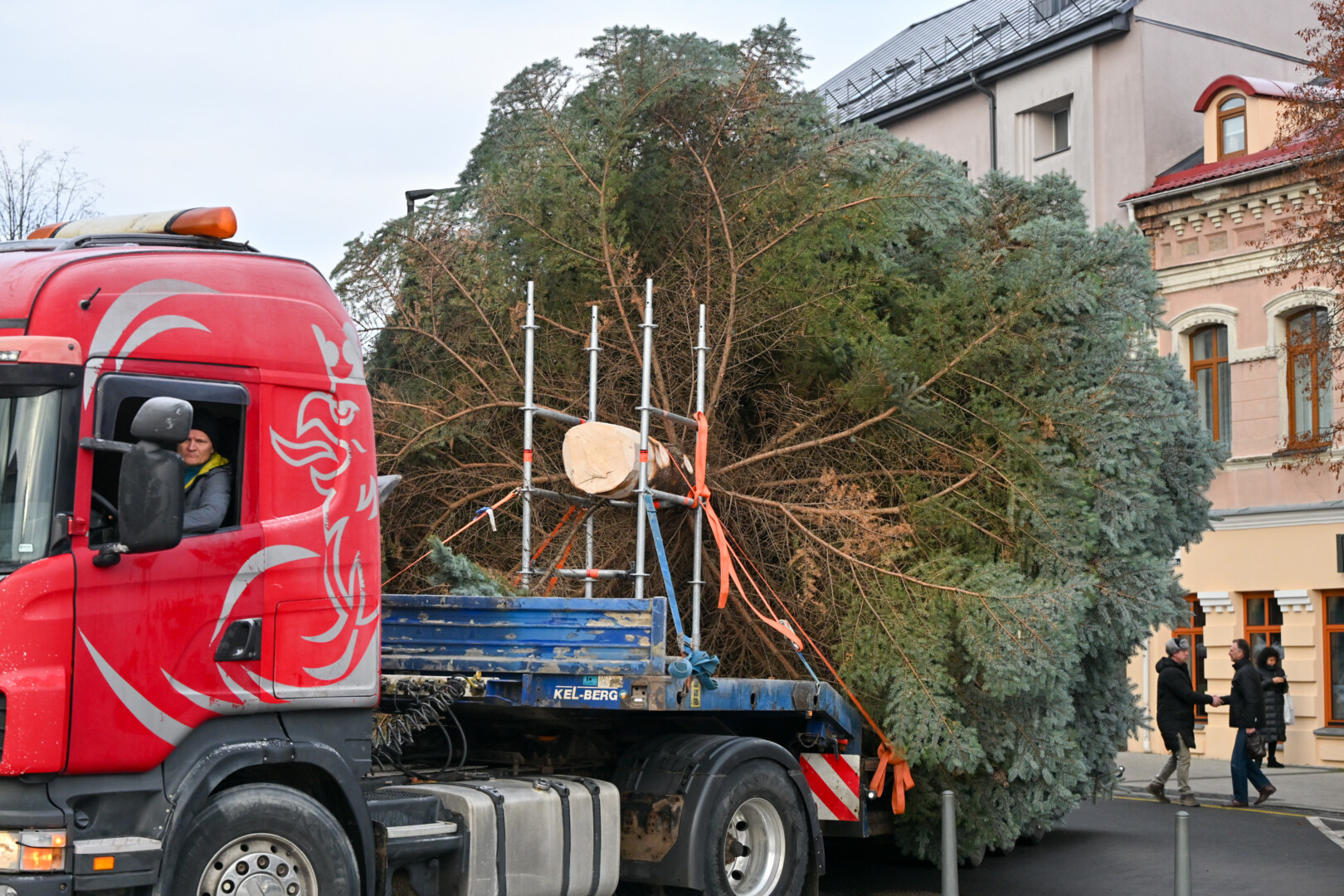 Panevėžyje jau kvepia Kalėdomis. Į Laisvės aikštę sekmadienį išgabenta panevėžiečių šeimos dovanota eglė.
