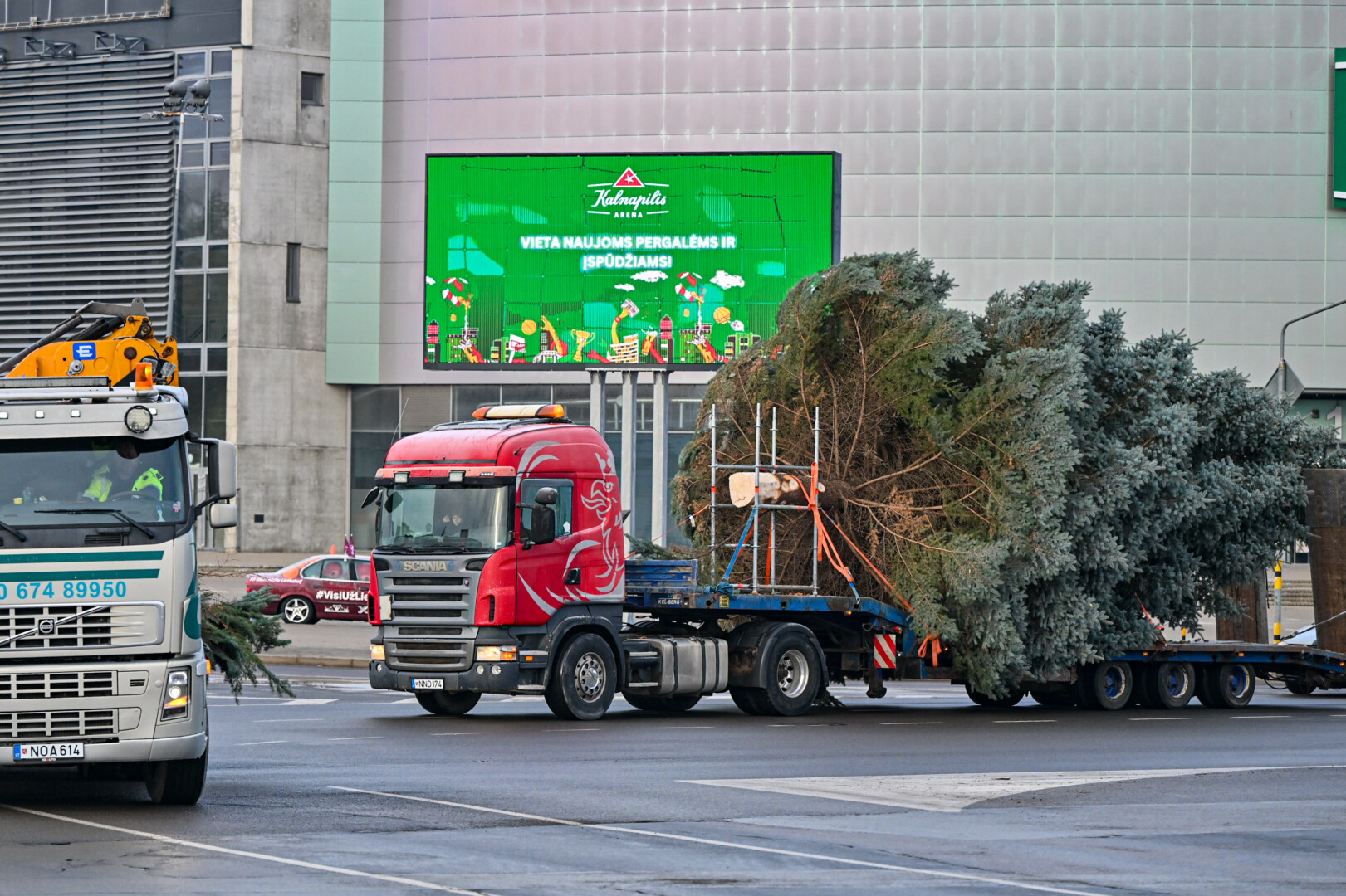 Į Laisvės aikštę išgabenta Kalėdų eglė (nuotraukų galerija)
