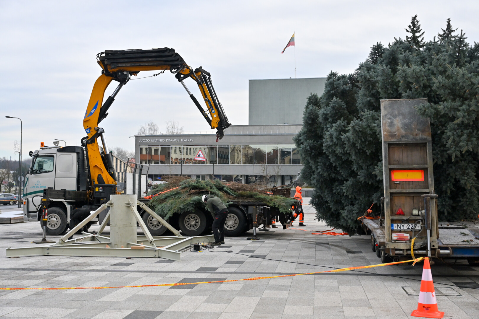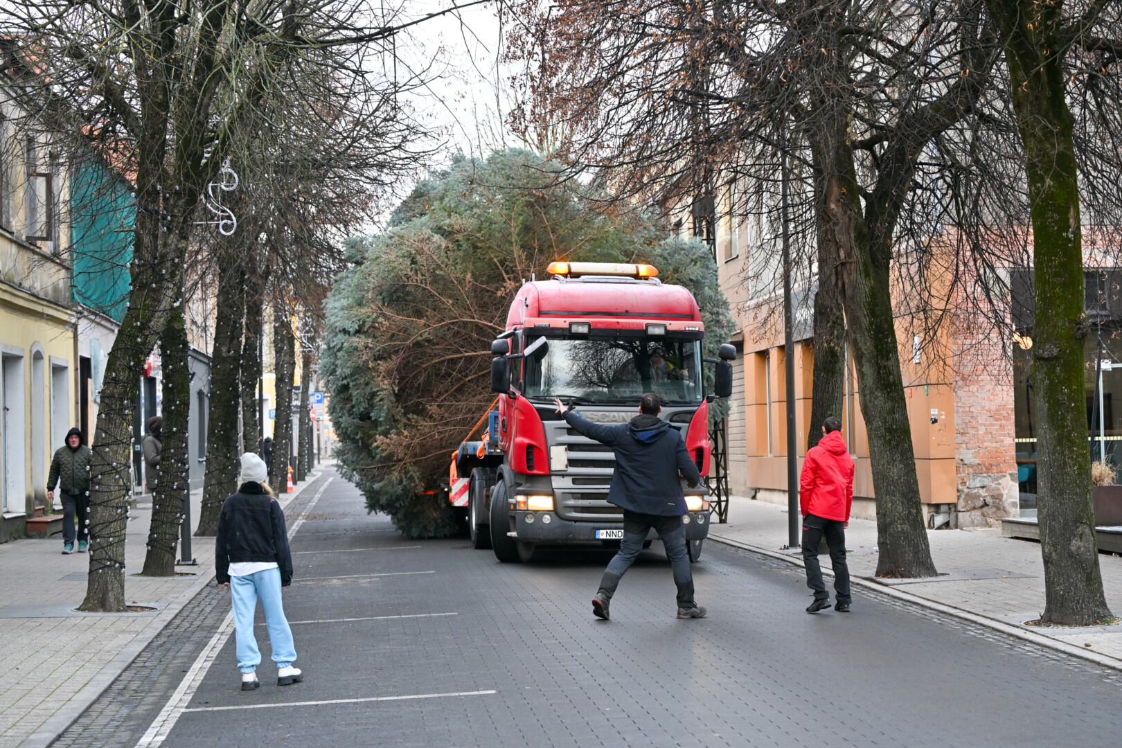 Prie sidabrinės gražuolės netrukus plušės dekoratoriai. O penktadienio vakarą jos įžiebimas paskelbs šventinio laikotarpio pradžią.