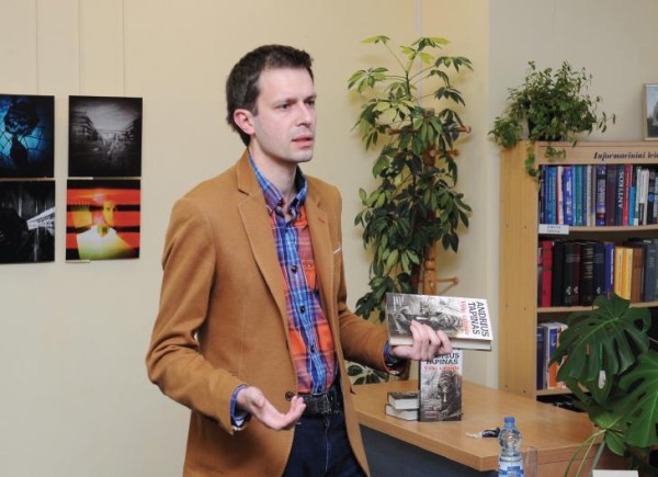 Per susitikimą su panevėžiečiais žurnalistas ir rašytojas A.Tapinas atskleidė, kaip gimė fantastinis romanas „Vilko valanda“ ir kodėl jis toks populiarus. U.Mikaliūno nuotr.