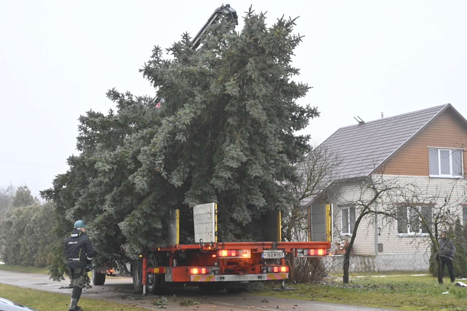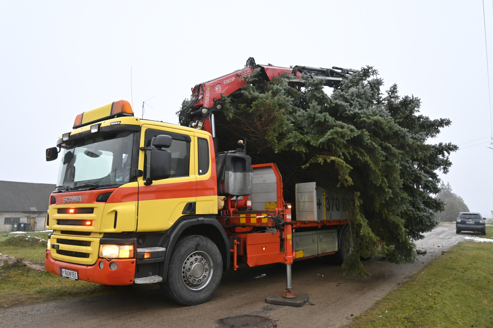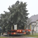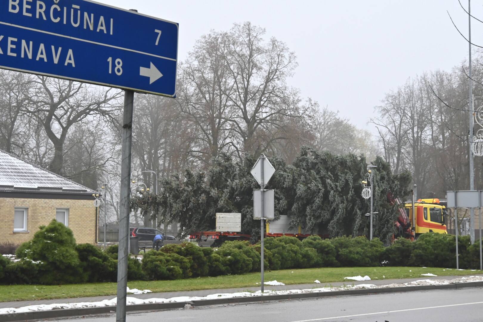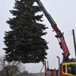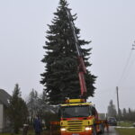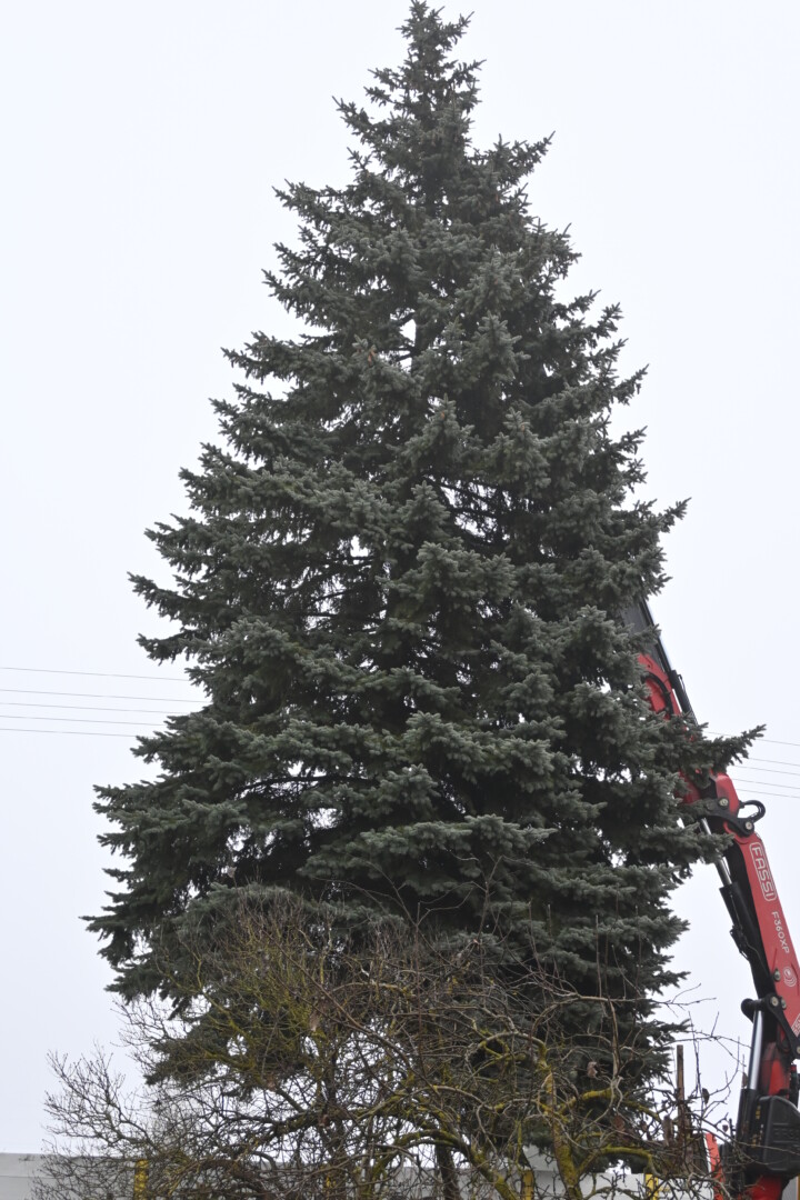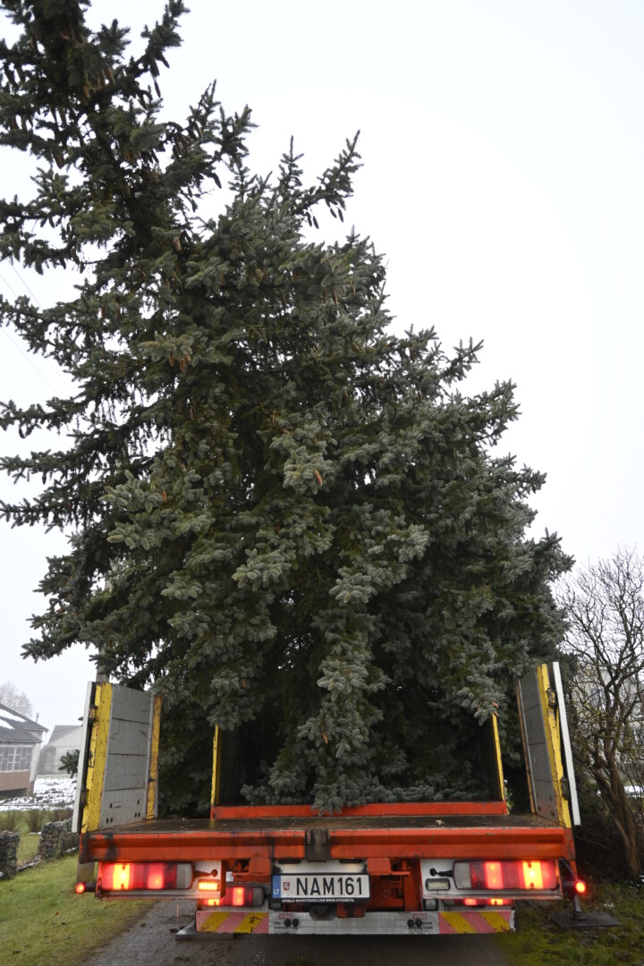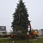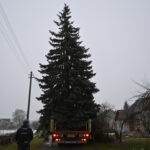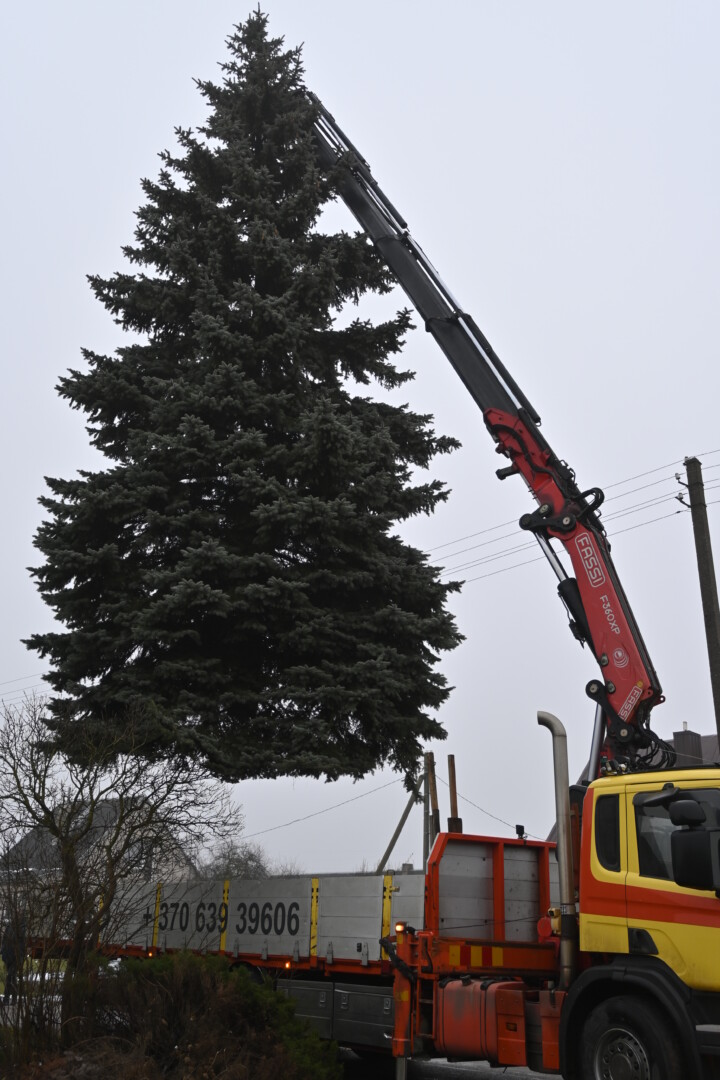 Pagrindinė Panevėžio rajono kalėdinė eglė šįmet nušvis Naujamiestyje. Nors iki jos įžiebimo šventės likę apie porą savaičių, žaliaskarė jau pirmadienį sunkiosios technikos atgabenta į miestelio aikštę.