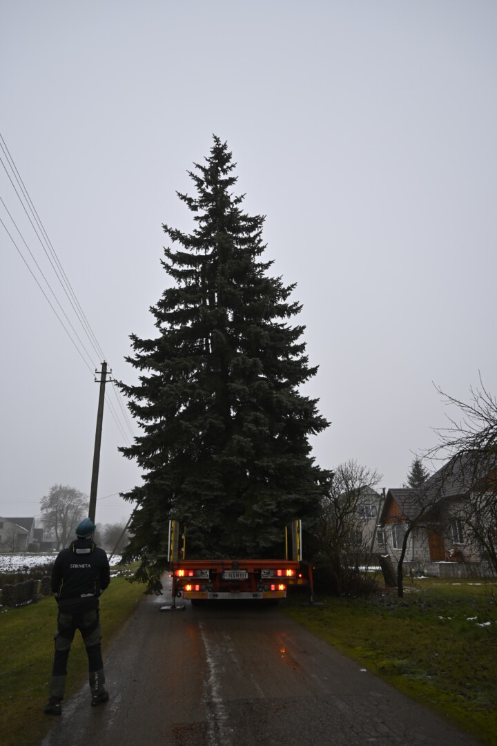 „Keliavome į Naujarodžius apžiūrėti kitos eglės, bet toji netiko. Važiuodami pro šalį pamatėme šią žaliaskarę, užėjome į kiemą ir susitarėme su šeimininku“, – pasakoja seniūnas.