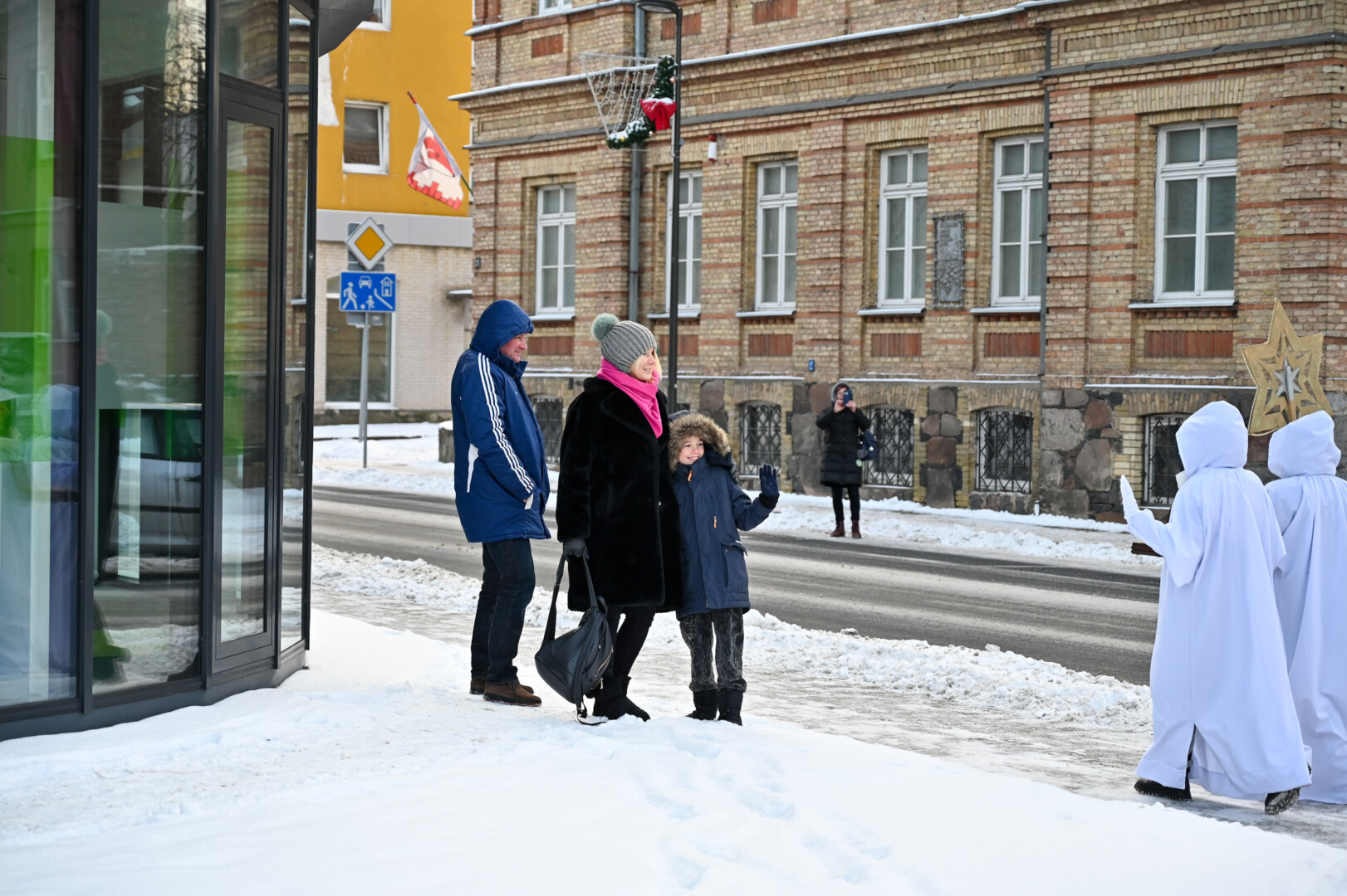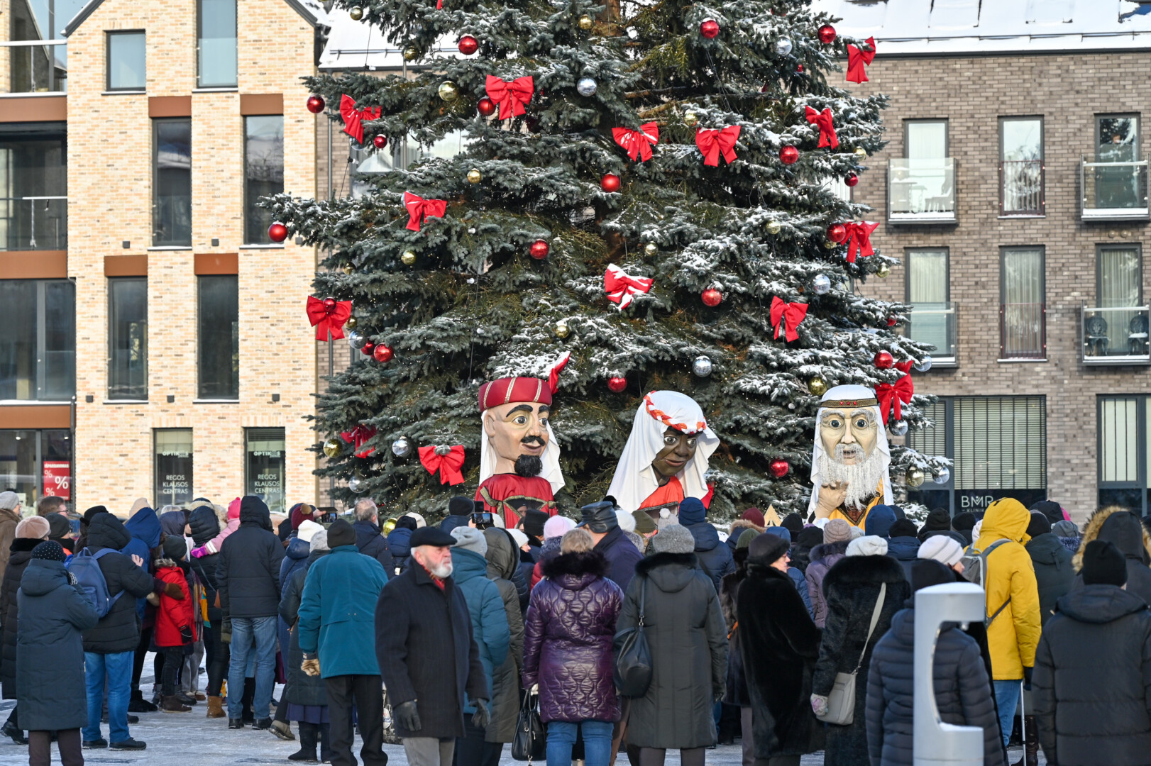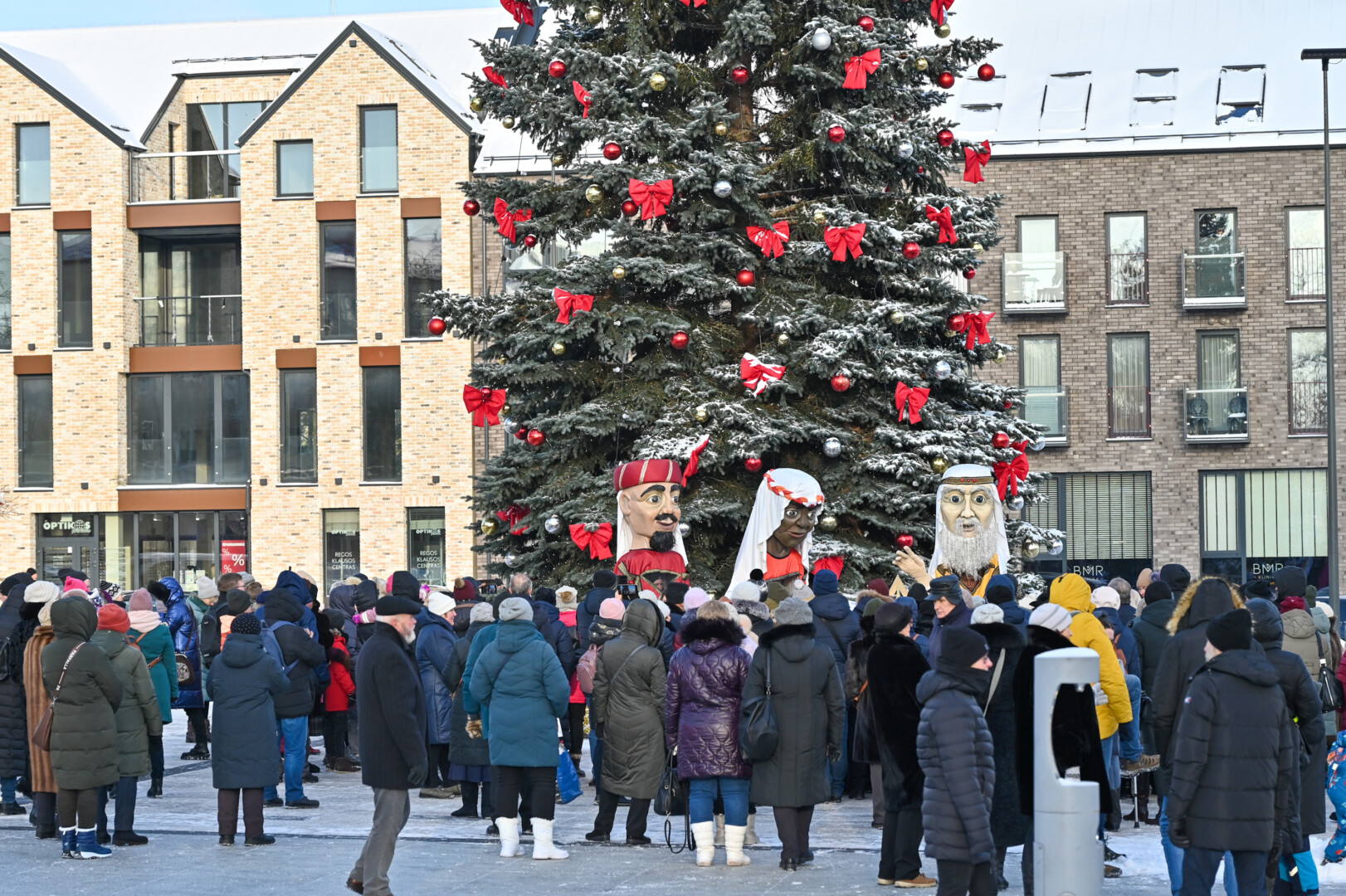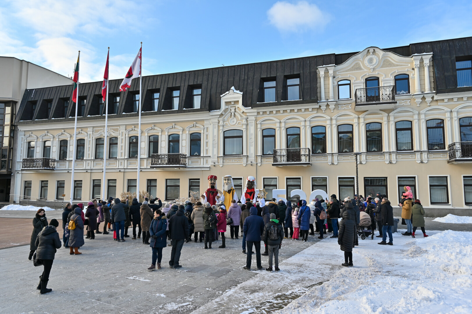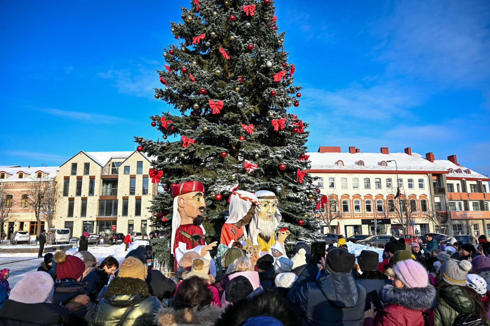 Eisenai pasiekus Kalėdų eglę, šalčio nepabūgę ir Laisvės aikštėje susirinkę panevėžiečiai išgirdo teatralizuotą sveikinimą.
