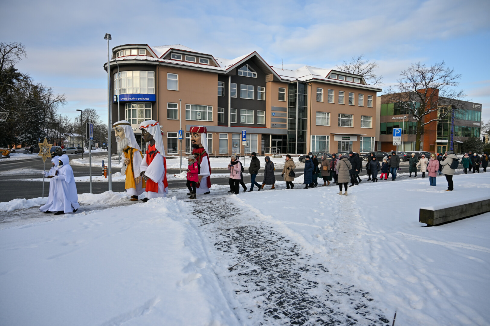 Puspenkto metro aukščio Trims Karaliams – Kasparui, Merkeliui (Melchiorui) ir Baltazarui – žingsniuojant P. Puzino, Respublikos, Vasario 16-osios, Elektros gatvėmis, prie jų galėjo prisijungti visi norintieji.