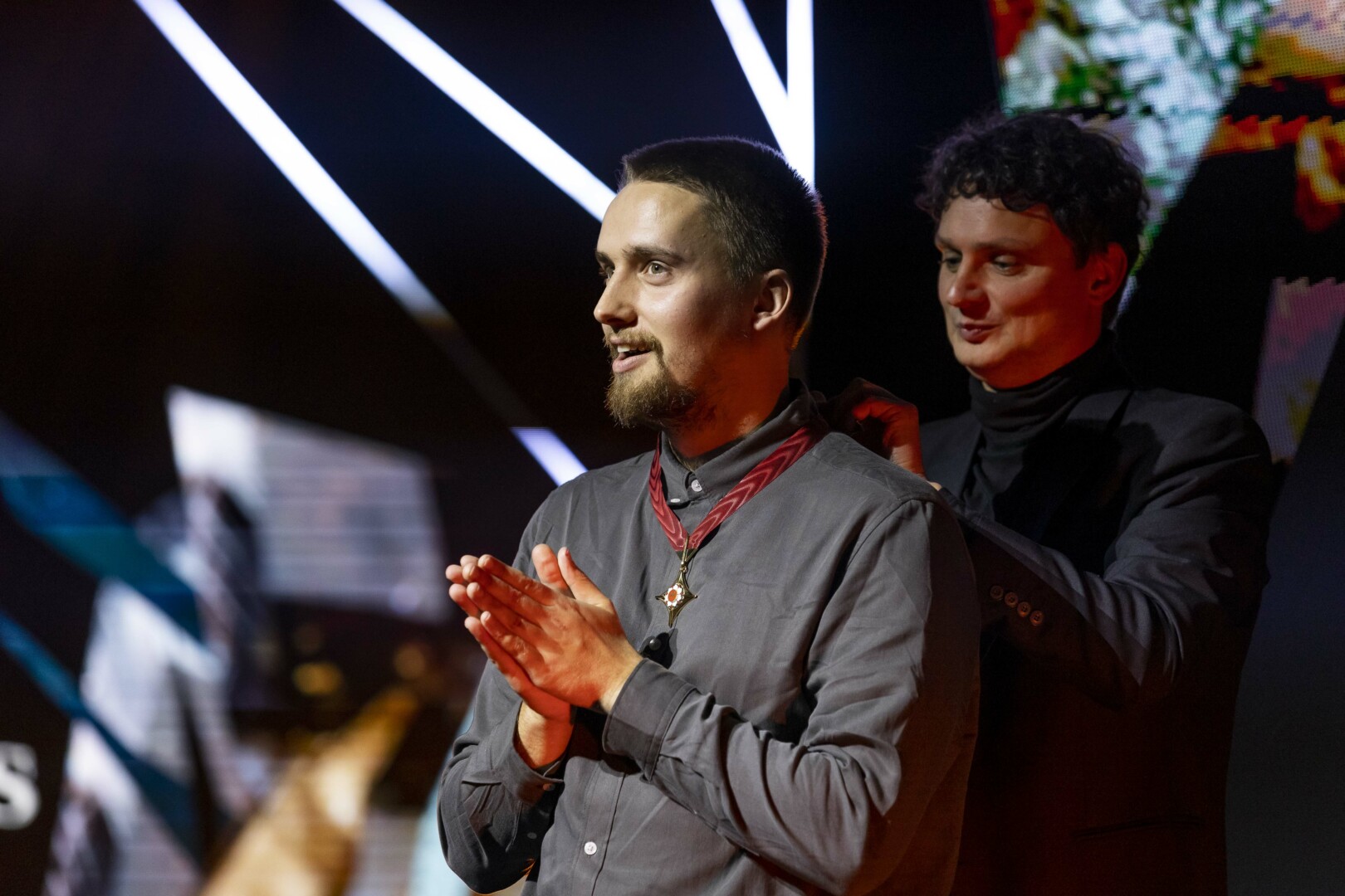 Sveikindamas teatralų bendruomenę, kultūros ministras Simonas Kairys teigė, kad kurti, veikti, nepasiduoti šiandien yra svarbiau nei bet kada anksčiau.