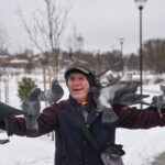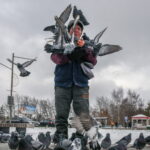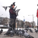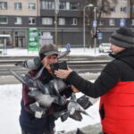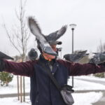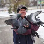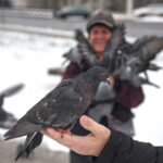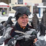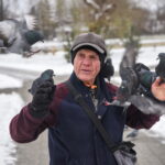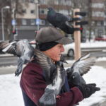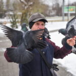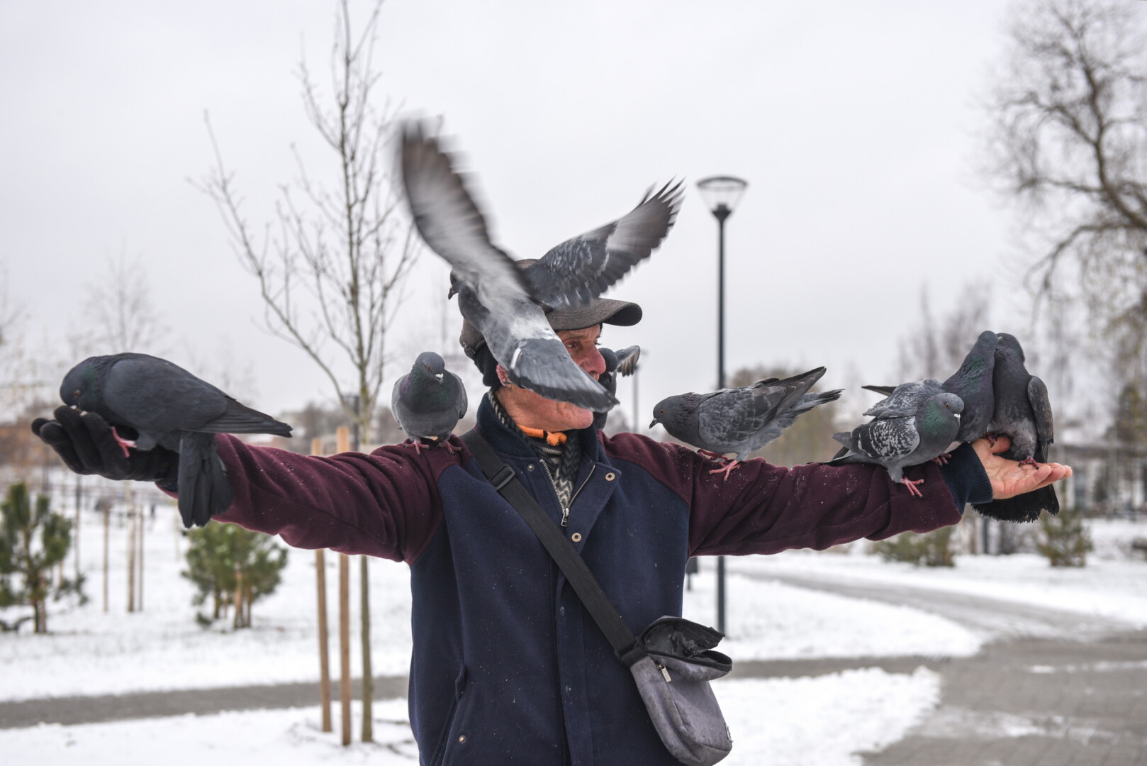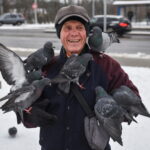 Tarsi filmo „Vienas namuose“ heroję panevėžietį sparnuočiai apjuosia ratu, įsitaiso jam ant kepurės ar nutūpia tiesiai į delnus.