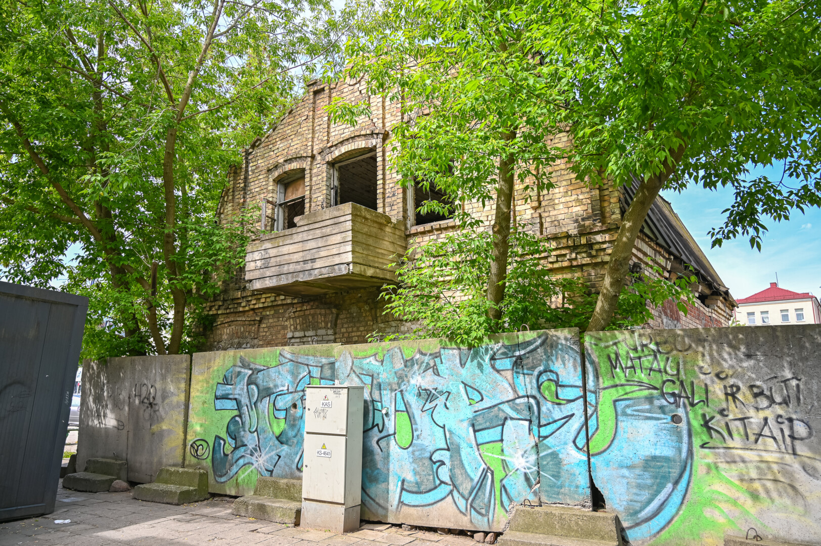 Numatytoje tvarkyti miesto dalyje yra skaudulys – senosios stoties pašonėje stūksantis privatus begriūvantis geltonplytis pastatas.
