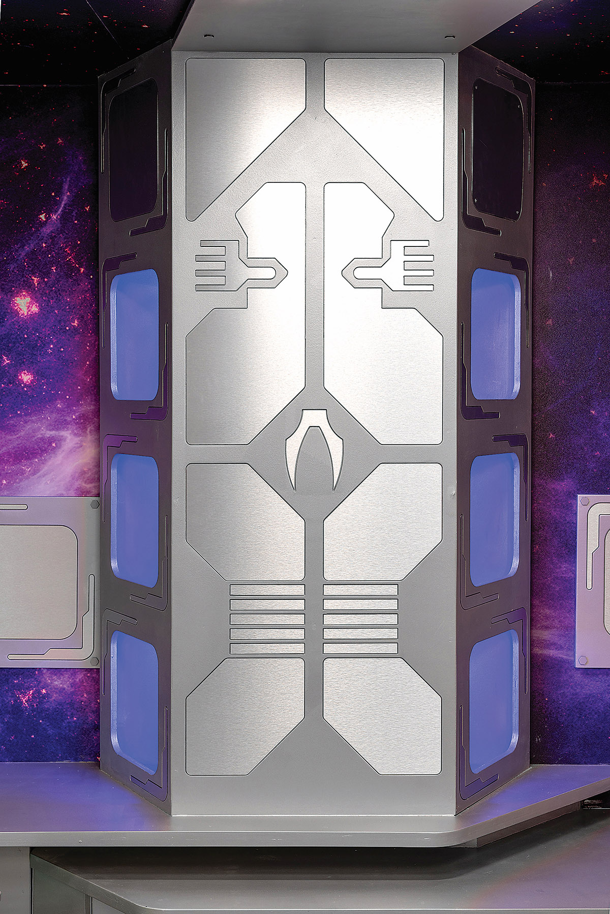 Kruopčiai apgalvoti ir konkrečiam žaidimui pritaikyti elementai – kiekvienoje kabinoje įrengti keturi ekranai, valdymo mygtukai staluose ir kėdėse, gausybė elektronikos, pagal eskizus ir skirtingą kabinų tematiką pagamintos metalinės kėdės.