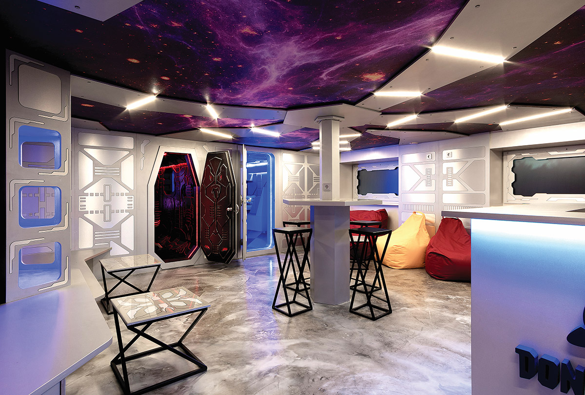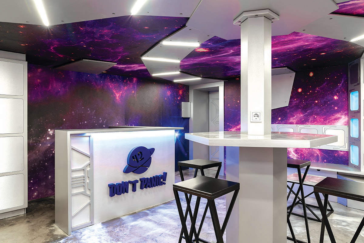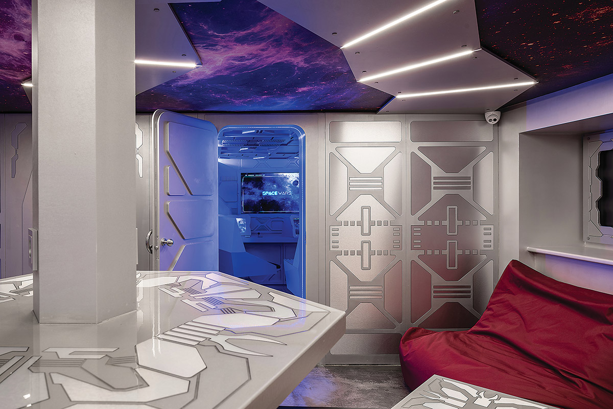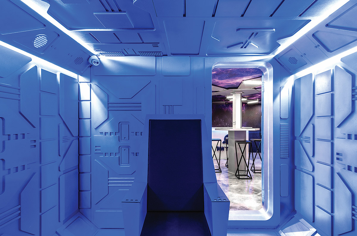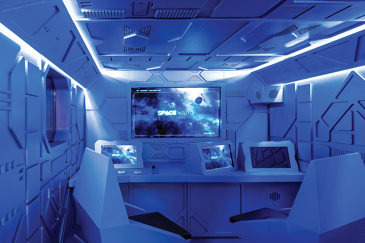 Interjero dizaineriui pravartu išmanyti ne tik profesinius, bet ir daug platesnius klausimus. Pavyzdžiui, apie kosminę erdvę. Tokių žinių prireikė interjero studijai „Rimartus“, gavusiai užduotį įrengti interaktyvių komandinių žaidimų erdvę Žemės gyventojų ir ateivių mūšiams.