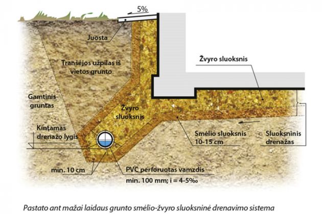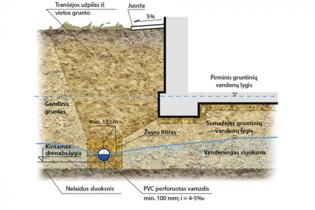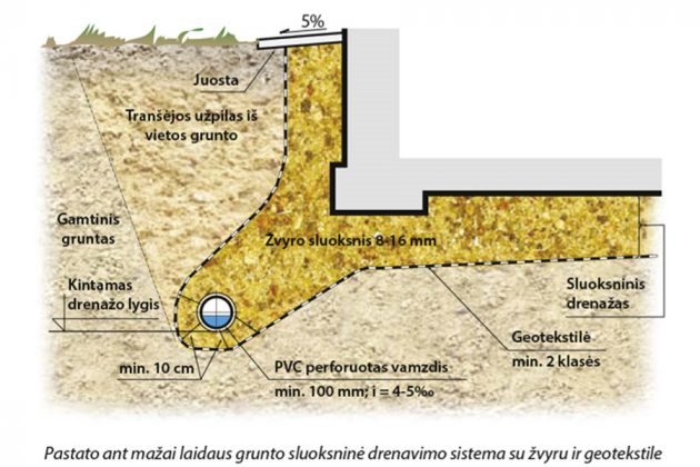 - suplanuoti ir nusibraižyti sklypo plane, kuriose vietose bus užklota drenažo sistema;
