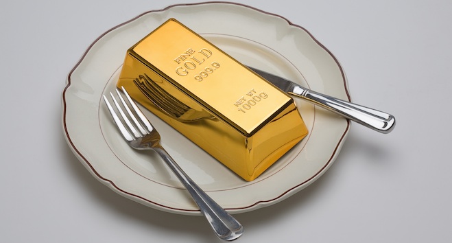 Įdomu, kad nors auksas – metalas, jis yra valgomas. Kai kuriose Azijos šalyse jo pridėdavo į vaisius, želė desertus, kavą ir arbatą. Nuo 1500-ųjų metų aukso grūdelius pradėjo pilti į butelius su stipriaisiais gėrimais (pvz., „Goldshlanger“, „Danziger Goldwasser“). Kai kurios indų gentys tikėjo, kad aukso naudojimas su maistu suteikia levitacijos galių.
