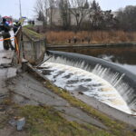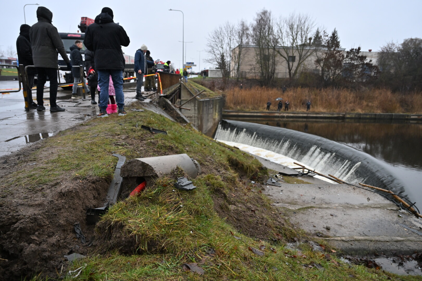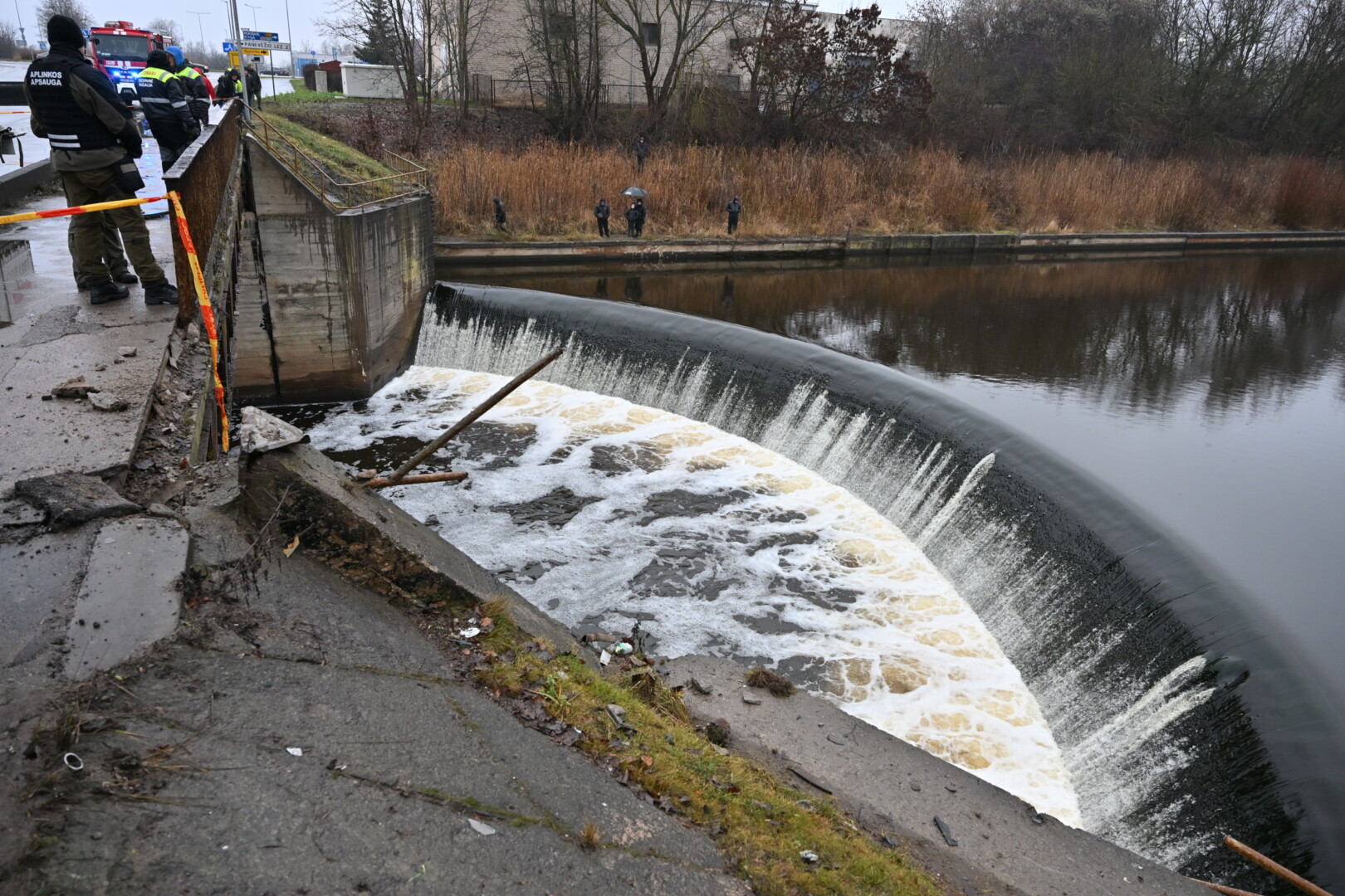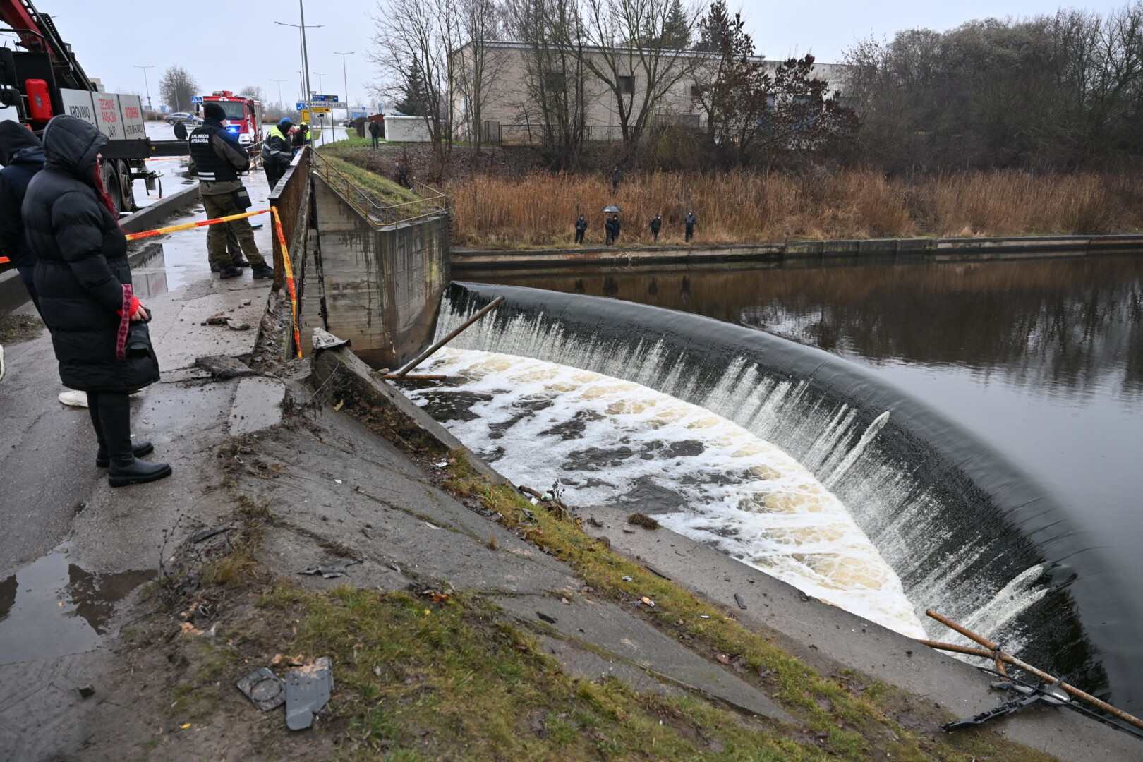 „Kol kas automobilio dėl stiprios upės tėkmės ištraukti neįmanoma. Užtvanka uždaryta aukščiau upės tam, kad būtų sulėtinta upės tėkmė ir vandens lygis“, – teigė tarnybos atstovas.