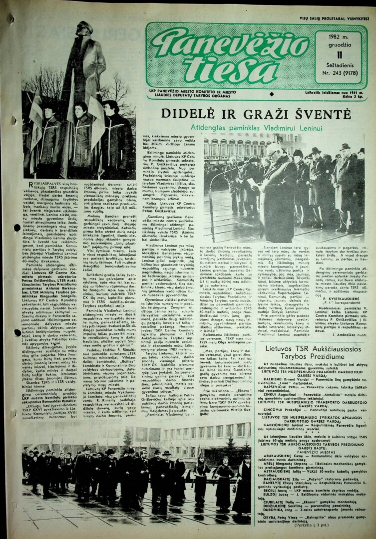 Tų metų „Panevėžio tiesoje“ šiam įvykiui skirtas visas puslapis.