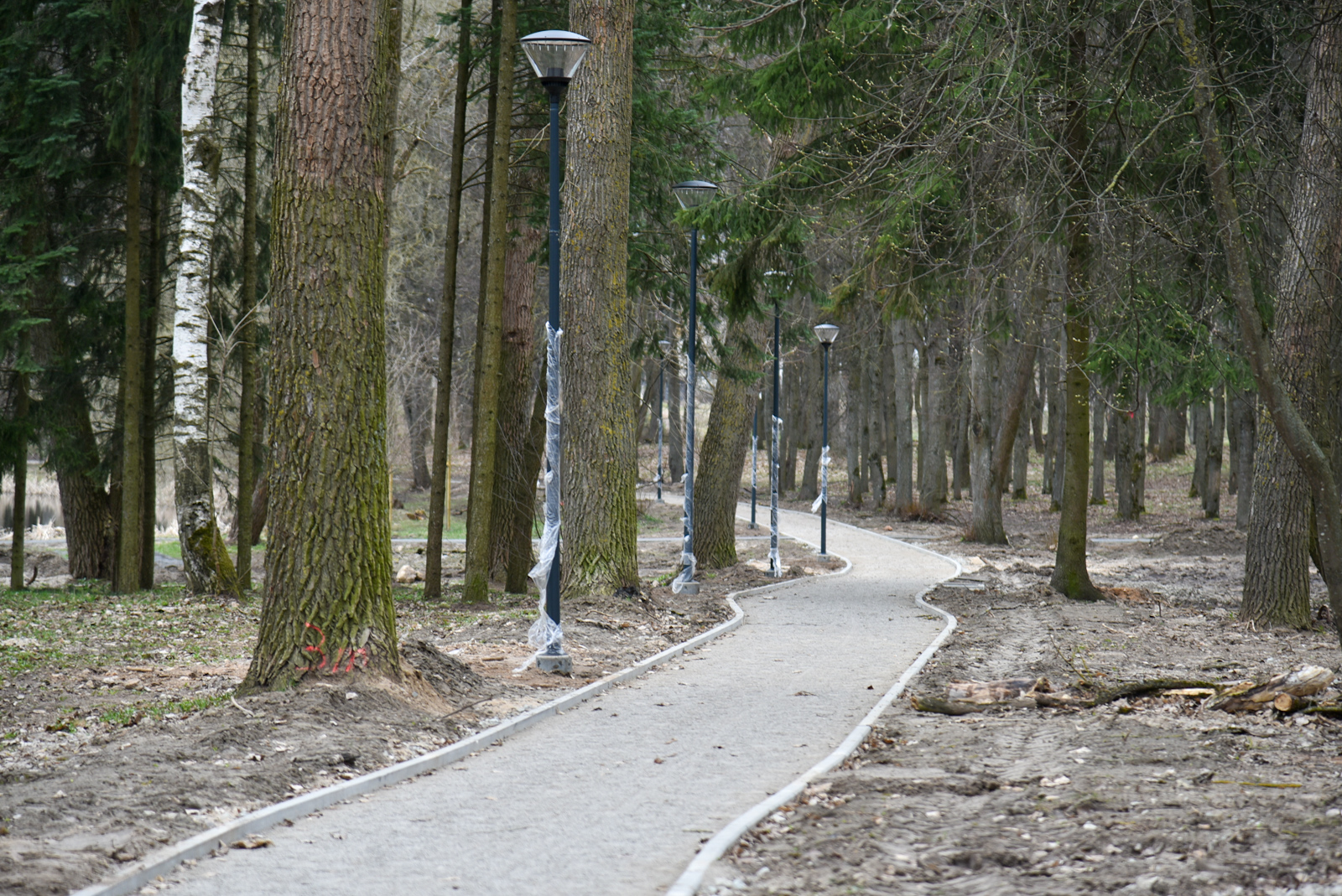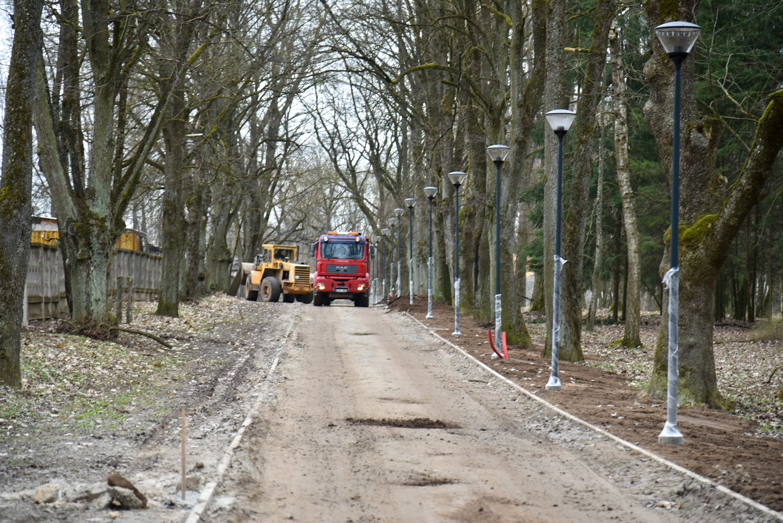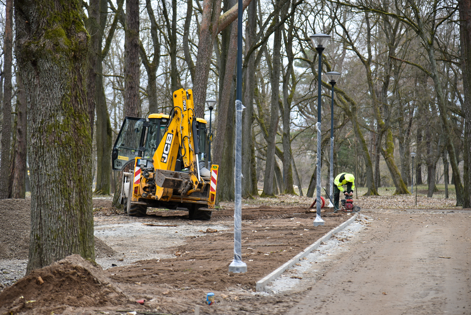 Pasibaigus žiemos sezonui prasidėjo intensyvūs darbai atnaujinamame Skaistakalnio parke.