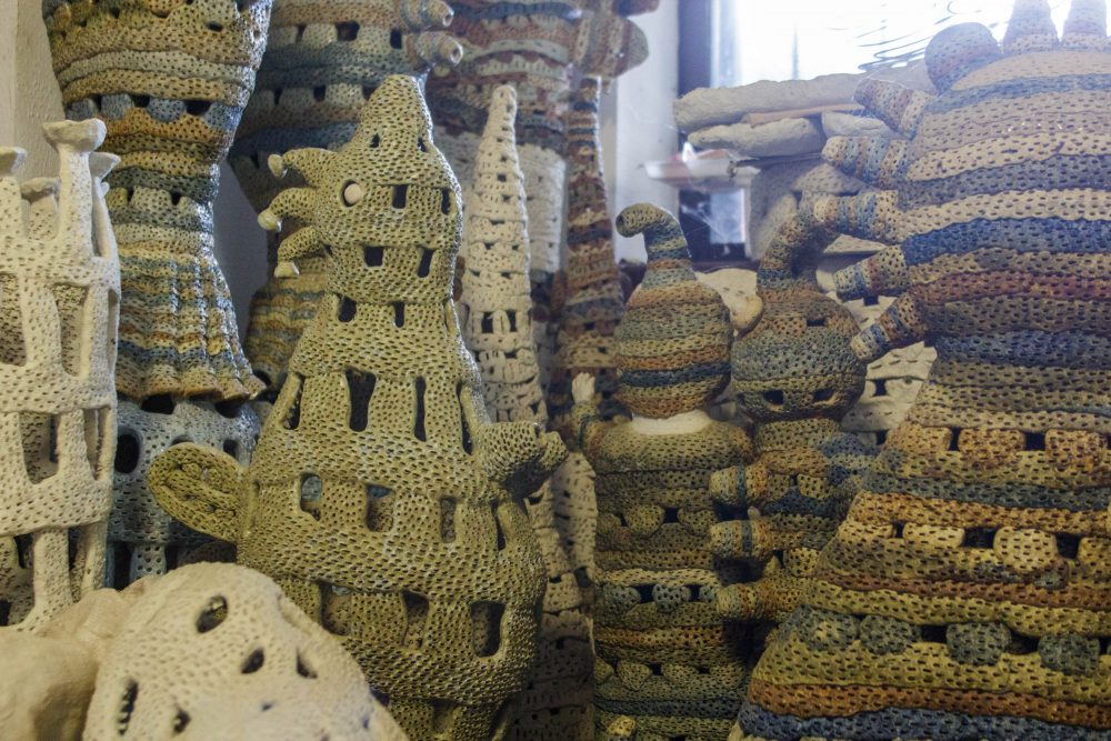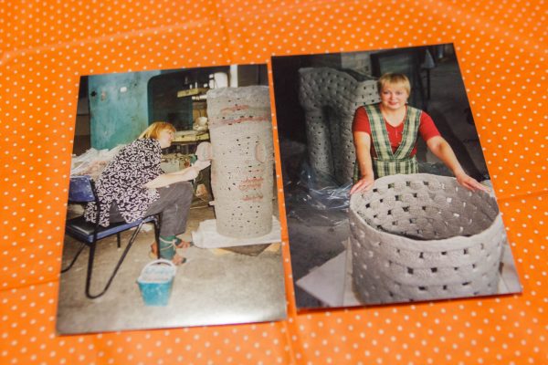 Tie ypatingieji darbai lengvai negimsta. Gal tik kūrinio dugnui skirtą molio gabalą menininkė kočėlu iškočioja – visa kita daroma tik rankomis. Ištisas dienas delnai gludina, minko, suka, volioja, lygina šlapią molį, deda, lipdo detales vieną prie kitos, dailina. O kiek kartų vėl ir vėl viskas iš naujo – kol pasiekiamas trokštamas rezultatas.