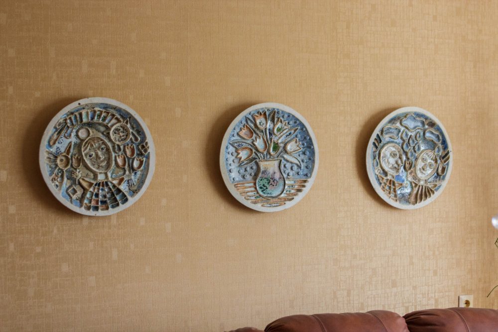 Nuolat kuriančios menininkės skulptūros išsibarsčiusios ne tik prie namų ir sode. Keramika alsuoja visas N. Čiukšienės būstas: šeimininkės rankų paliesto molio kompozicijos puošia sienas, grindis, kitus paviršius.