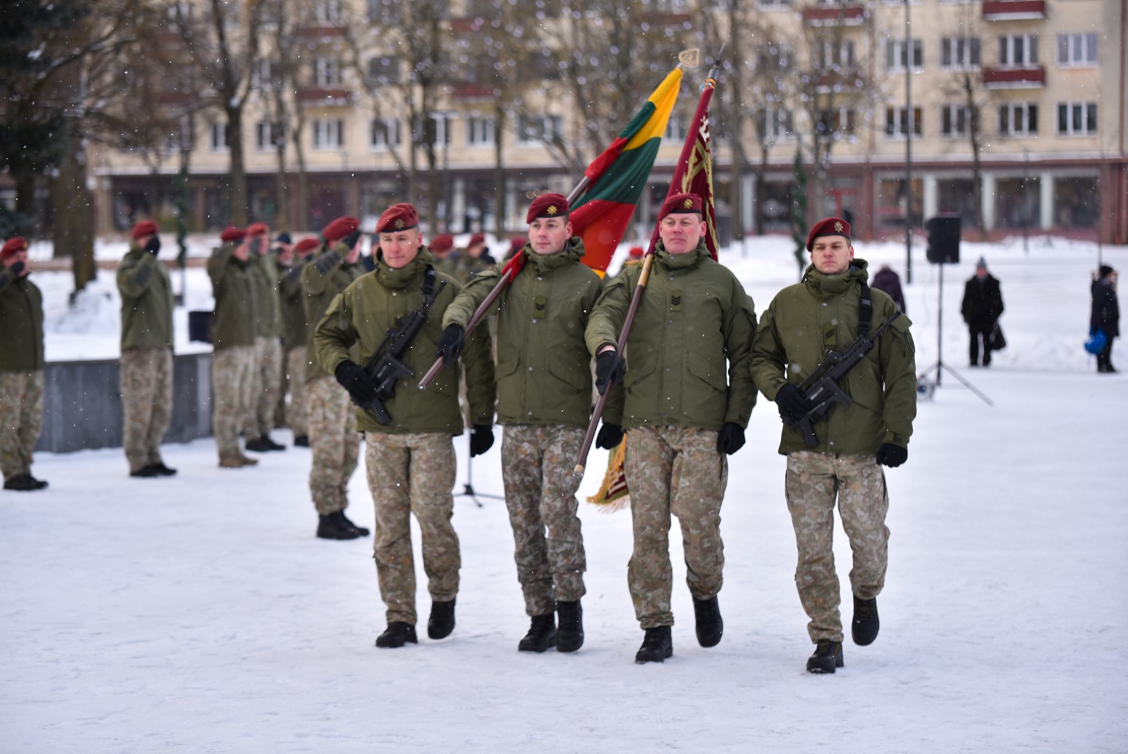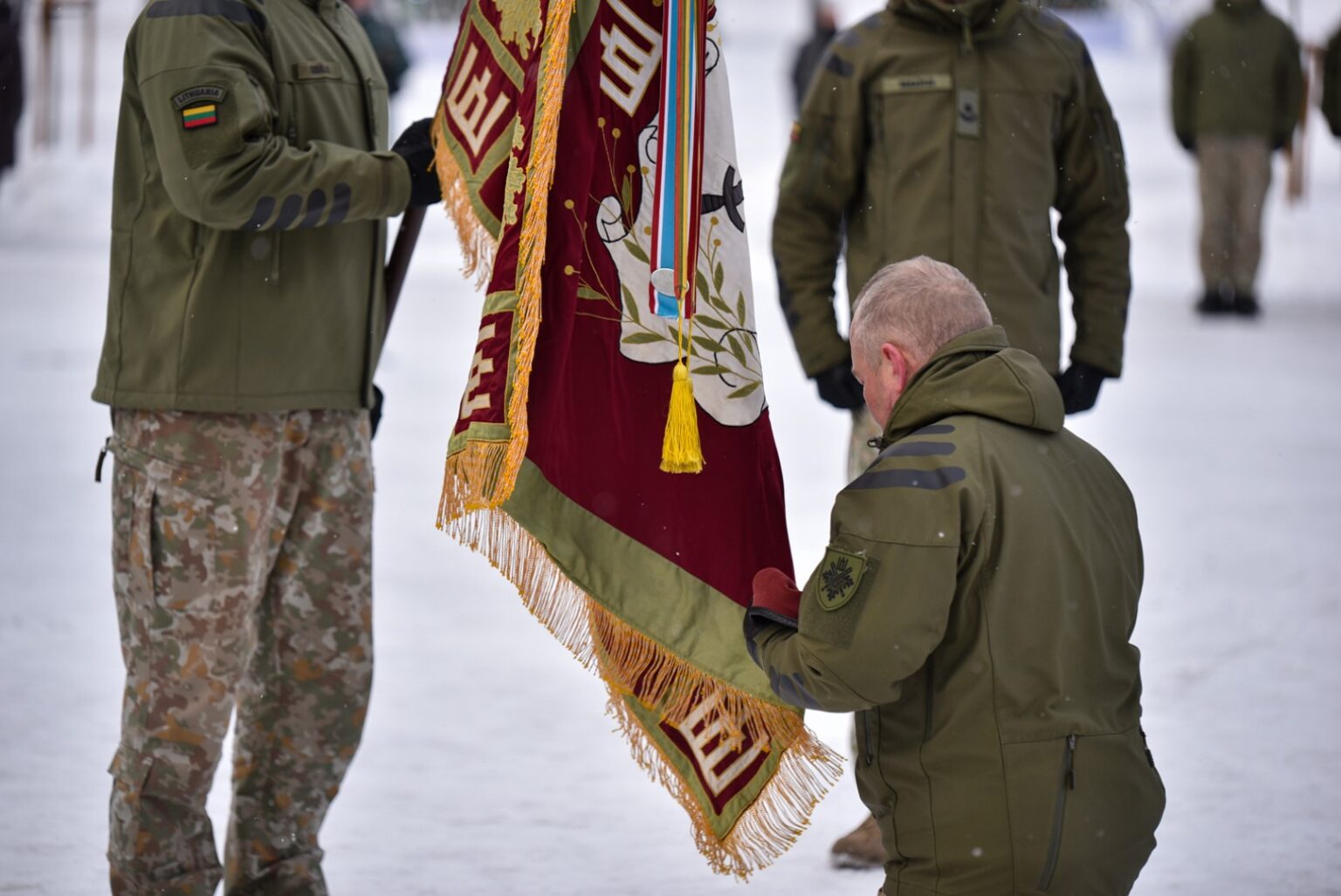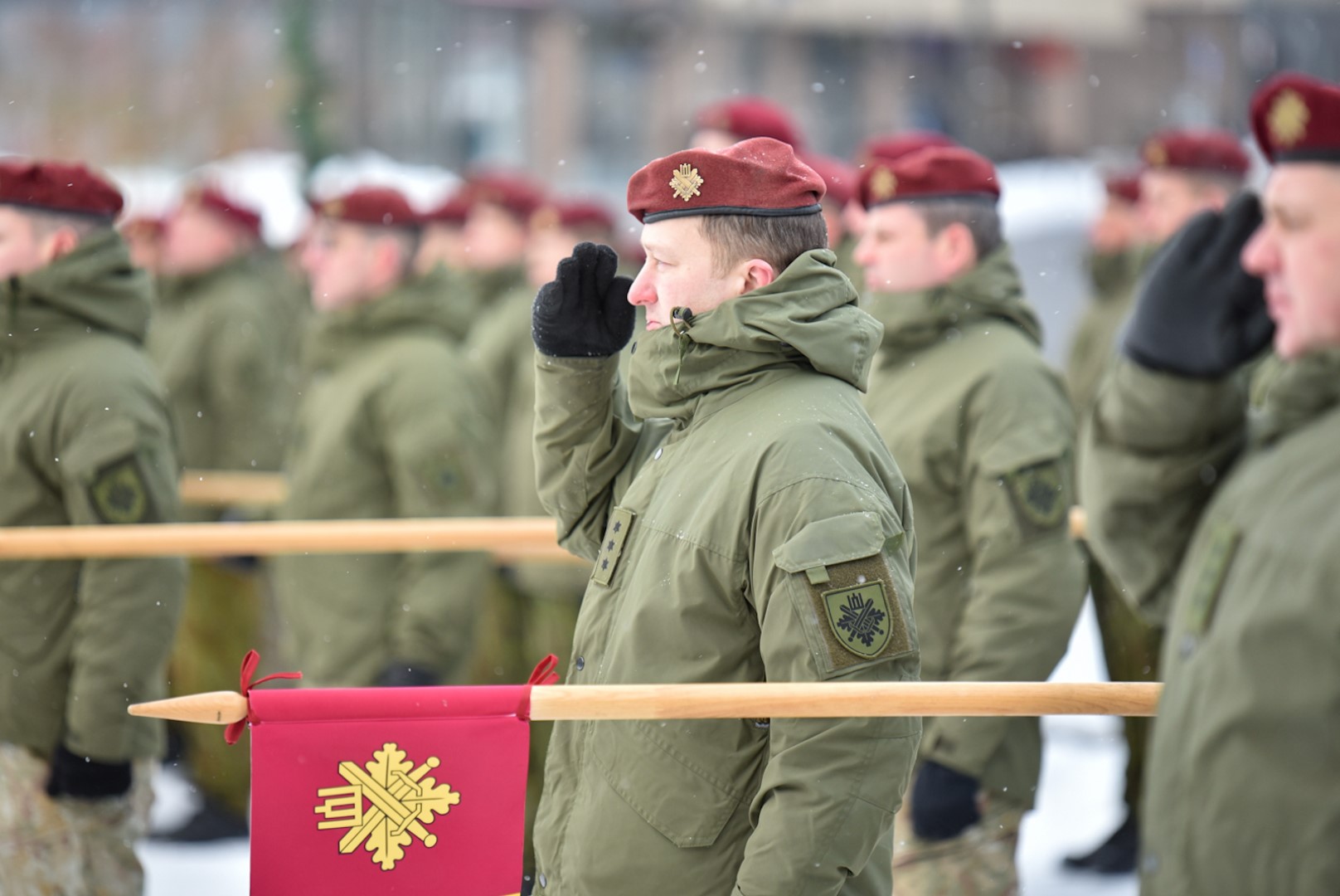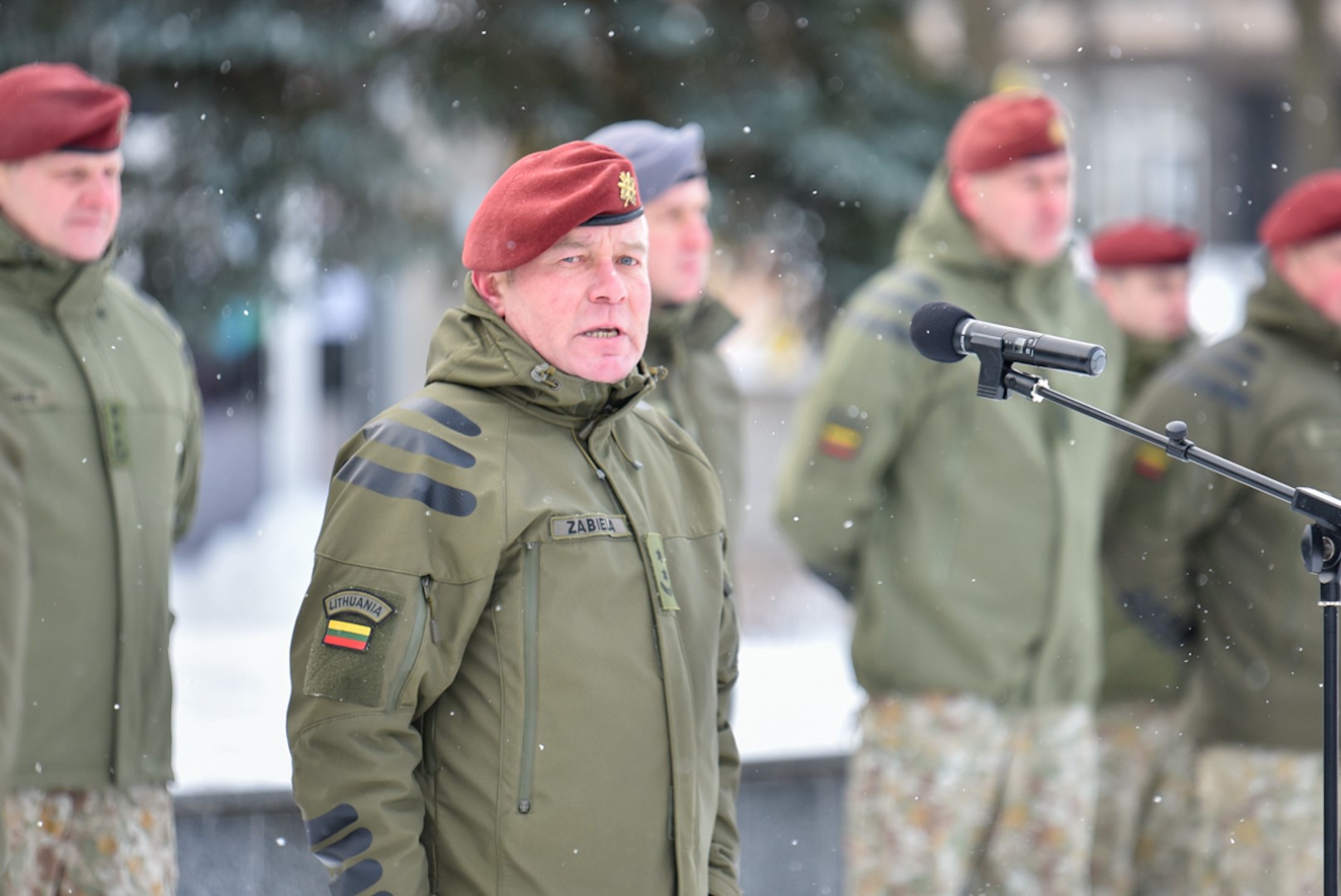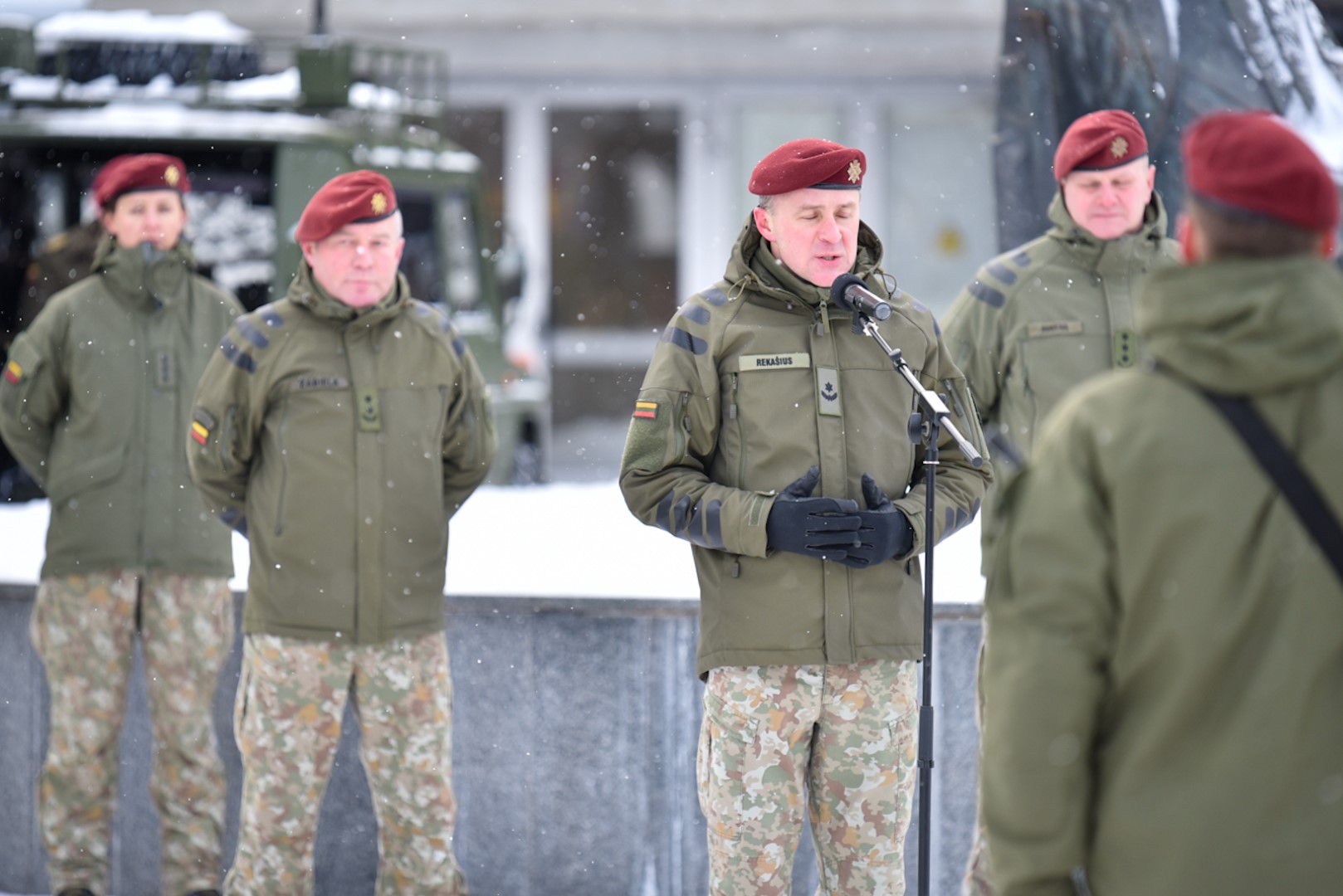 Krašto apsaugos savanorių pajėgų Vyčio apygardos 5-osios rinktinės vadas plk. ltn. Vidas Zabiela iškilmingai atsisveikino su Rinktinės kariais bei perdavė vėliavą naujai paskirtam rinktinės vadui mjr. Mindaugui Rekašiui.