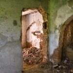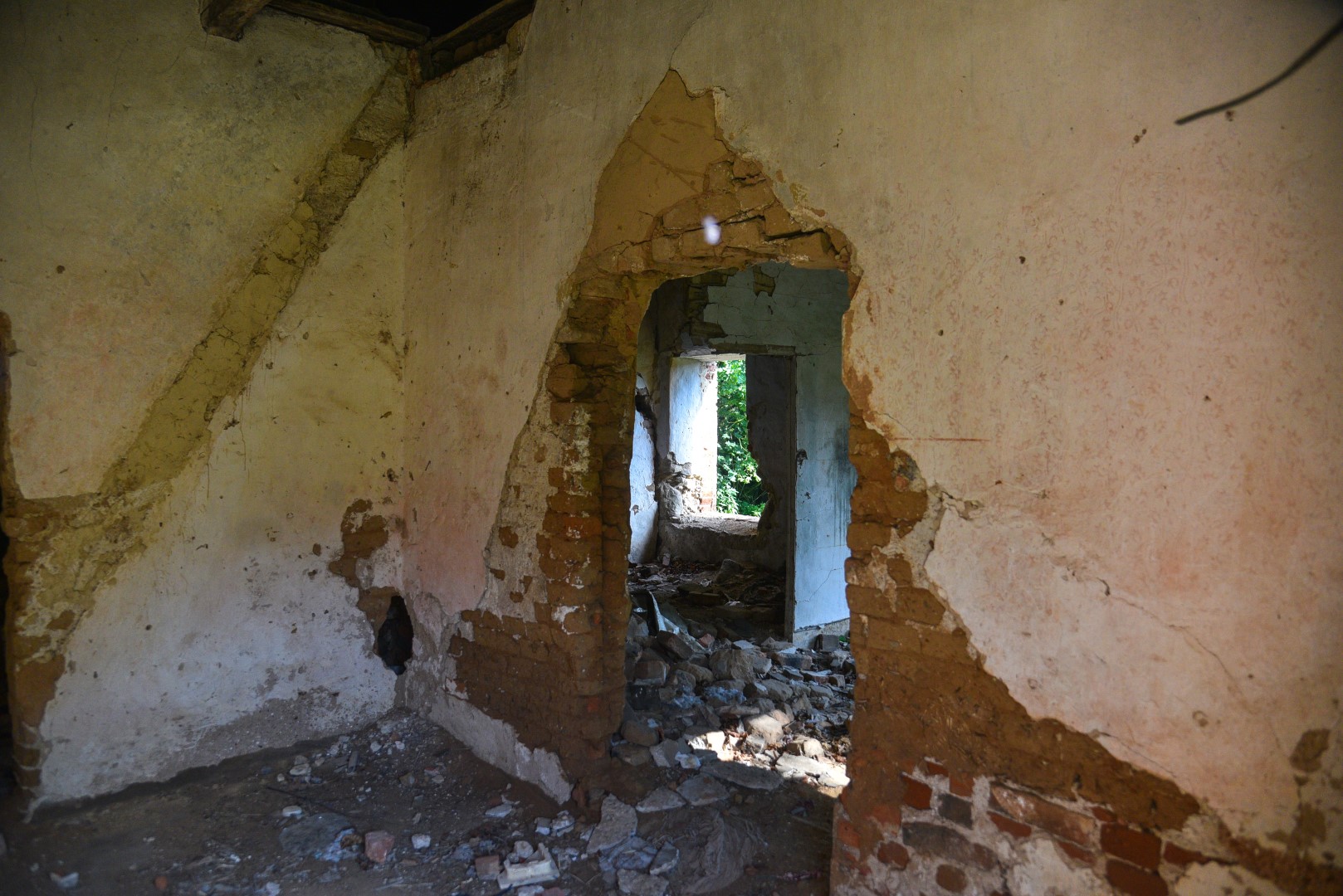 Pažvelgus pro išdaužytus langus, matyti ir viduje buvusių kolonų liekanos.