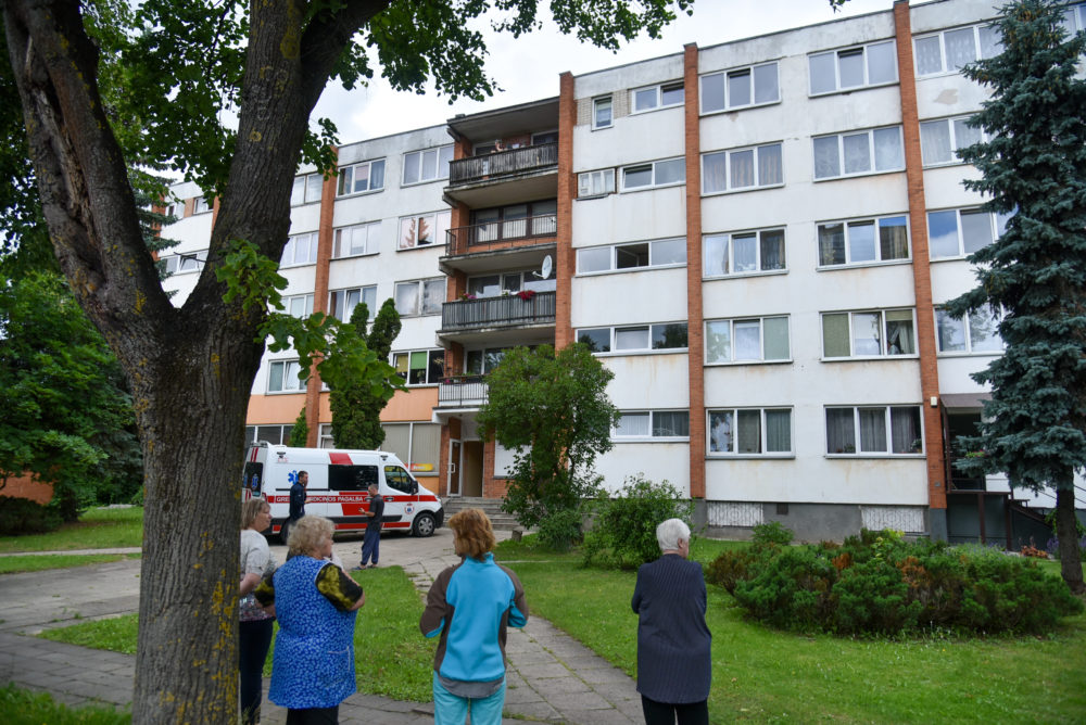 „Išsigandusi apžiūrėjau visą butą – nieko neradau. Žvilgtelėjusi lauk pamačiau, kad iš priešais esančio daugiabučio pro langą trečiame aukšte veržiasi dūmai. Puoliau skambinti ugniagesiams“, – pasakojo įvykio liudininkė.
