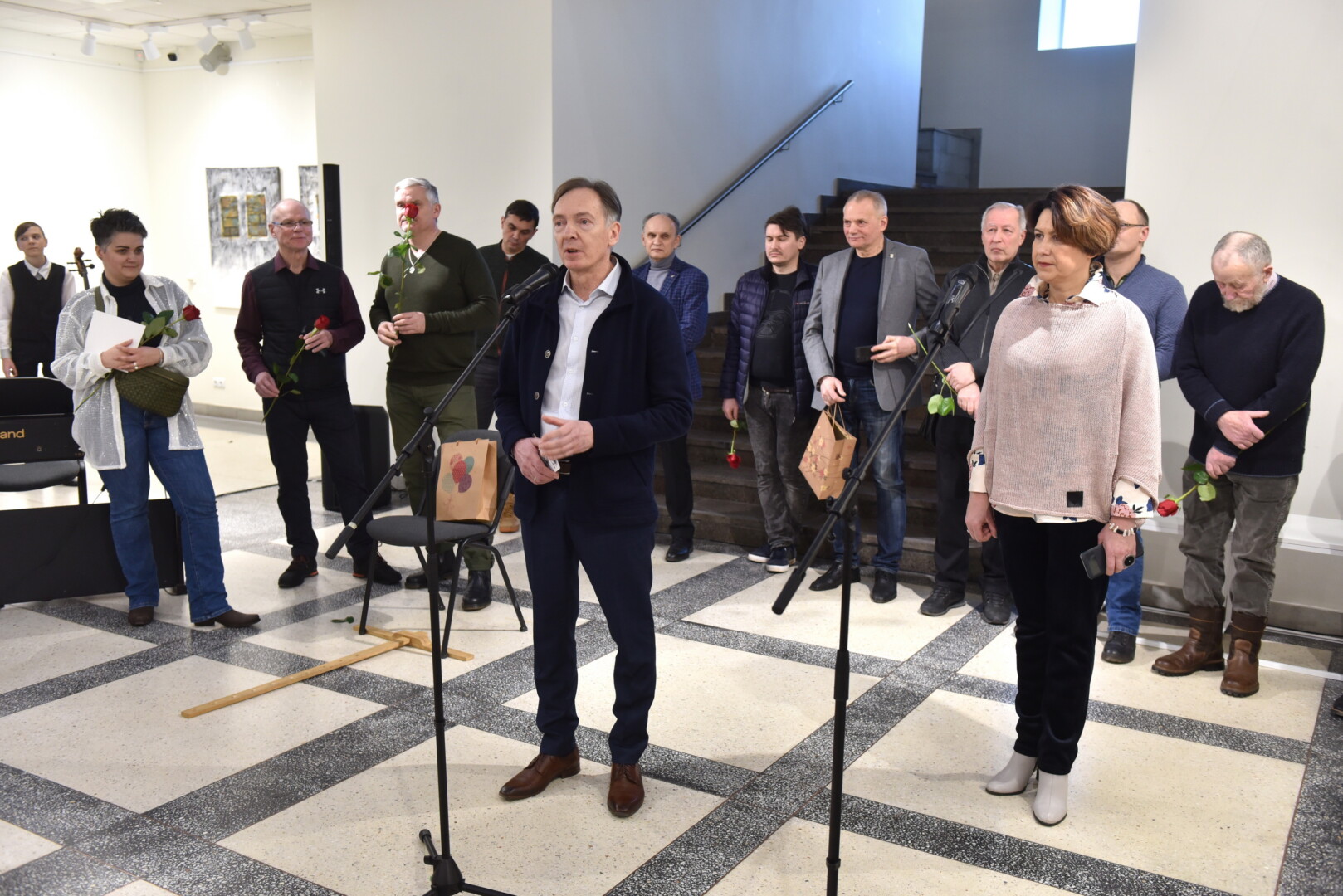 „Menininkų porų sukurti darbai – kaip spektaklis, kai nematome repeticijų, bet žiūrime į režisieriaus ir aktoriaus bendro darbo rezultatą. Taip ir čia – už kiekvieno parodos darbo tarsi uždanga stovi labai turtinga istorija“, – sako A. Vološkevičius.