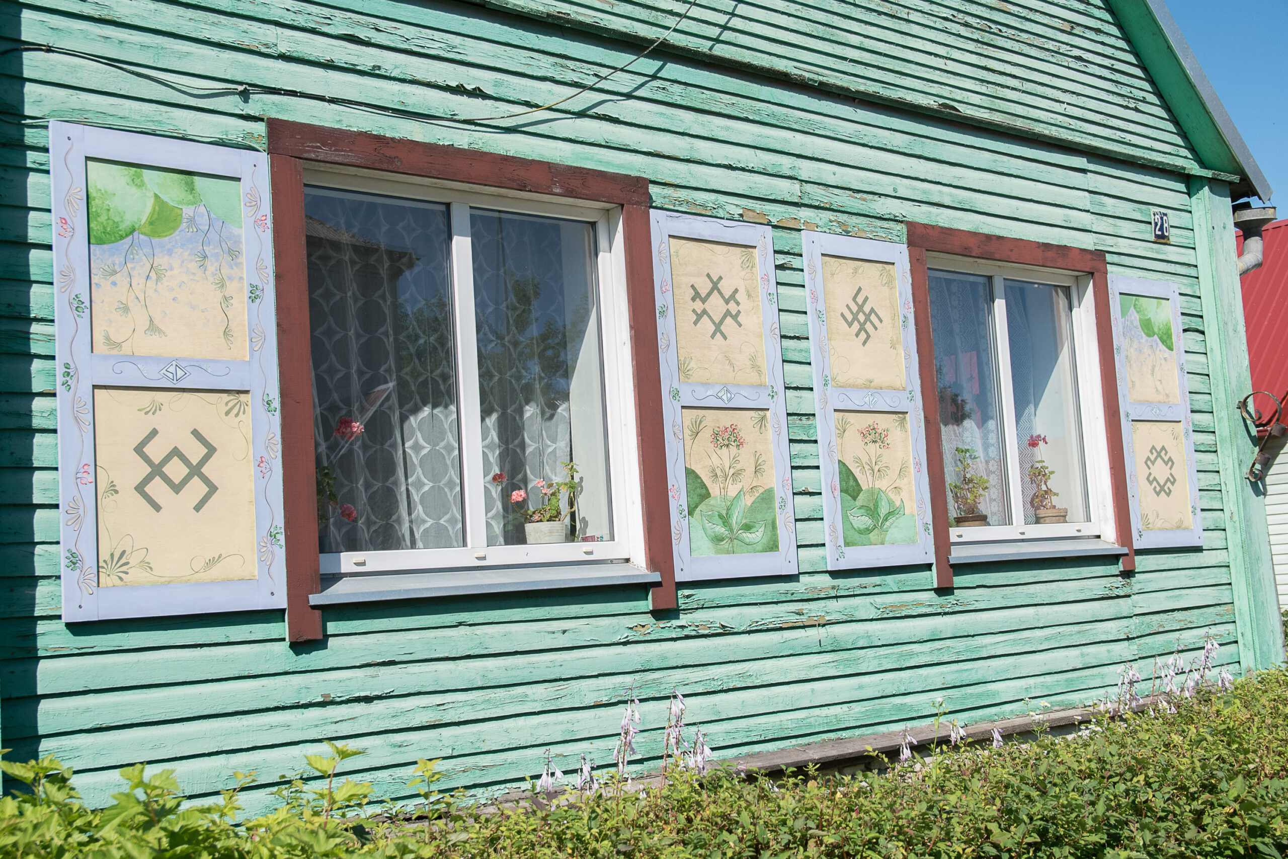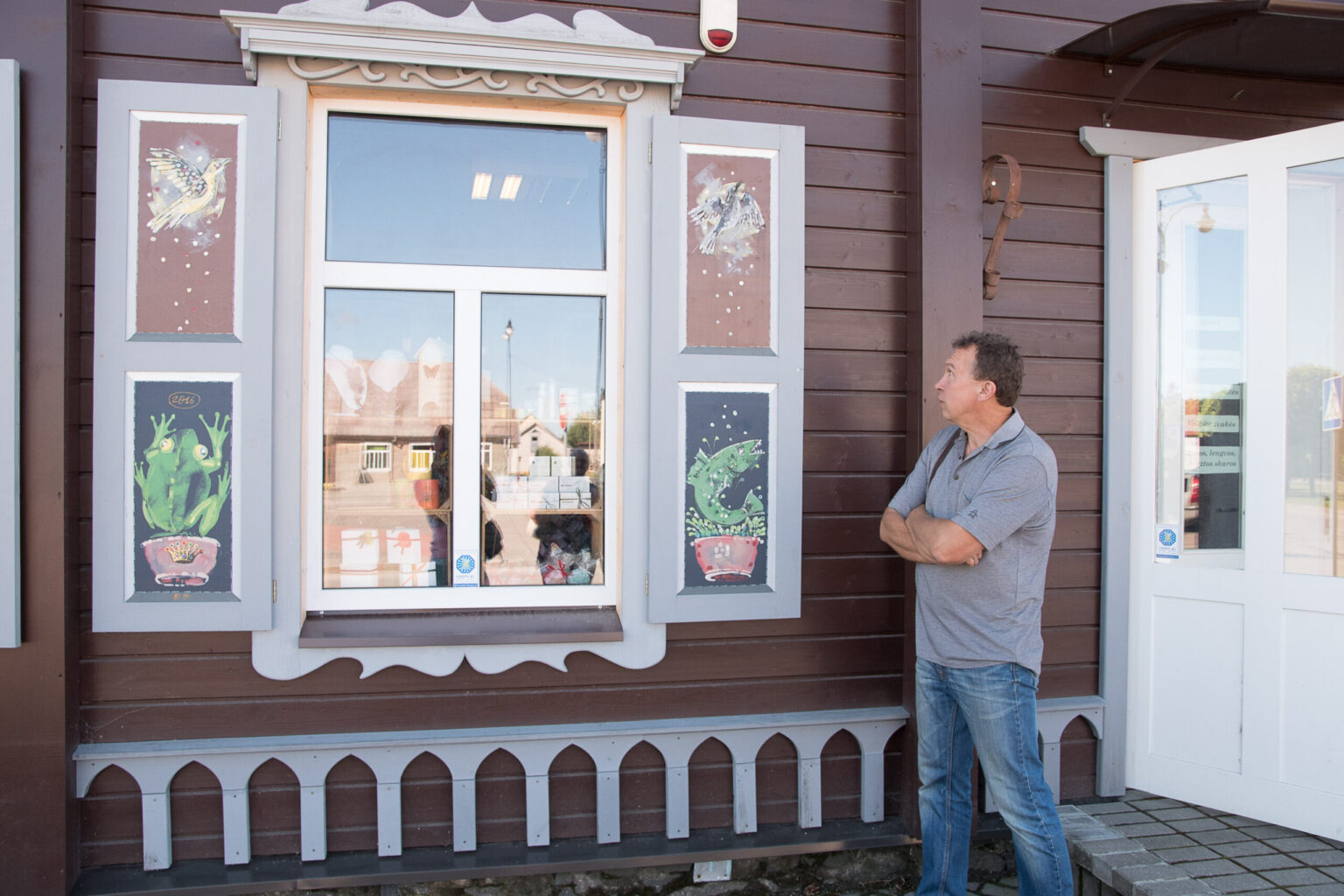 „Nida Lungienė ėmėsi rašyti projektus, aš organizavau dailininkus ir taip atsirado langinių tapymo tradicija. Kai kurių namų ir langinės buvo apverktinos būklės. Tad jas suremontavome, ištapėme, o paskui jau patys gyventojai ėmė prašyti pagražinti namus. Rinkomės, kad namai būtų mediniai, vengėme plastikinės jų apdailos, tariamės su žmonėmis, kad išsaugotų autentiškus fasadus, autentiškų langų išvaizdą“, – pasakoja A. Augutis.