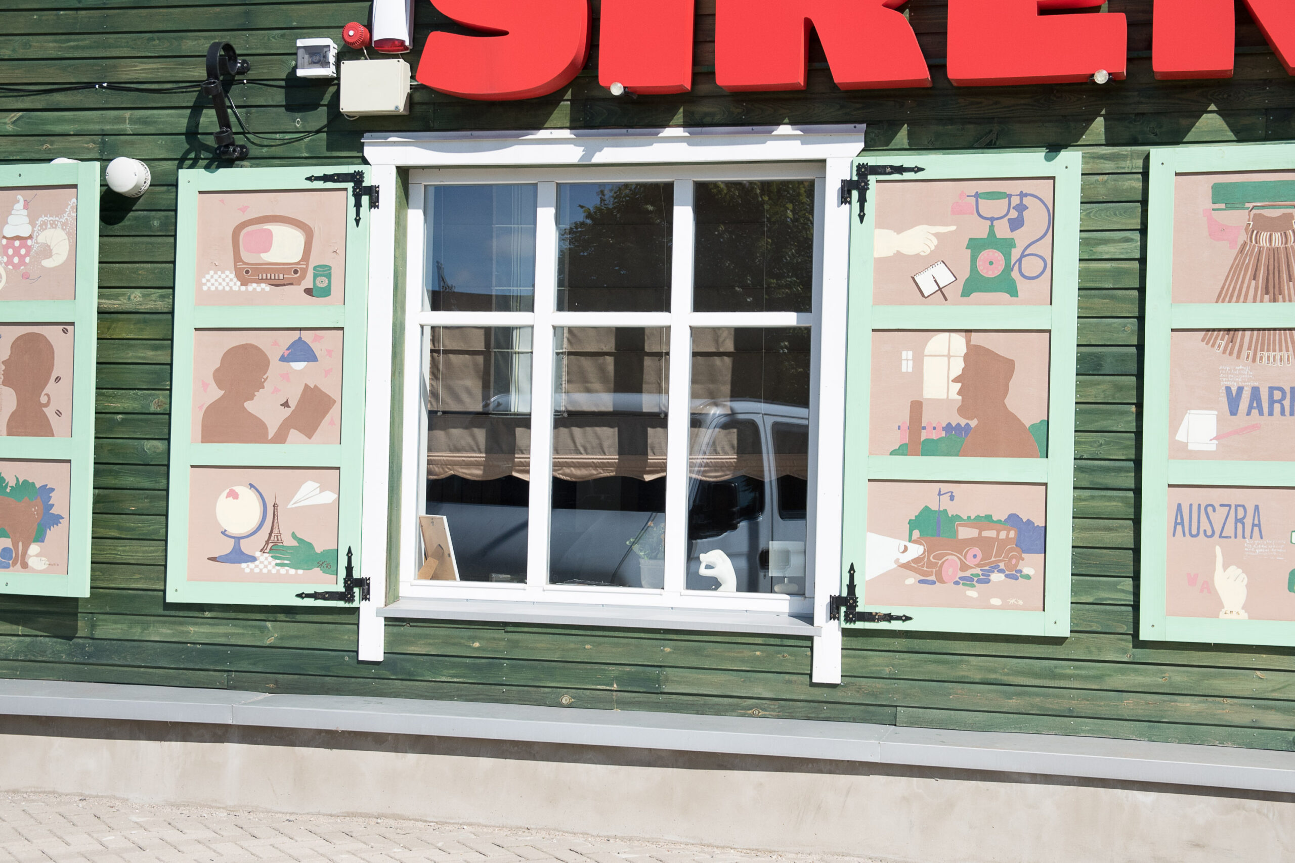 Pastato paskirtis irgi svarbi. Vieną seną namą miesto centre papuošė visų čia buvusių įstaigų motyvai – mokyklos, daboklės ir kiti.