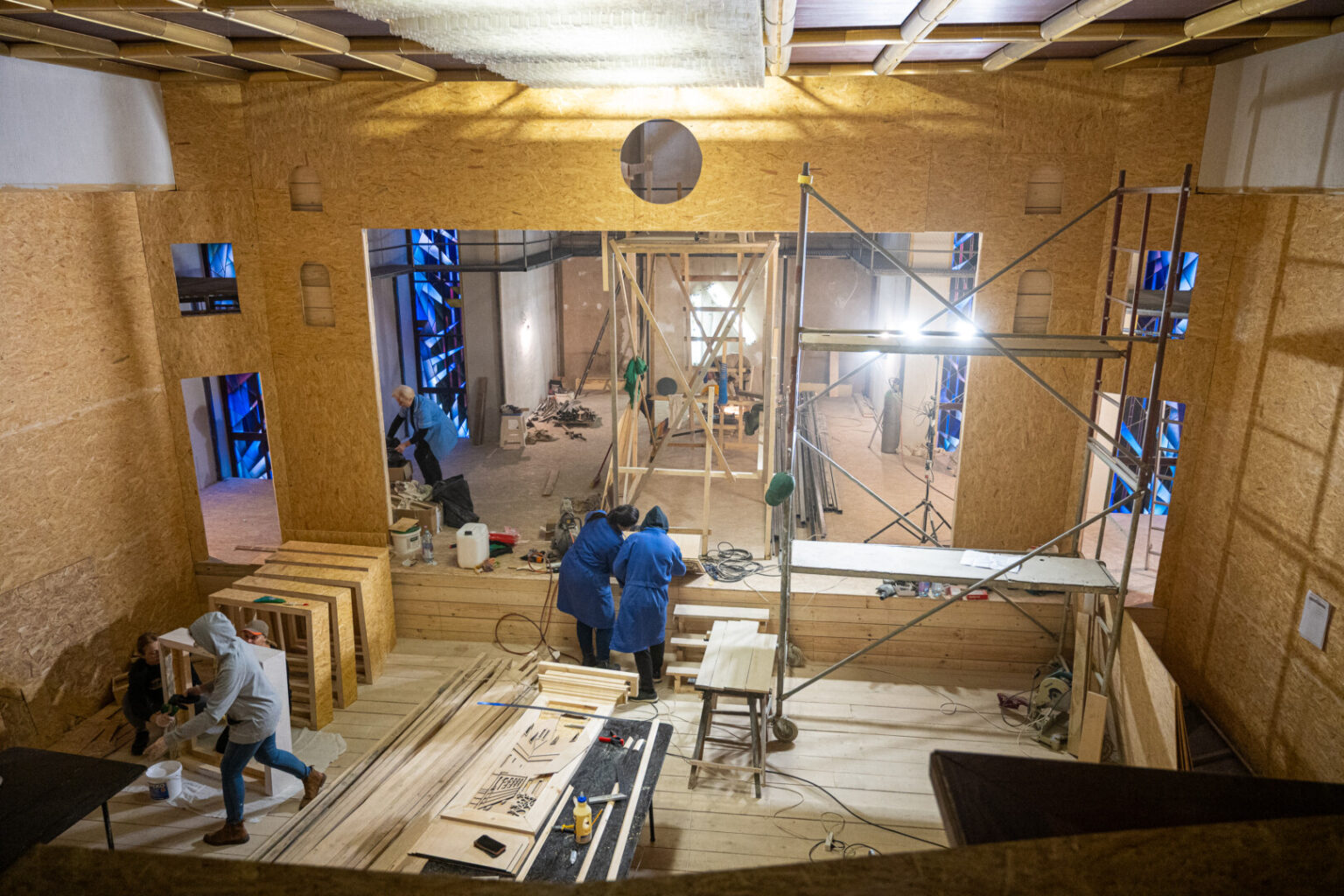 Santuokų rūmų didžiojoje salėje, kurioje vykdavo iškilmingos tuoktuvių ceremonijos, kuriantis teatrui, įrengiama scena, amfiteatras, uždengiami stoglangiai, kad per spektaklius būtų tamsu.