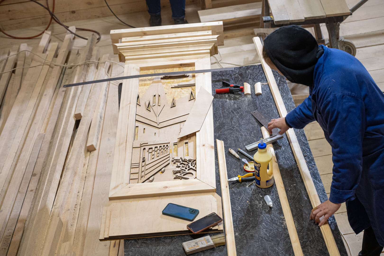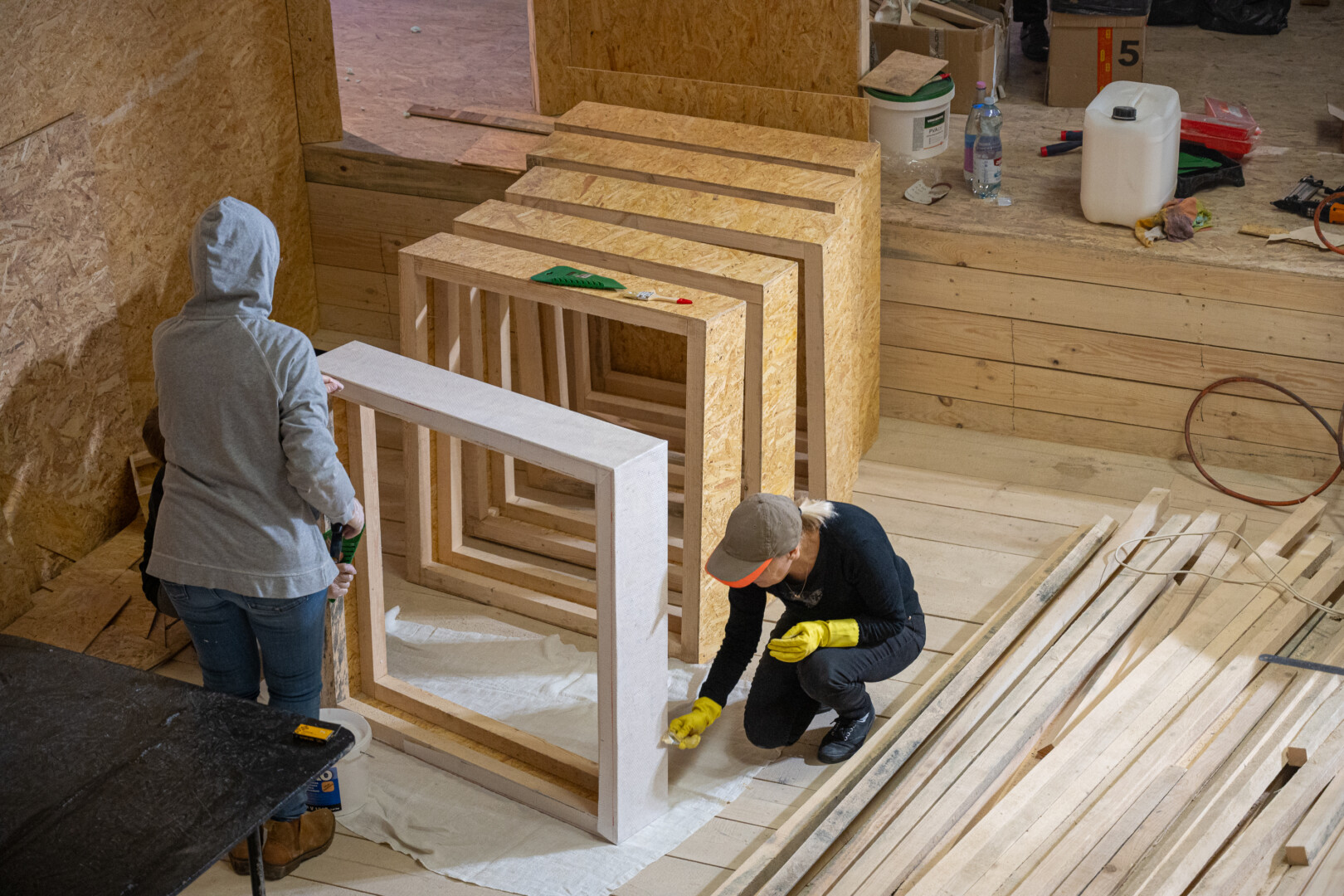 Santuokų rūmų didžiojoje salėje triūsia joje įsikursiantys lėlininkai. P. Židonio nuotr.