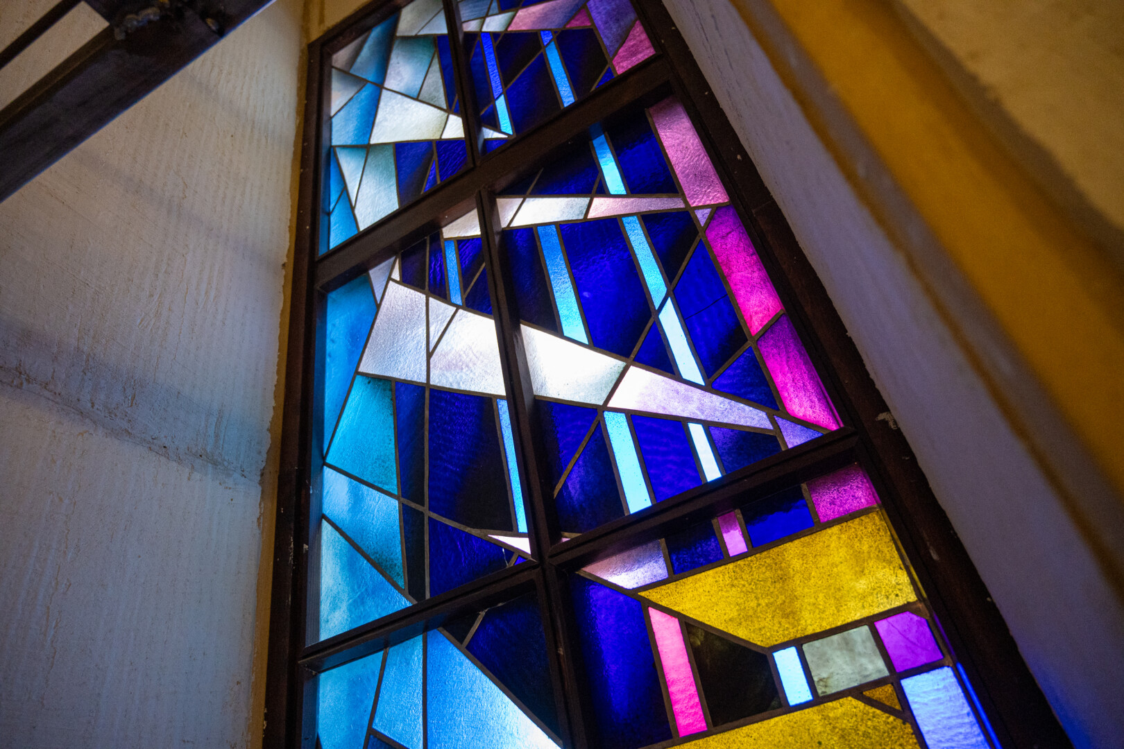 Kadangi šis vitražas įrengtas ne lange, paslėptas po plokštėmis liktų visiškai nematomas nei iš salės vidaus, nei iš pastato išorės.